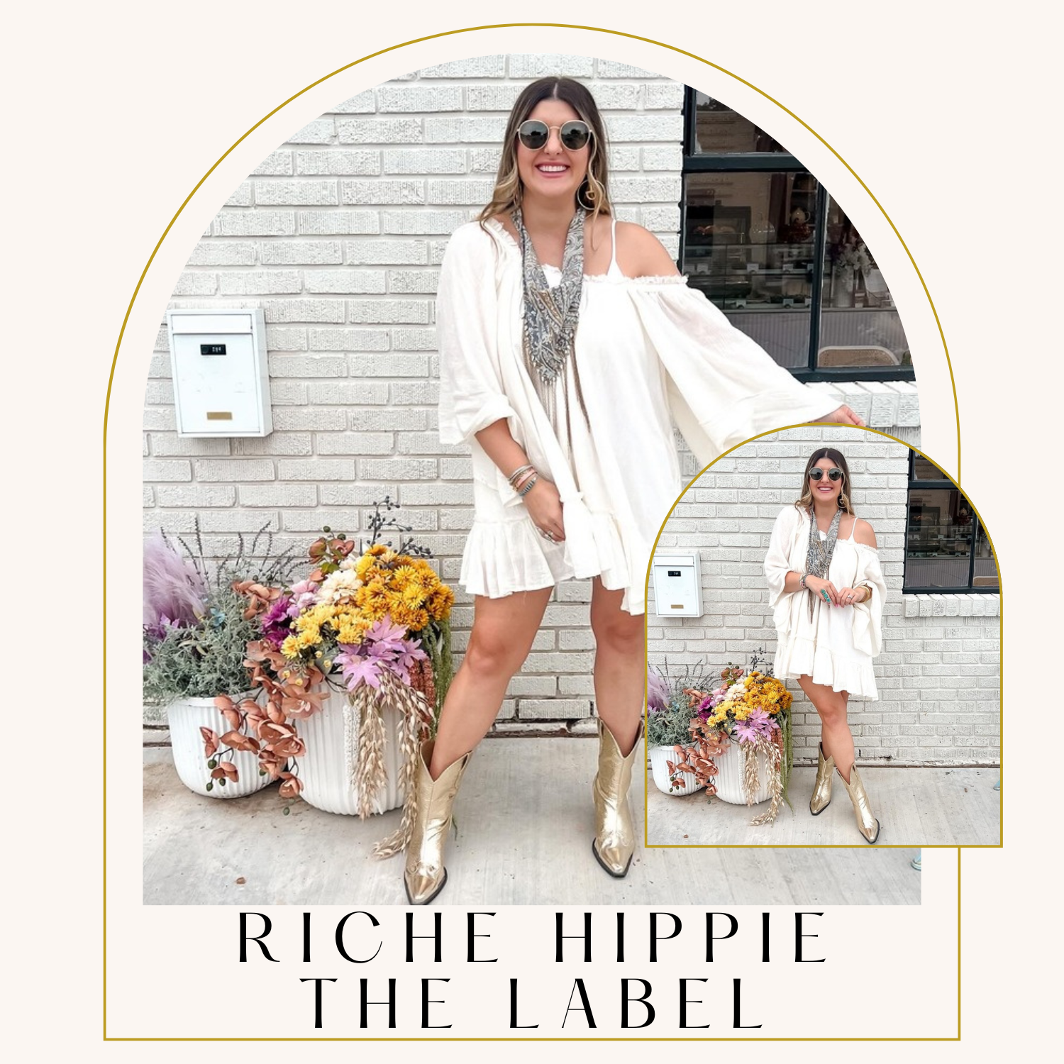 OUR VERY FIRST EXCLUSIVE RICHE HIPPIE THE LABEL DESIGN. AVAILABLE IN S - XL! FOR THE BOLD + BOHO.