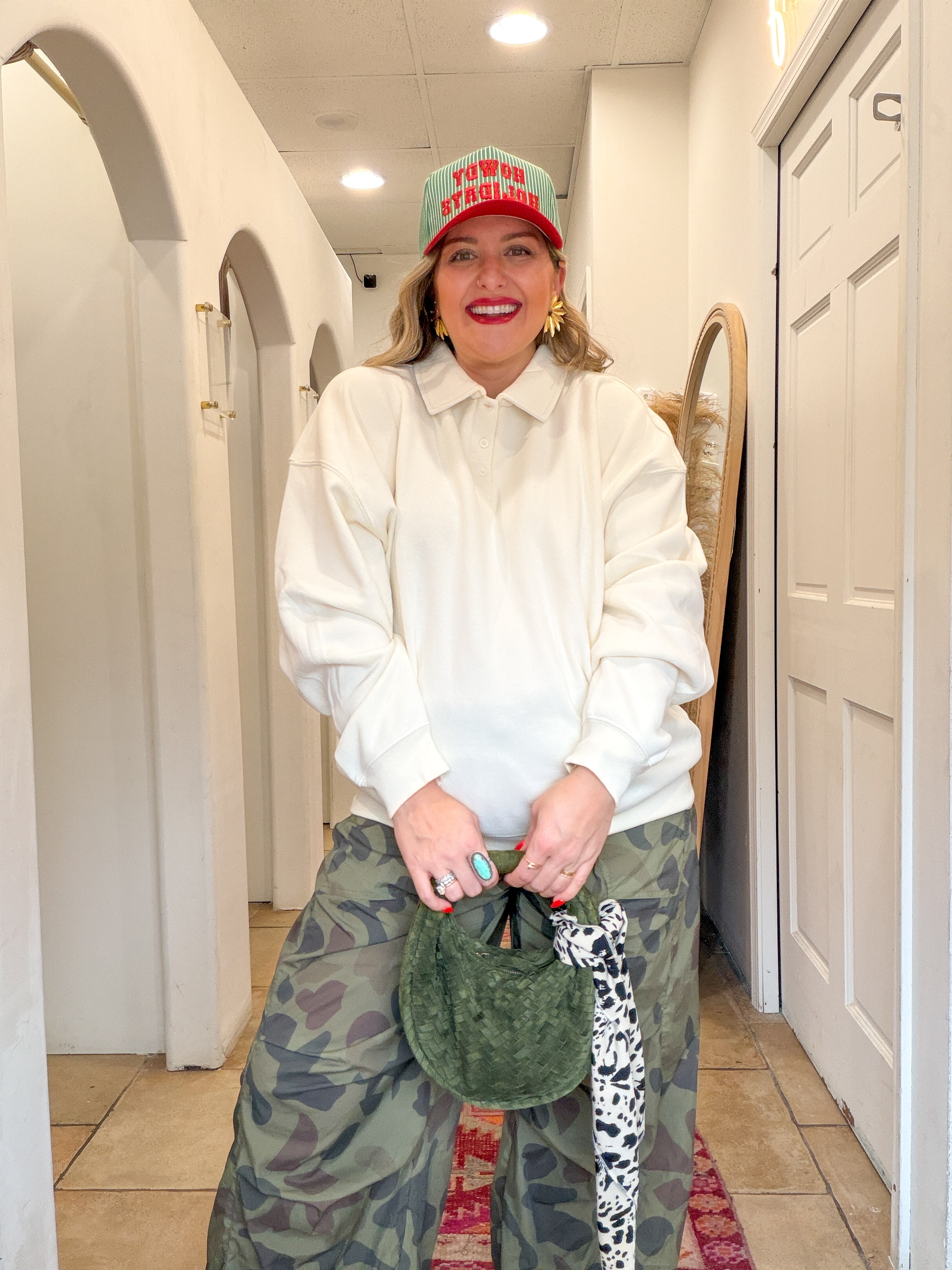 Sophisticated Polo Long Sleeve Sweater Dress - Dark Green
