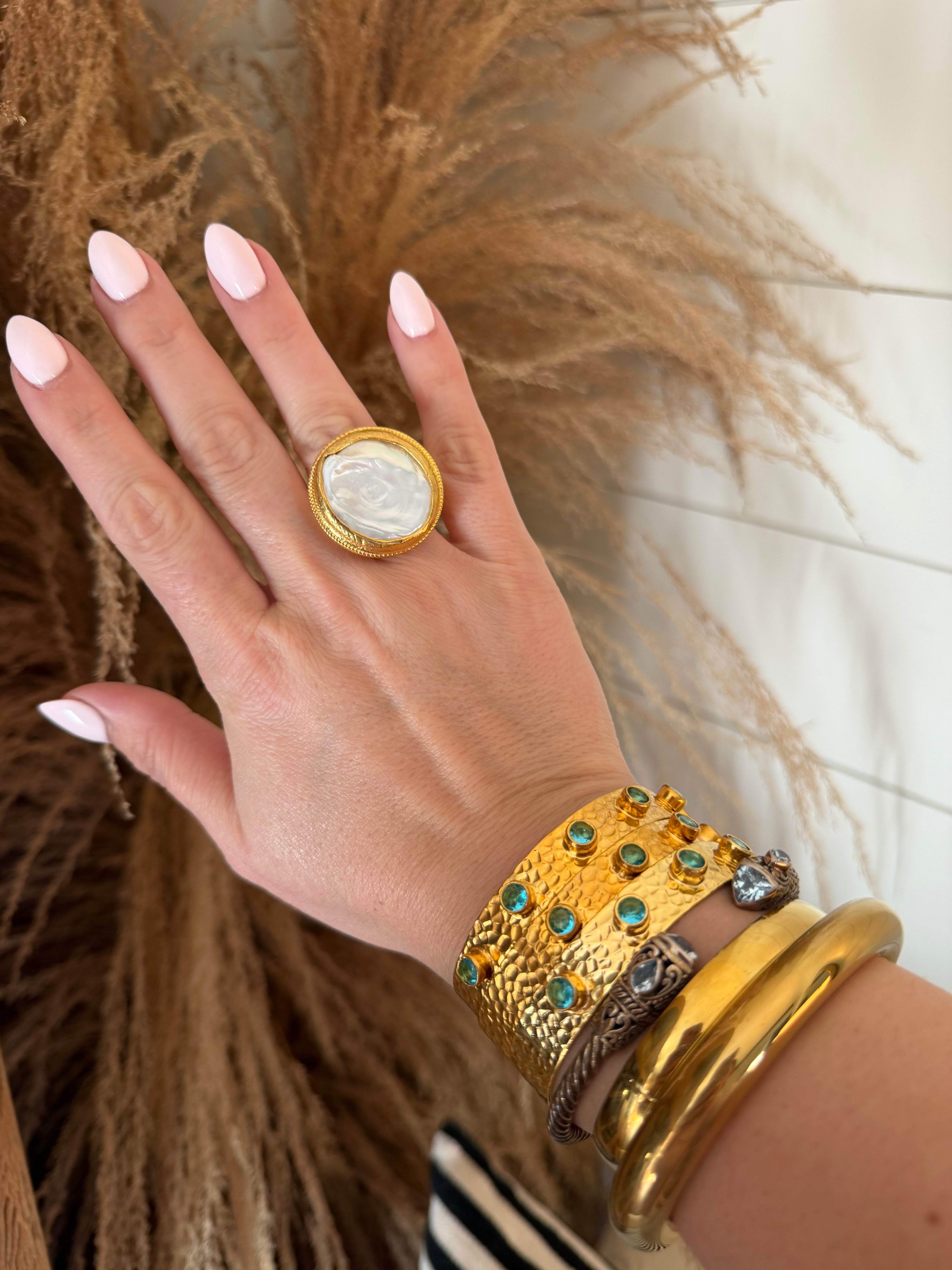 Pearl + Gold Adjustable Ring
