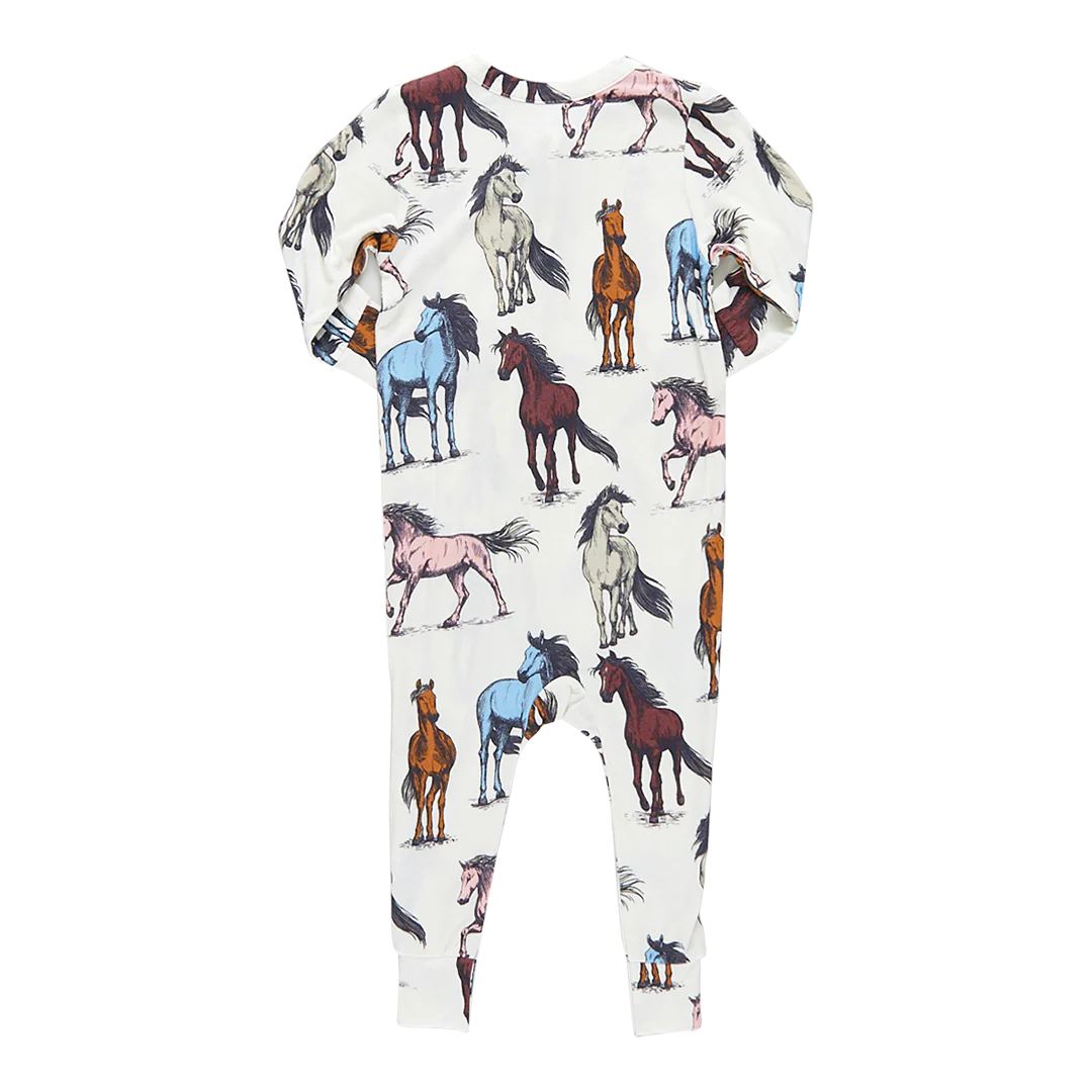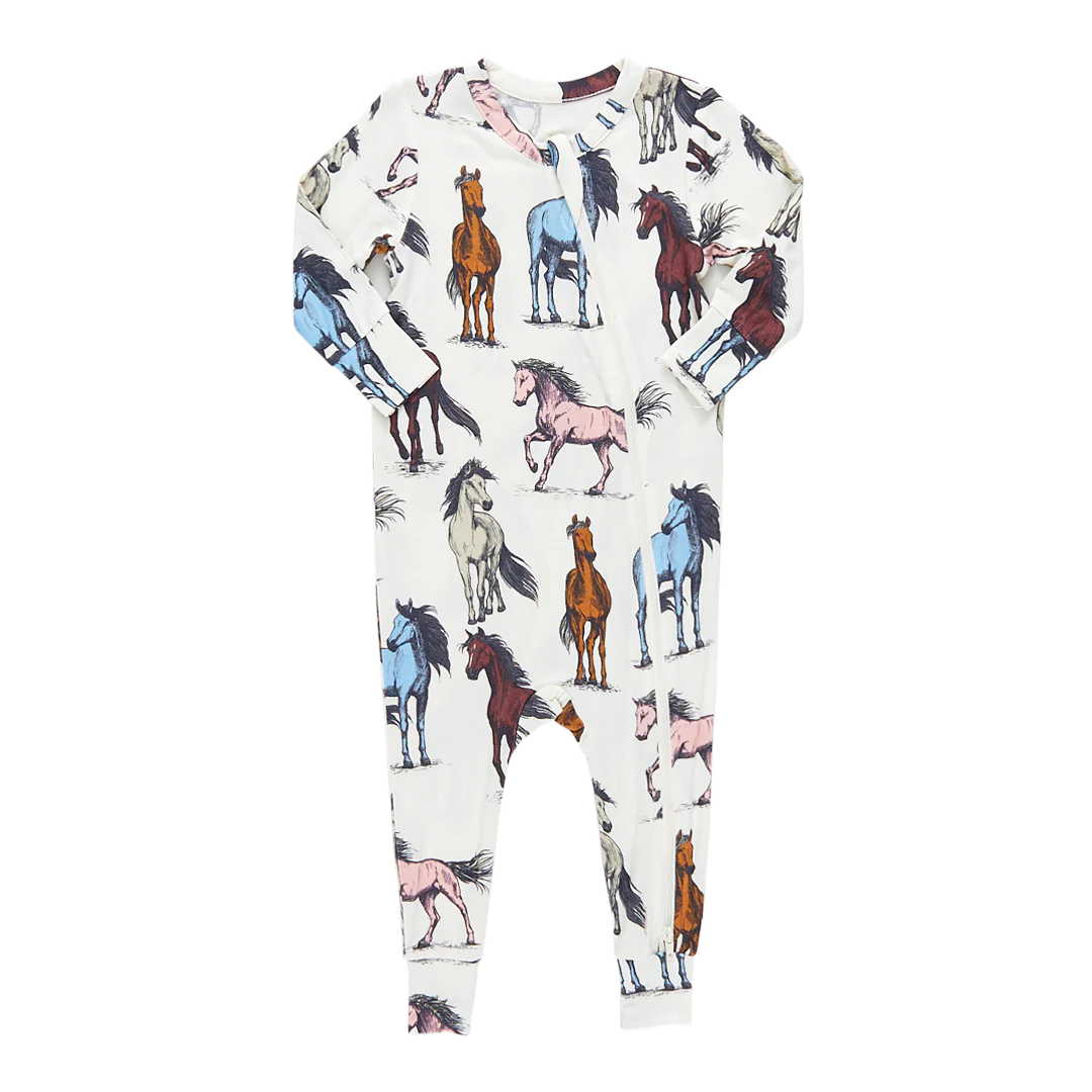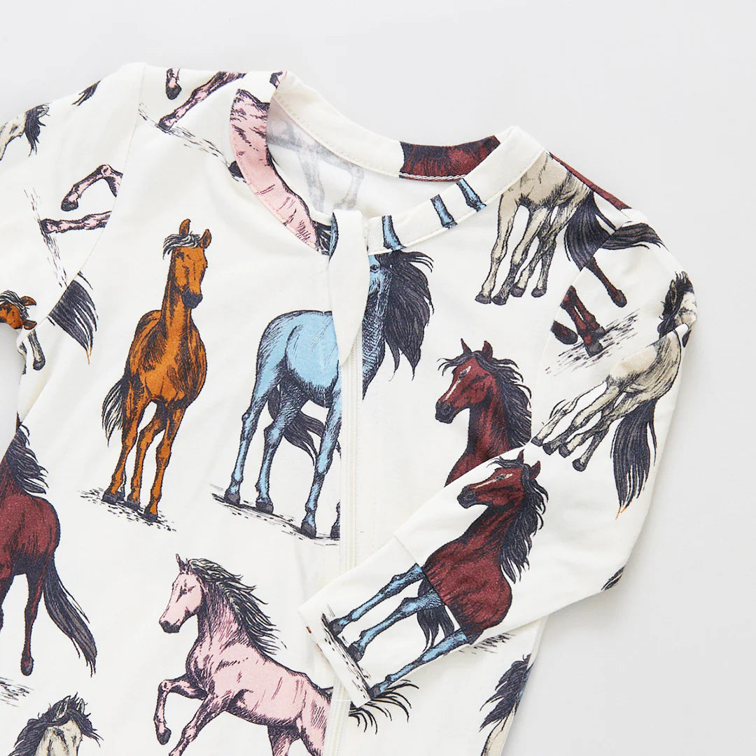 Saddle Up! Your littles (and you too!) will love our Kids Bamboo PJ Set in Multi Horses. Soft like cotton with a smooth, silk-like texture, bamboo is breathable and absorbent and keeps littles cool & comfortable in the summer and warm & cozy in the winter. Set includes a long sleeve top and elastic waist pants.