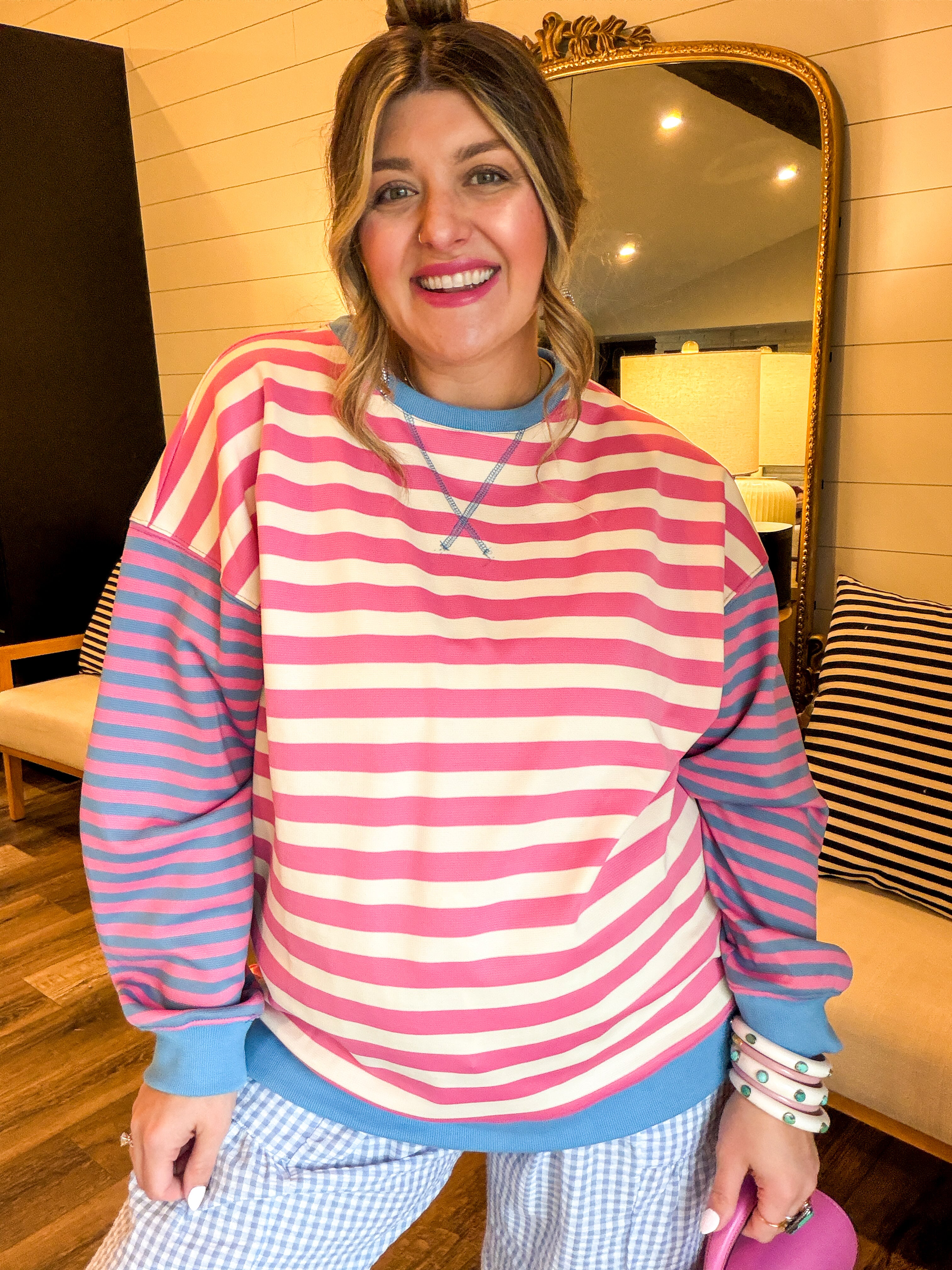 Cloudy Days Stripe Top - Ivory + Baby Blue
