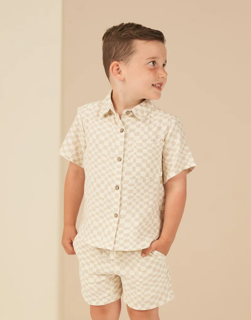 Get ready for a fashion vacation with Bermuda Short- Dove Check! These versatile, transitional shorts in a playful dove check pattern will have you feeling ready for any occasion. Match it with a collard short sleeve from Rylee and Cru for a complete look.