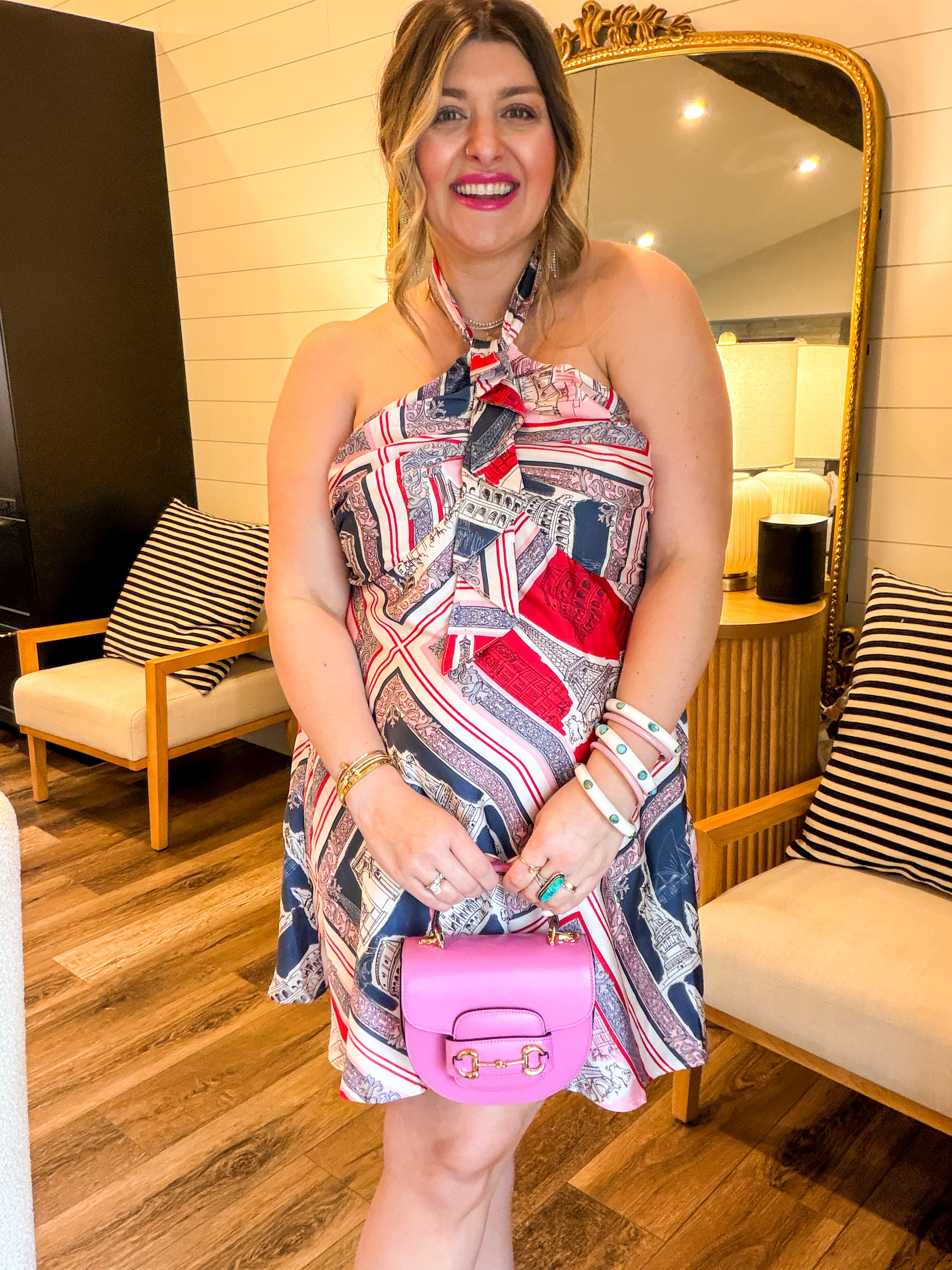 Cherry Blossom Bow Gingham Midi Dress - Red