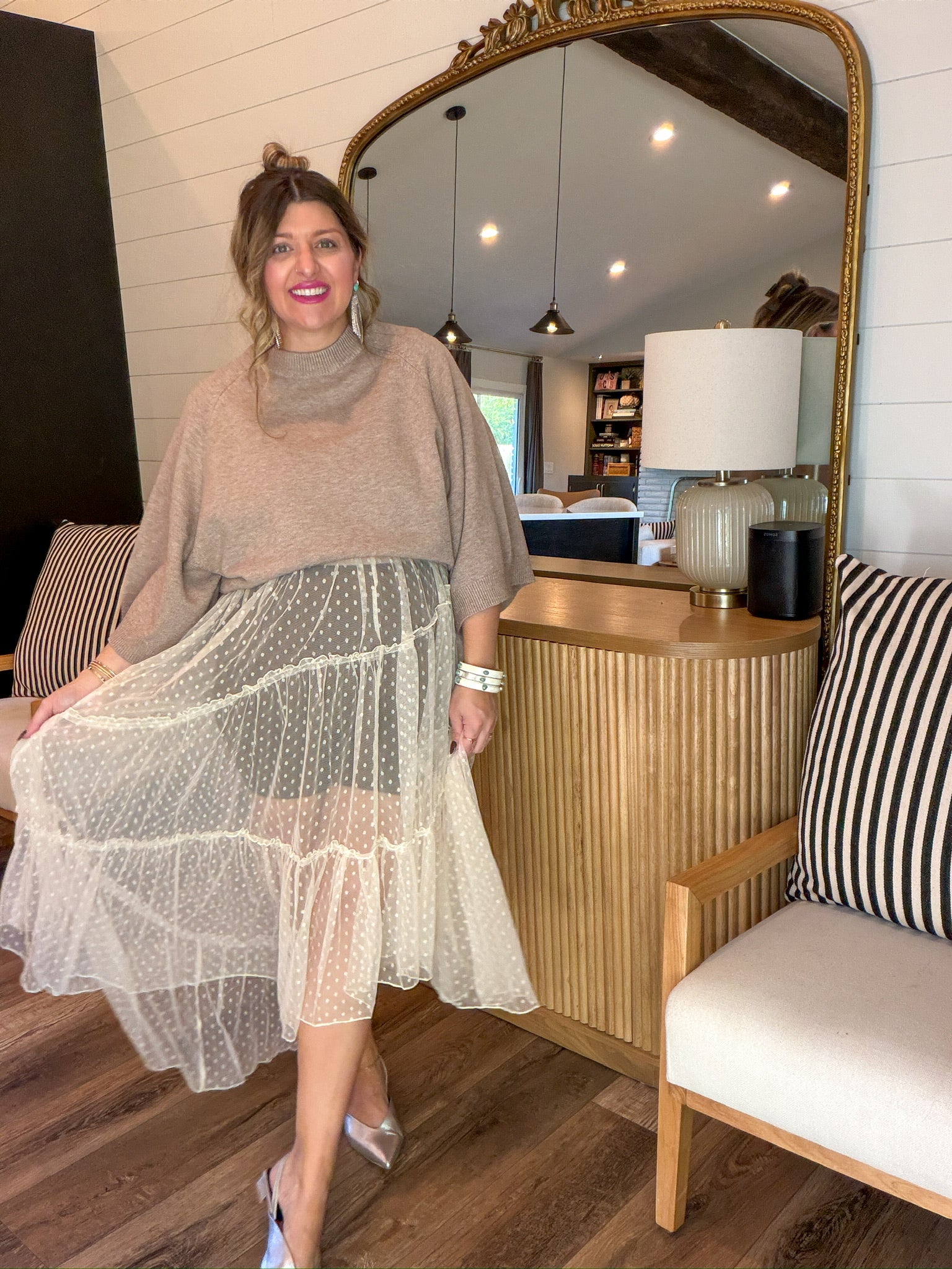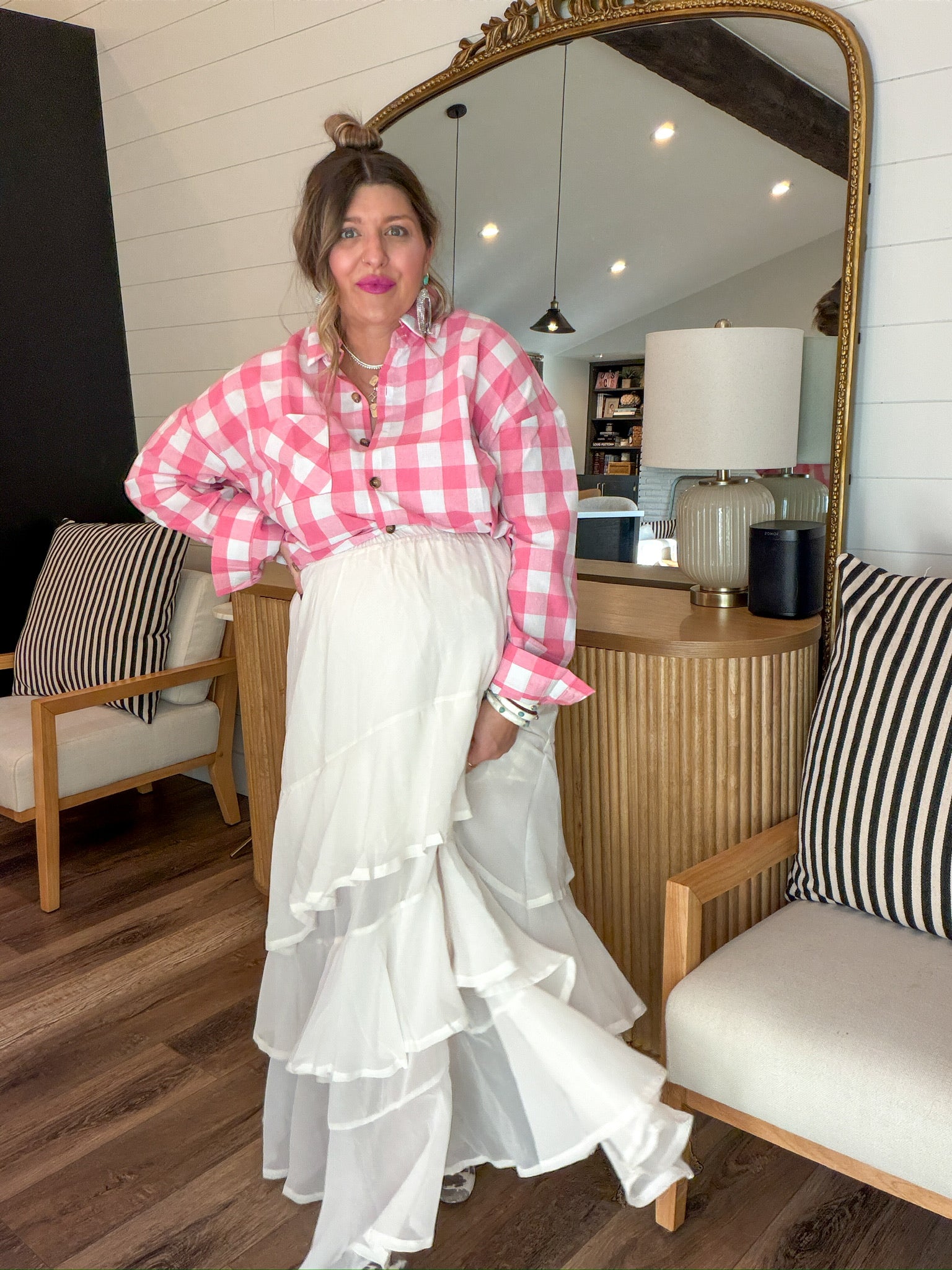 Ivory Tiered Ruffle Chiffon Midi Skirt