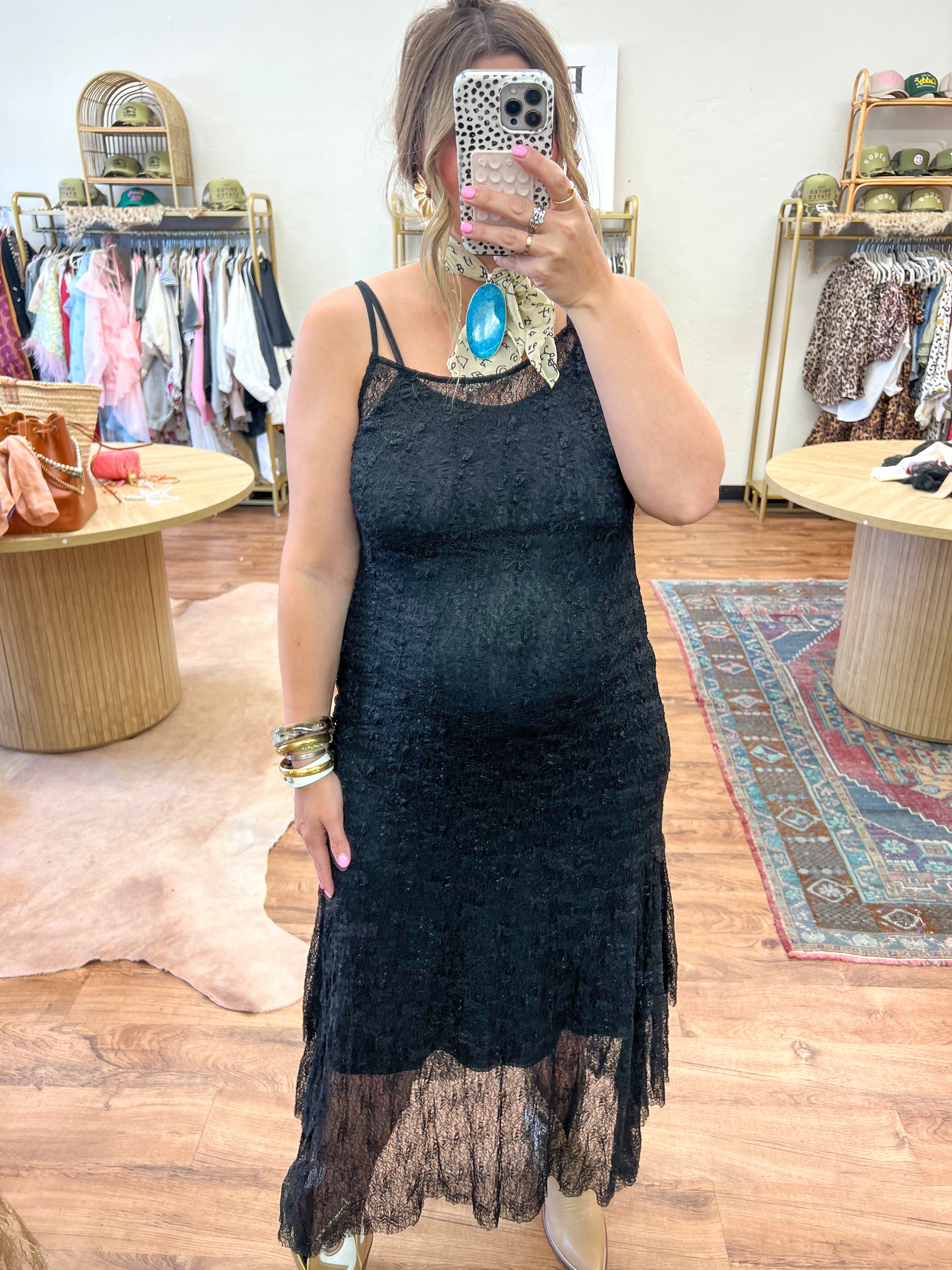Bold, moody, and dripping in drama—our All Laced Up Maxi Dress in Black brings that effortlessly sultry edge. The sheer lace silhouette adds just the right amount of mystery while the relaxed fit keeps it casual-cool. Whether you’re layering over a sleek slip or rocking it as a beach cover-up, this one’s made to turn heads.
