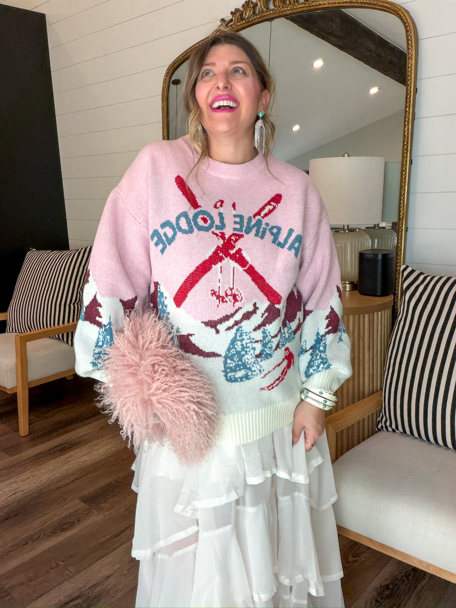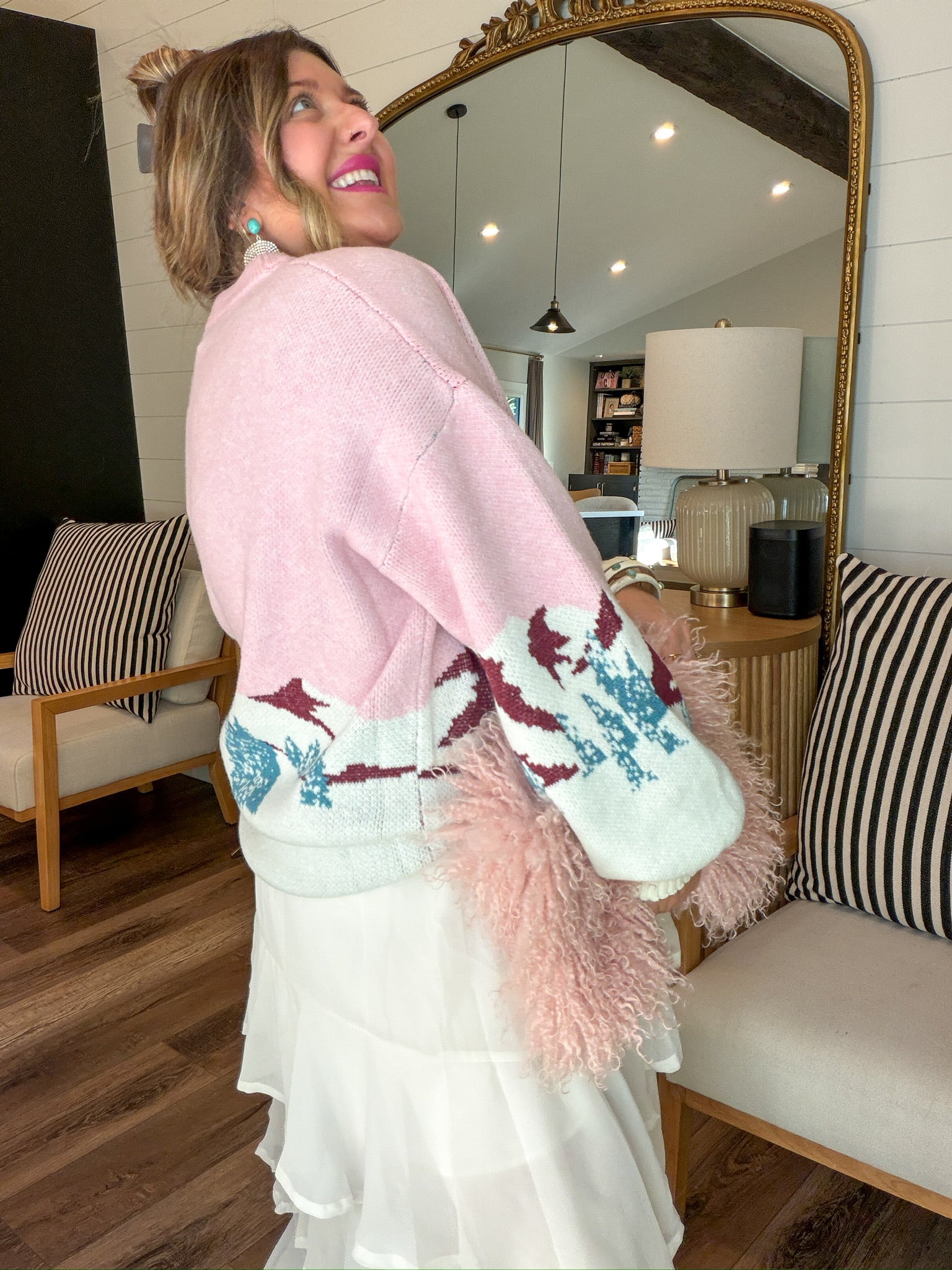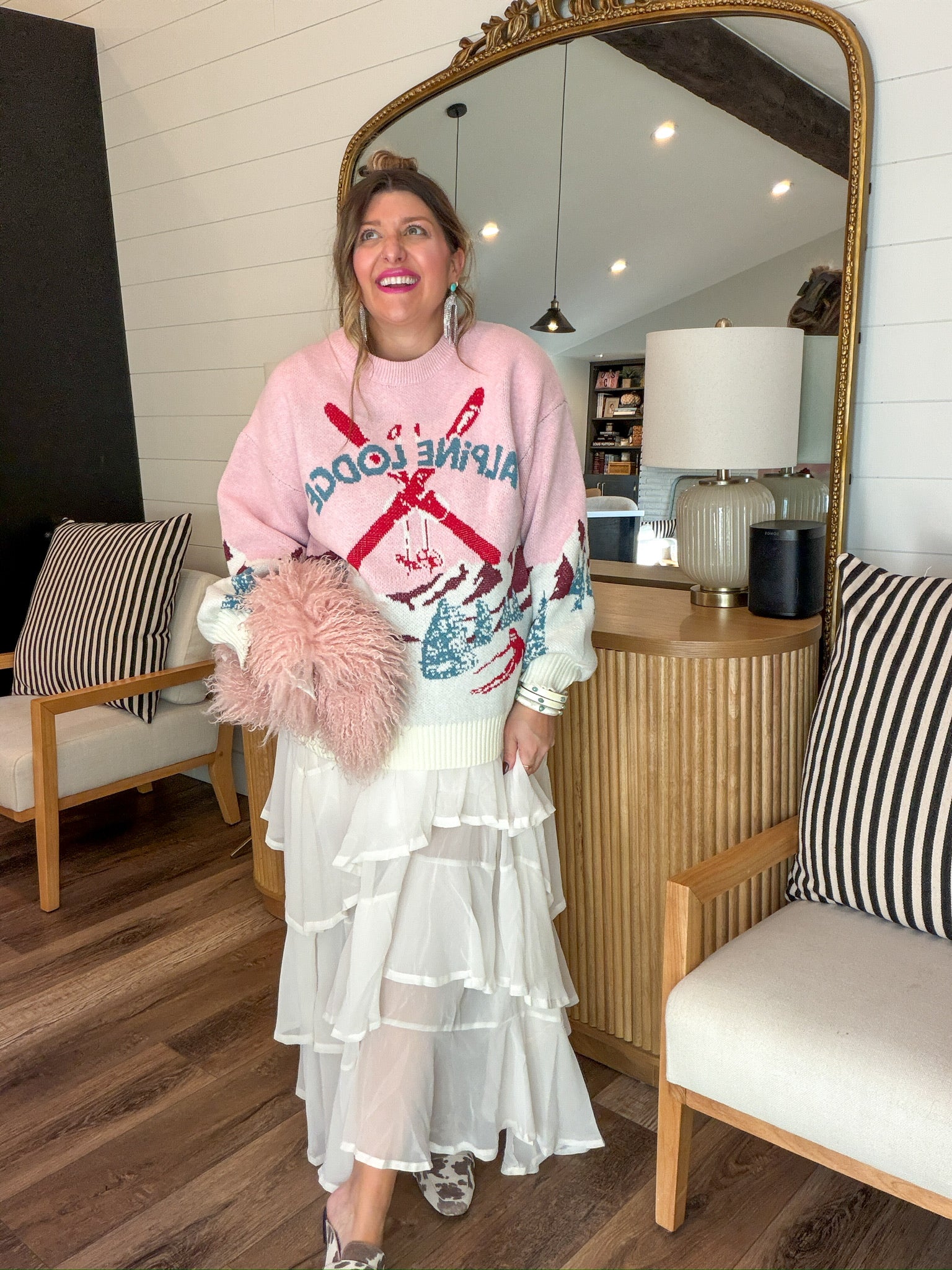 Wear it for winter brunch, holiday movie nights, or pretending you’re in Aspen when you’re actually in Stillwater. It’s giving “après-ski, but girly.”