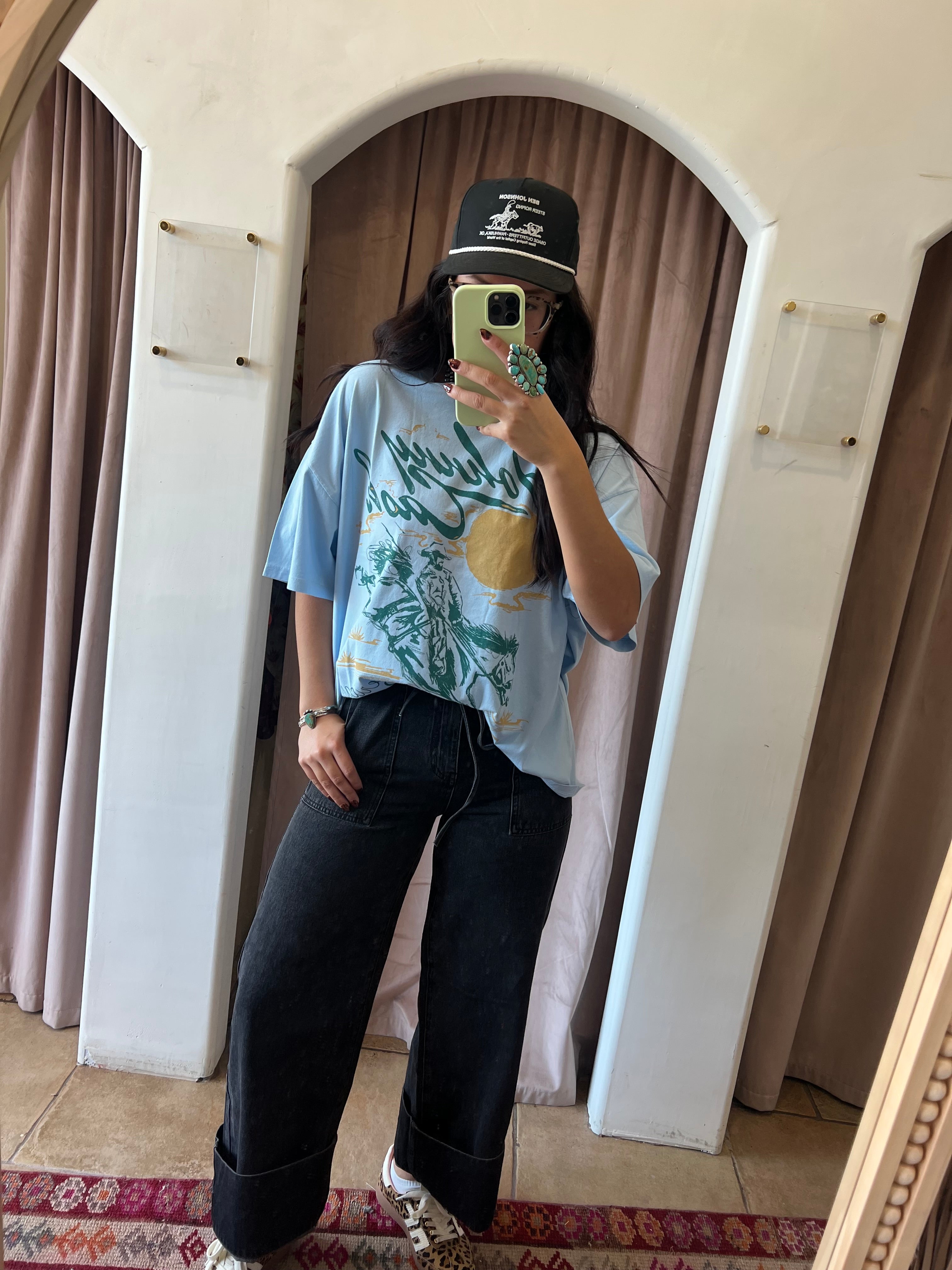 Throw it over a flowy maxi dress and boots for contrast, or pair with denim and silver for the full cowgirl charm.