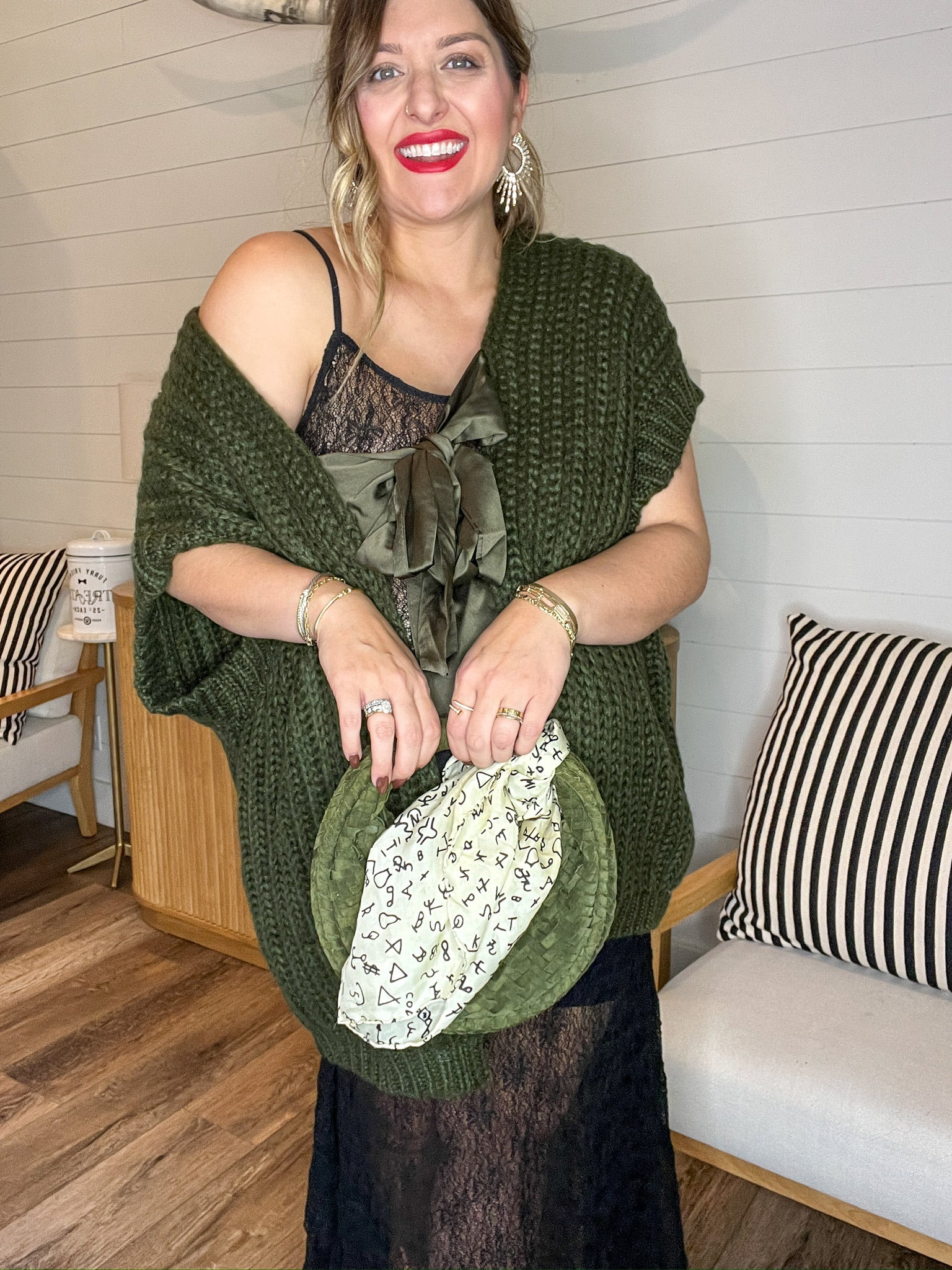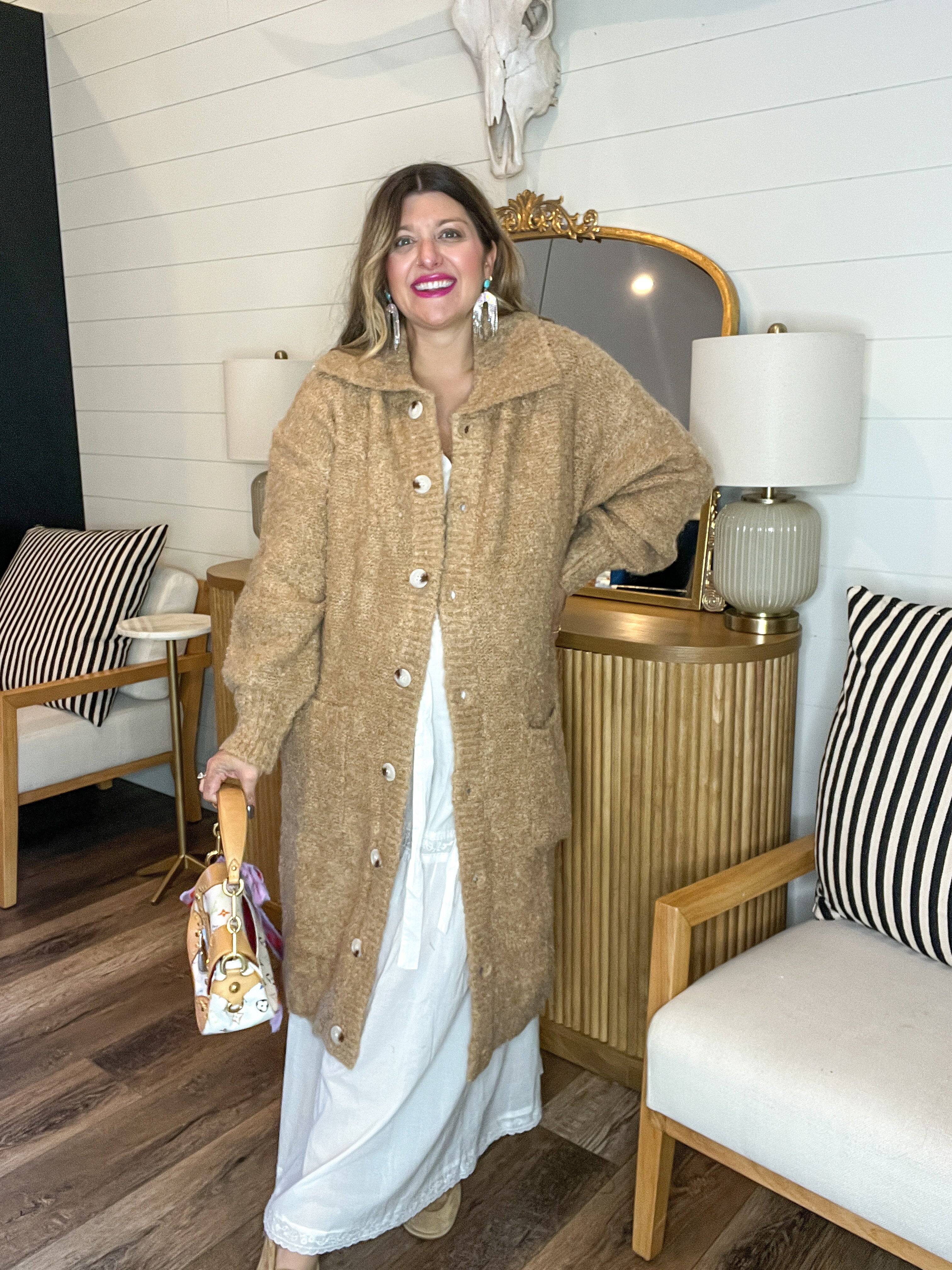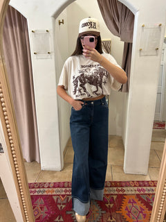 Yes—that’s a real horse on the front (not just a fabric pattern)! The Bit by Bit Cardigan gallops into your wardrobe with bold energy and cozy charm. Featuring mirrored rearing horse silhouettes stitched across the chest and sleeves, this statement sweater blends soft Western flair with cool-weather ease. Whether you’re headed to a rodeo, a weekend brunch, or just feeling a little wild at heart, this one leads the herd.