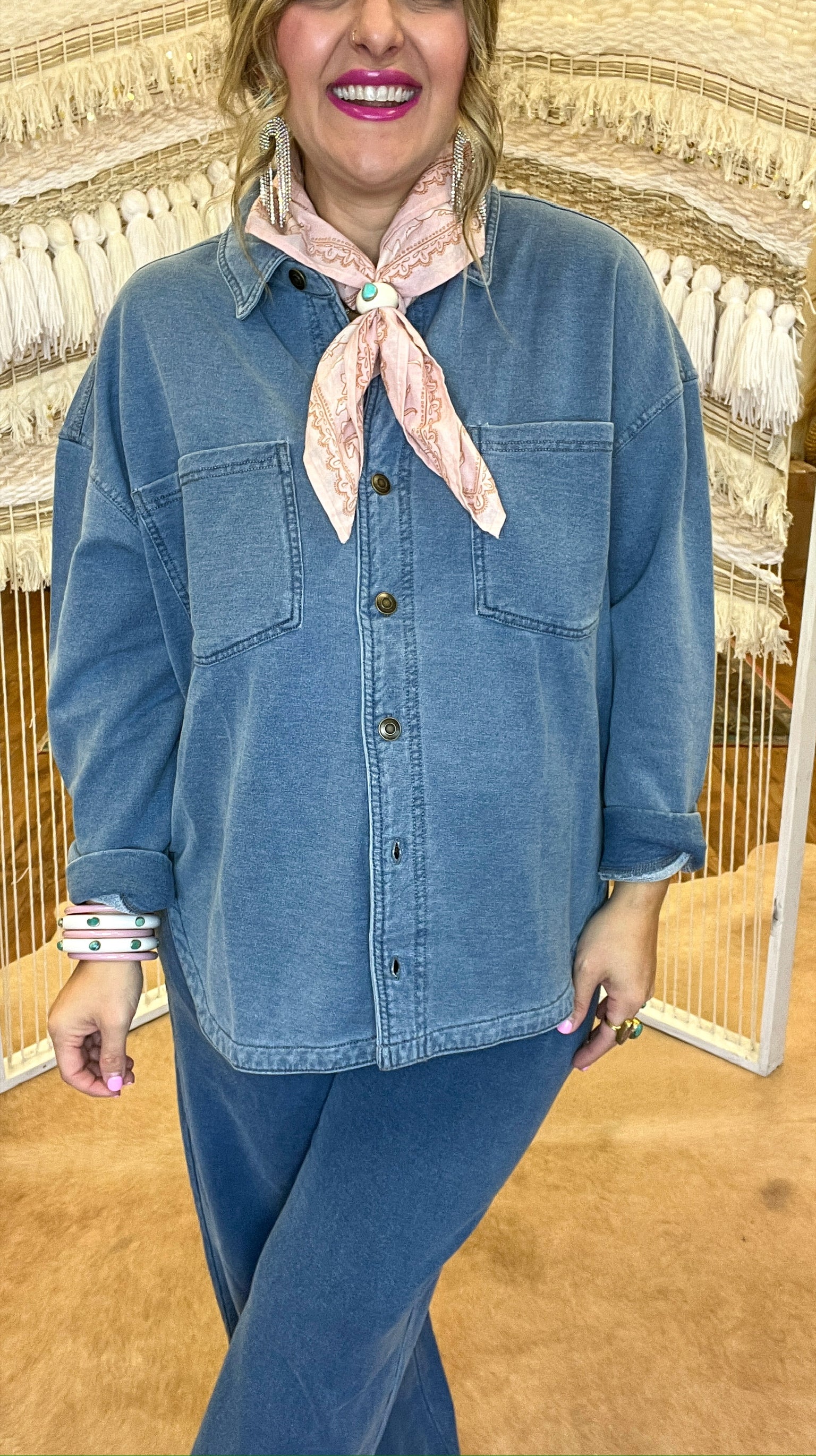 When casual meets cool in all the right ways. This denim-inspired button-up brings boss energy to your comfy closet lineup.