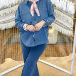 Out of stockBlue Collar Baddie Button Up Top - Long