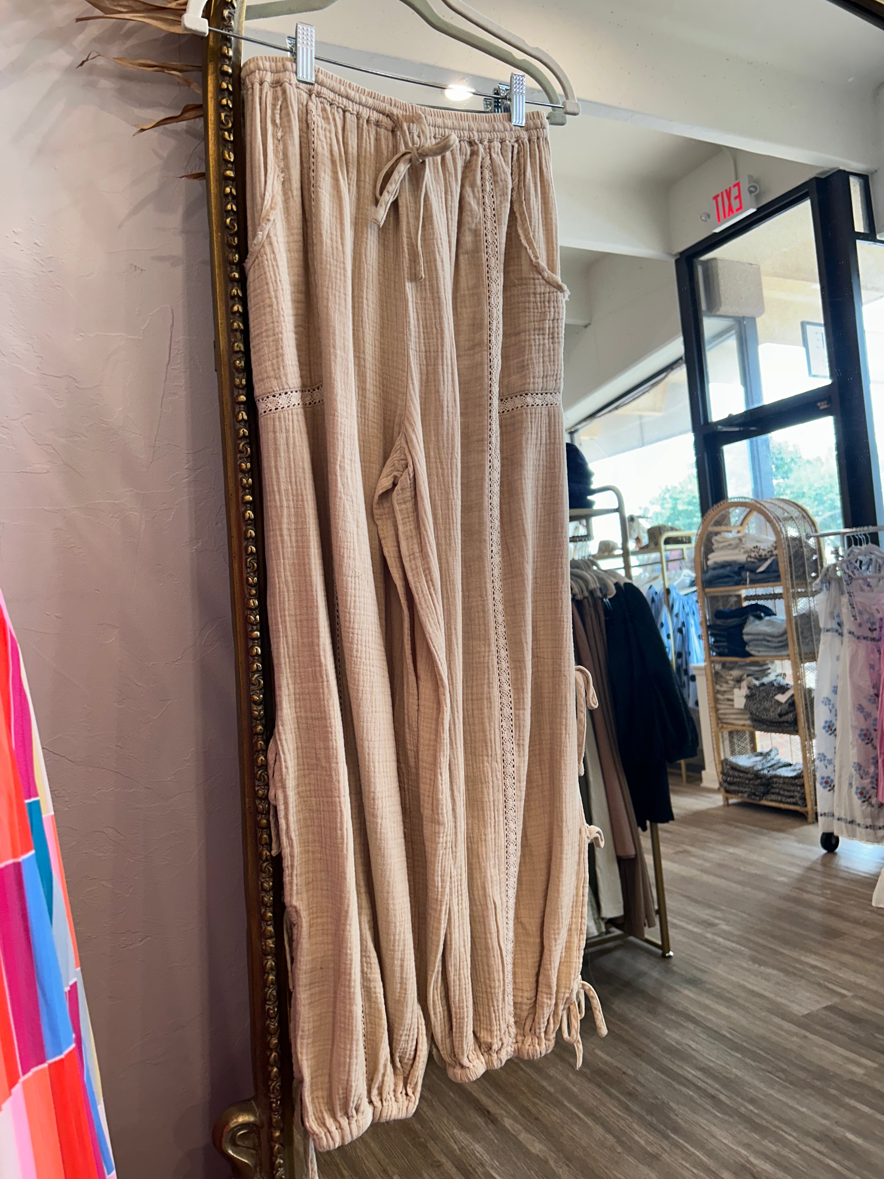 Out of stockBoho Goddess Side Tie Pants - Oatmeal