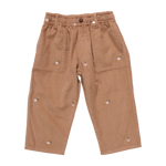 Dapper Ducks! Our Fall favorite Boys Jackson Pant is crafted in a sturdy fine wale tan corduroy and embroidered with a flock of handsome mallards, and is perfect for school pictures and fall dances. This versatile elastic waist, pull-on pant features a faux button closure, belt loops and both side and back pockets perfectly sized for marbles, matchbox cars and more. Layer with our Boys Jack Shirts and Oliver Sweater.