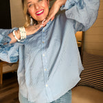 Out of stockBubbly Blouse - Pinstripe Blue