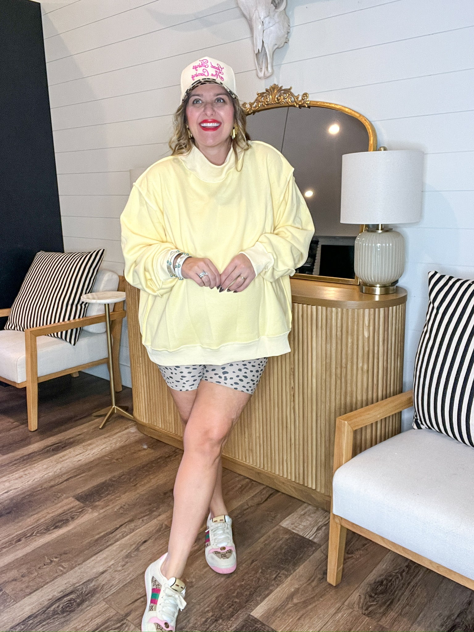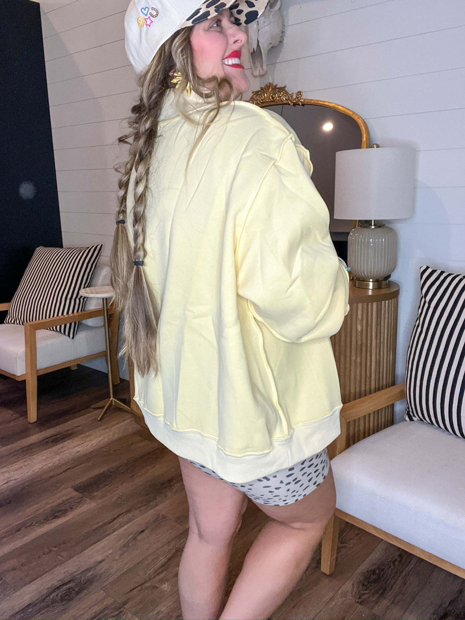 Butter Yellow Reversible Mock Neck Sweatshirt