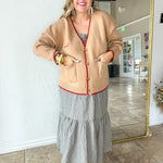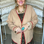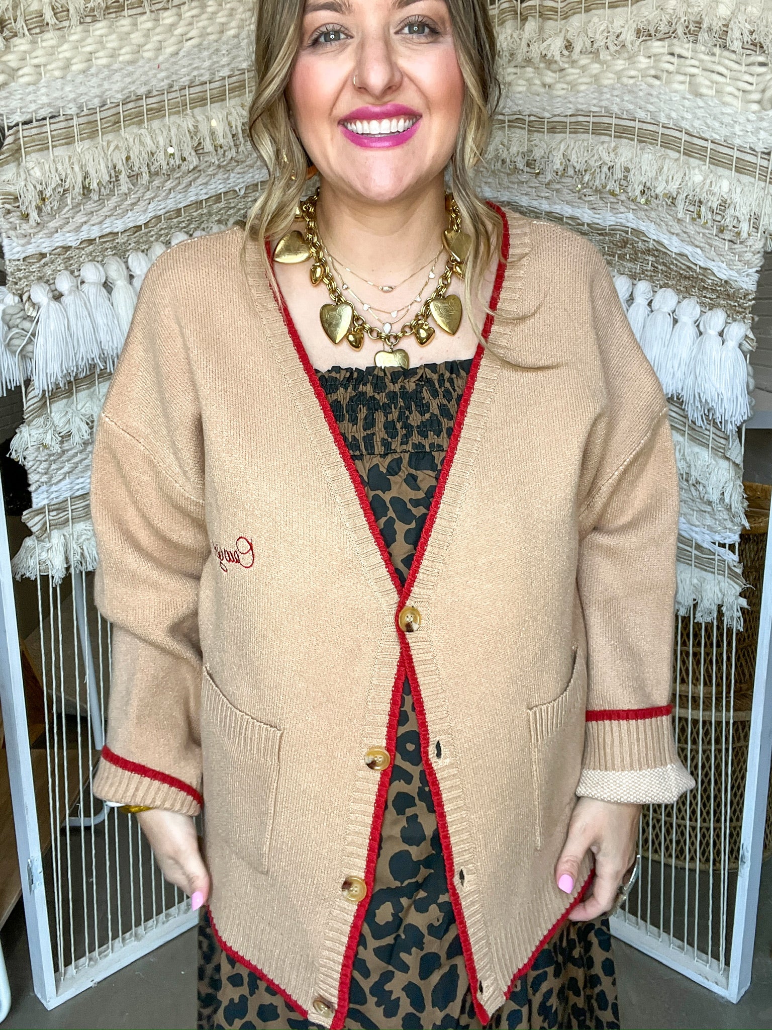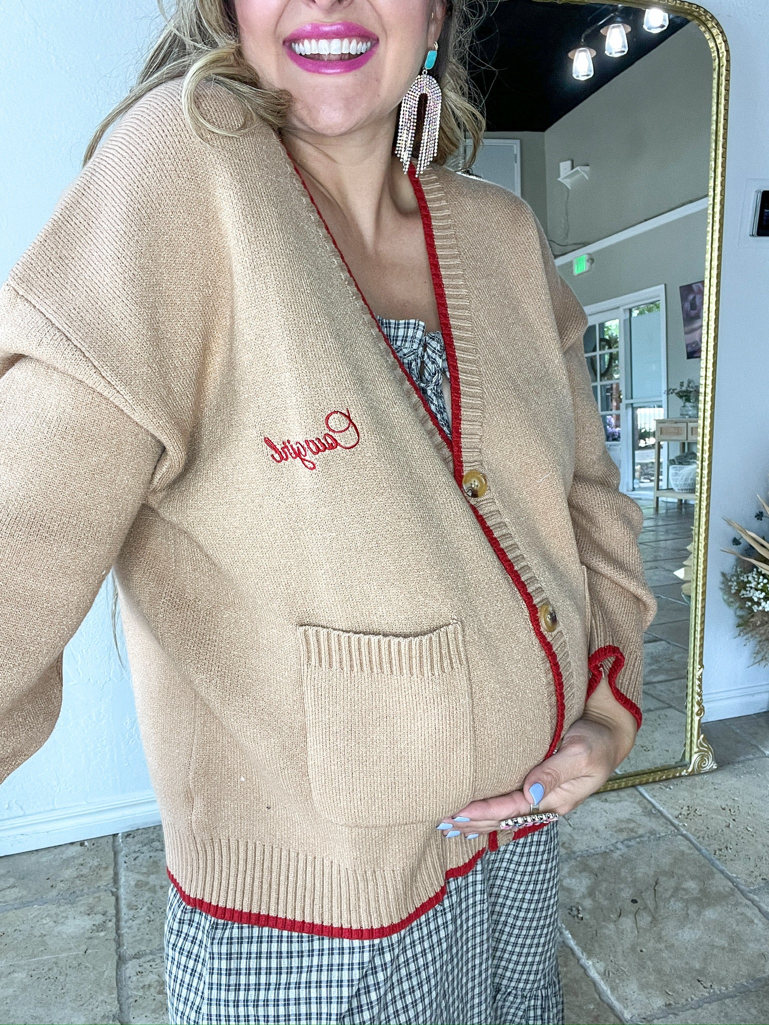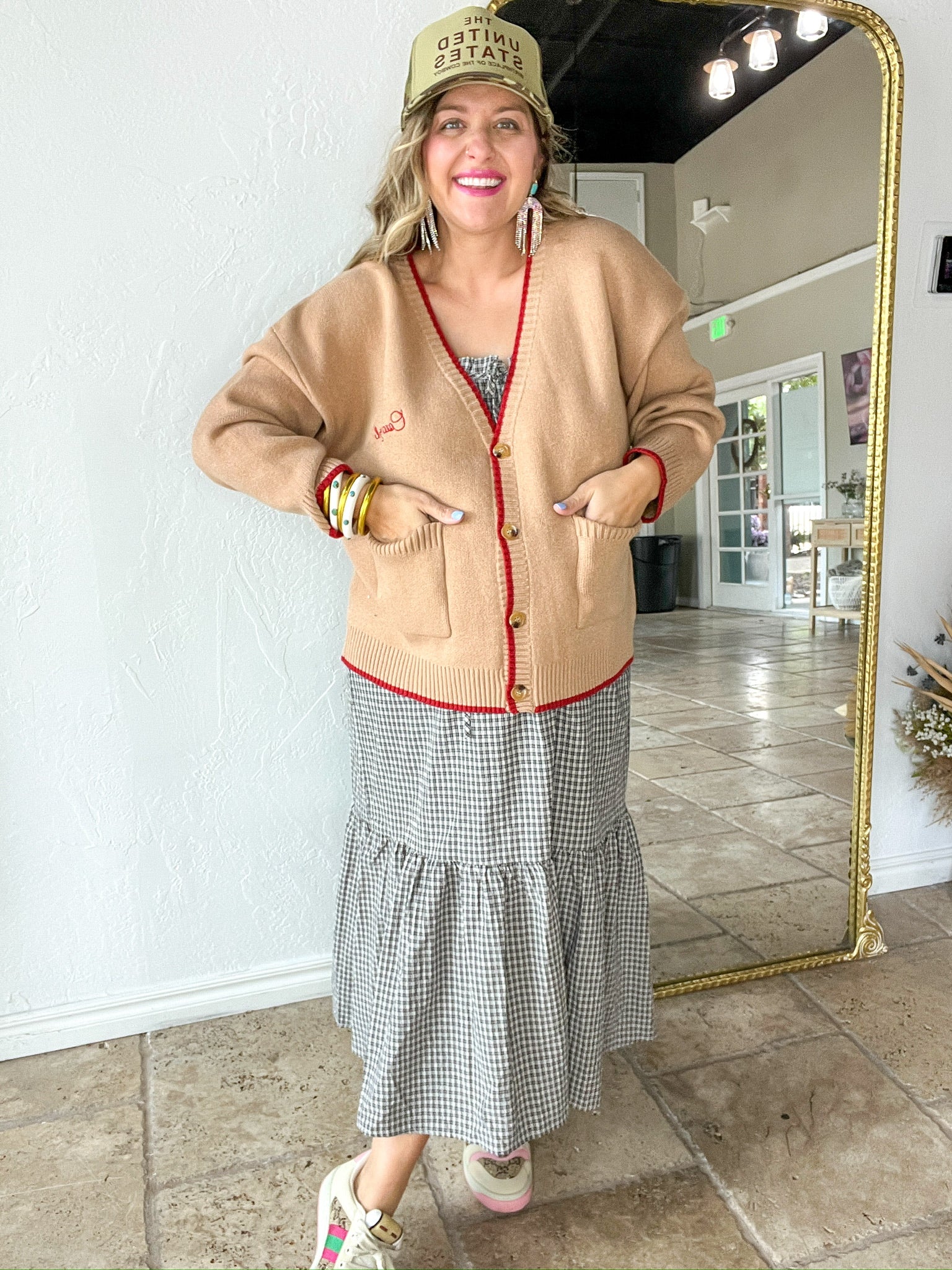 The cozy layer that says it all. Whether you’ve already found your cowboy or you’re manifesting one, this cardigan wraps you in western charm and buttery-soft warmth. With bold lettering and a floral horseshoe graphic on the back, it’s the cutest statement piece for fairgrounds, concerts, or just feelin’ flirty.