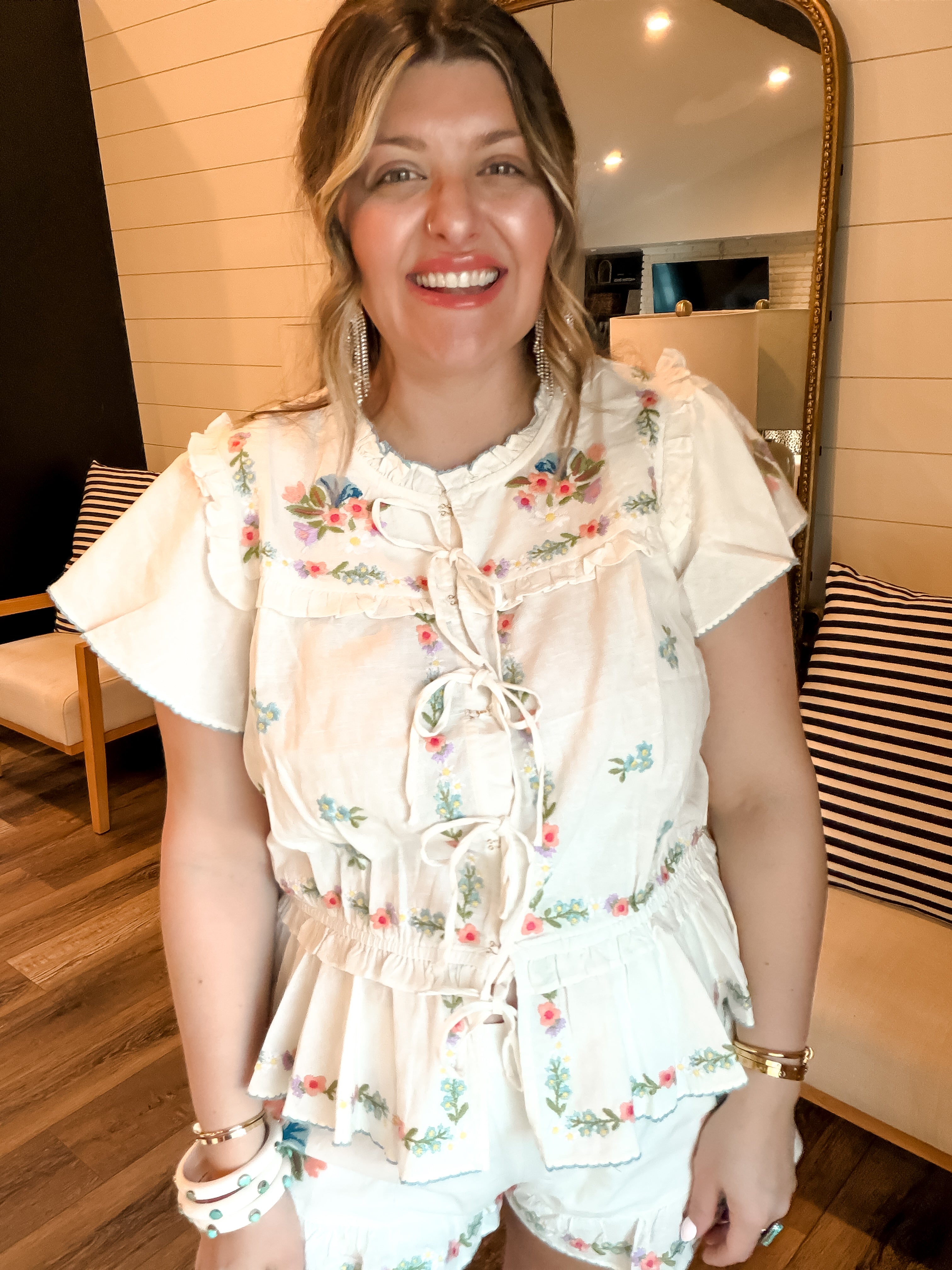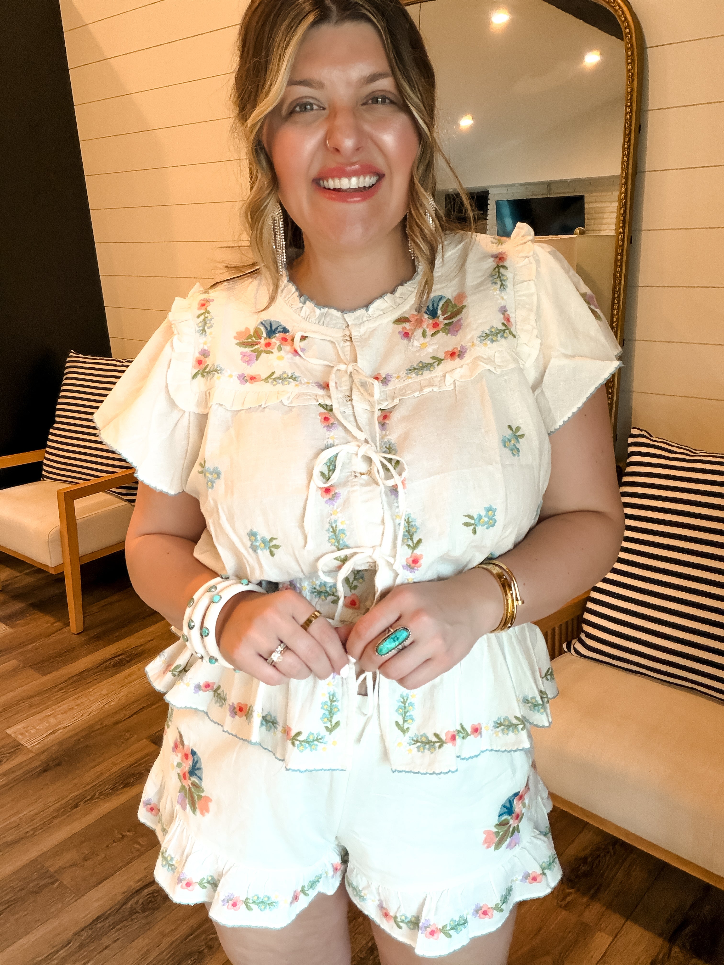 These playful shorties are a warm-weather essential! Featuring an elastic waist for comfort and embroidered floral trims for a feminine finish, they’re perfect for any spring look. Pair with western boots for a laid-back touch or dress them up with ballet flats - these shorts are as versatile as they are cute!
