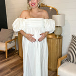 The Emilia Ruched Empire Maxi Dress in ivory captures pure romance. Off-the-shoulder sleeves and an empire waist create a soft, flowing silhouette. A beautiful choice for barefoot moments at seaside parties, where the breeze stirs the fabric and laughter fills the night air.