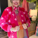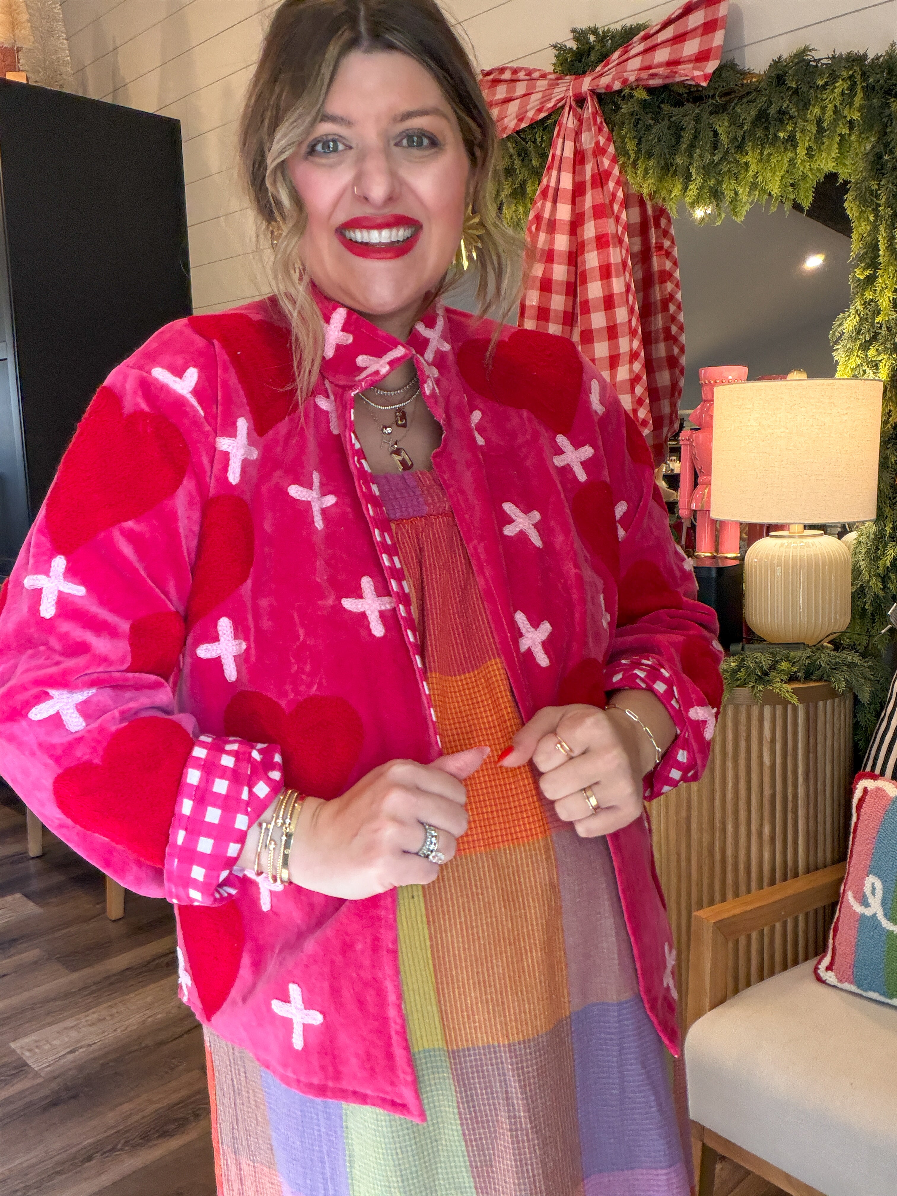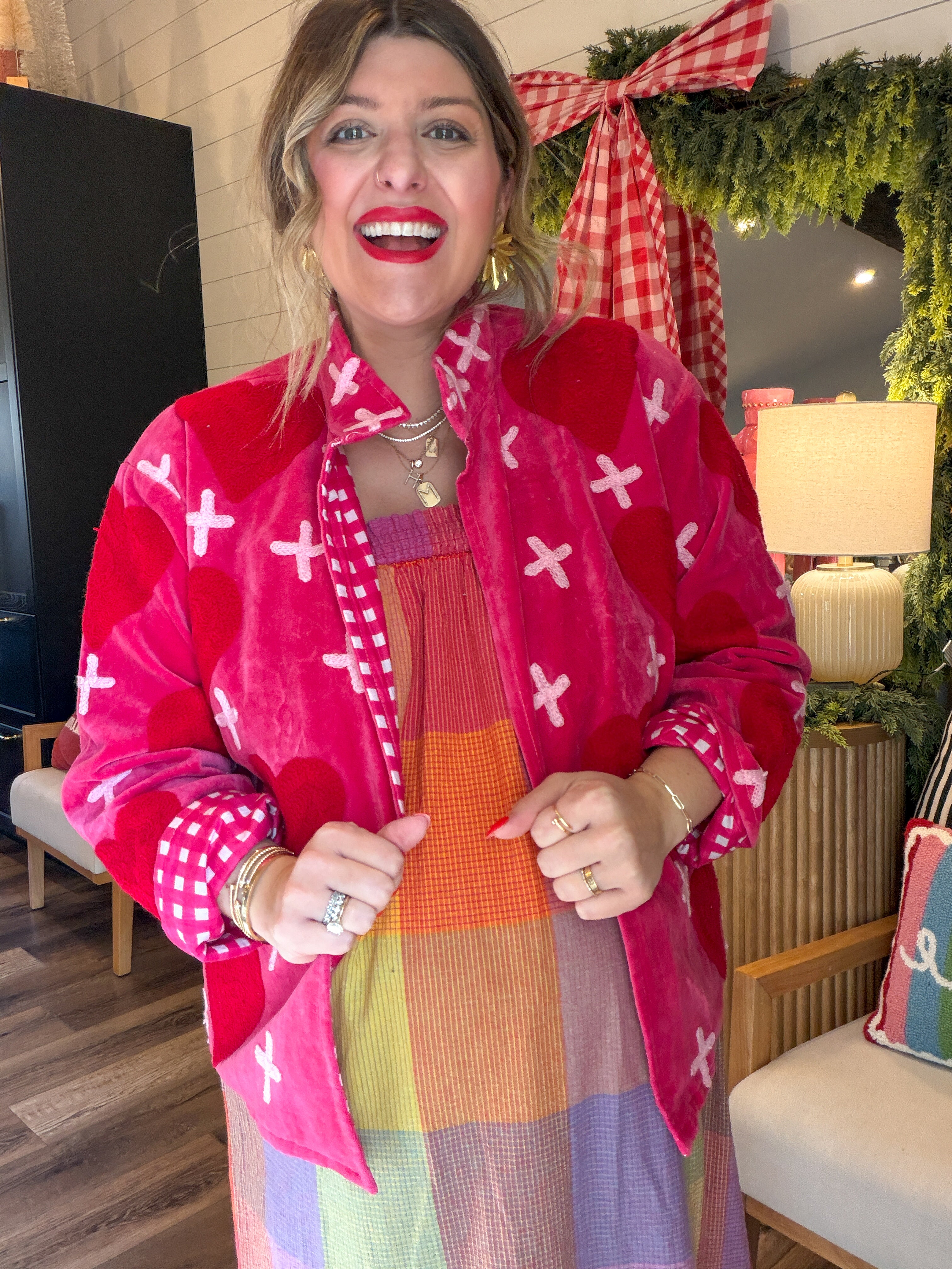 Discover the most amazing Chapman Embroidered Jackets in bright blue and lime green! Handmade with velvet and one-of-a-kind embroidery, these one size jackets are super lightweight and flexible. Stand out in style and comfort with this unique addition to your wardrobe.