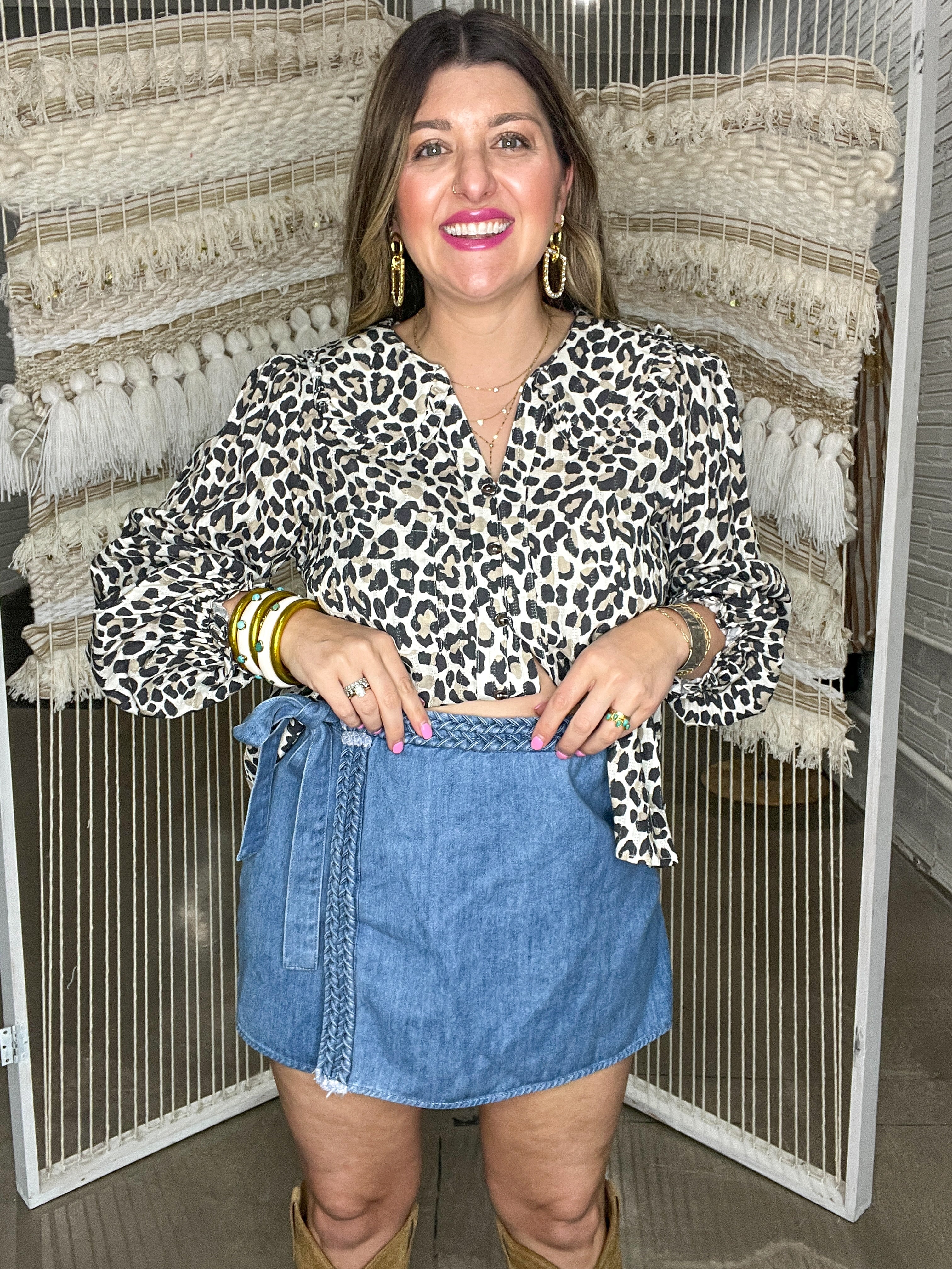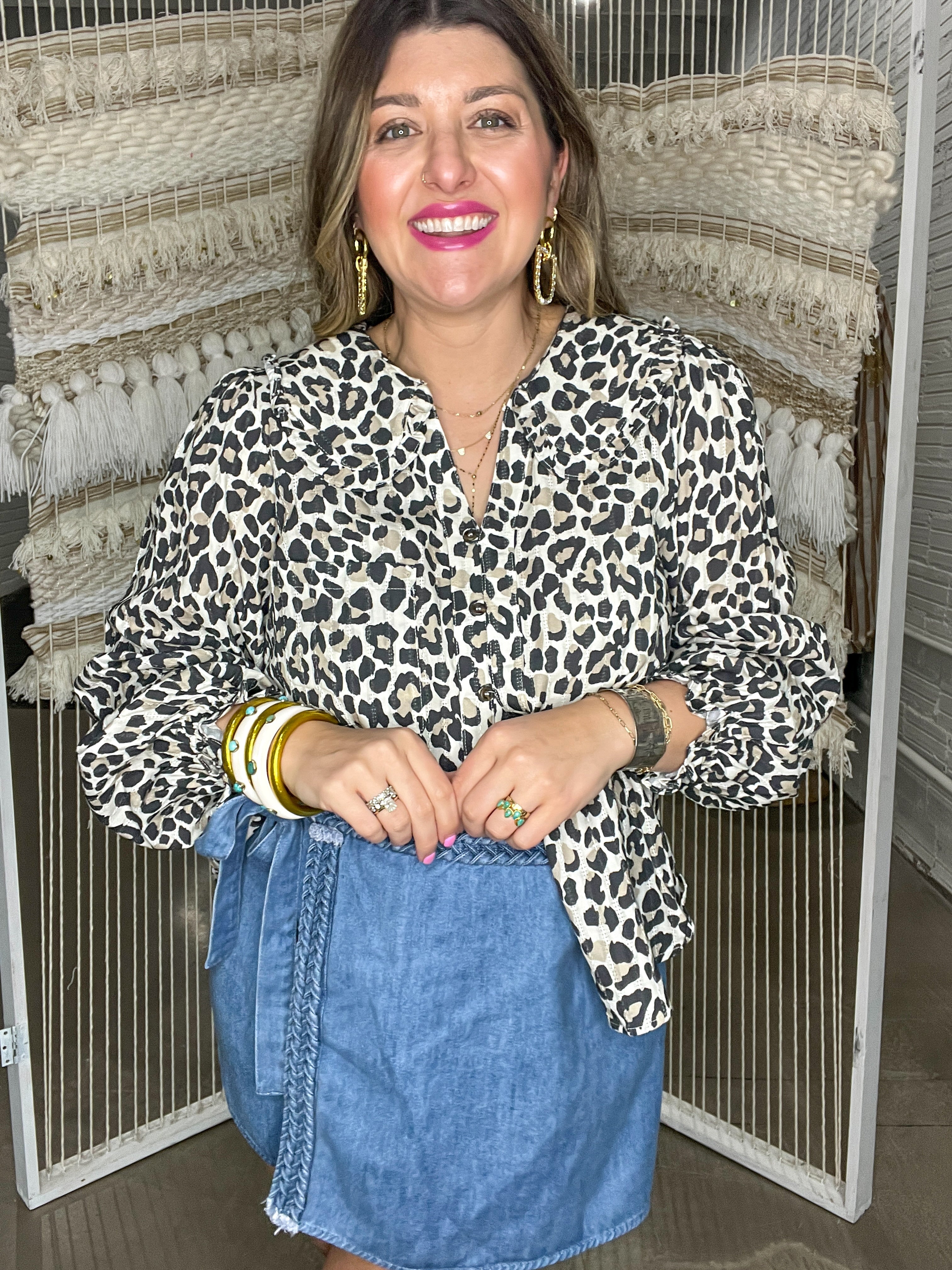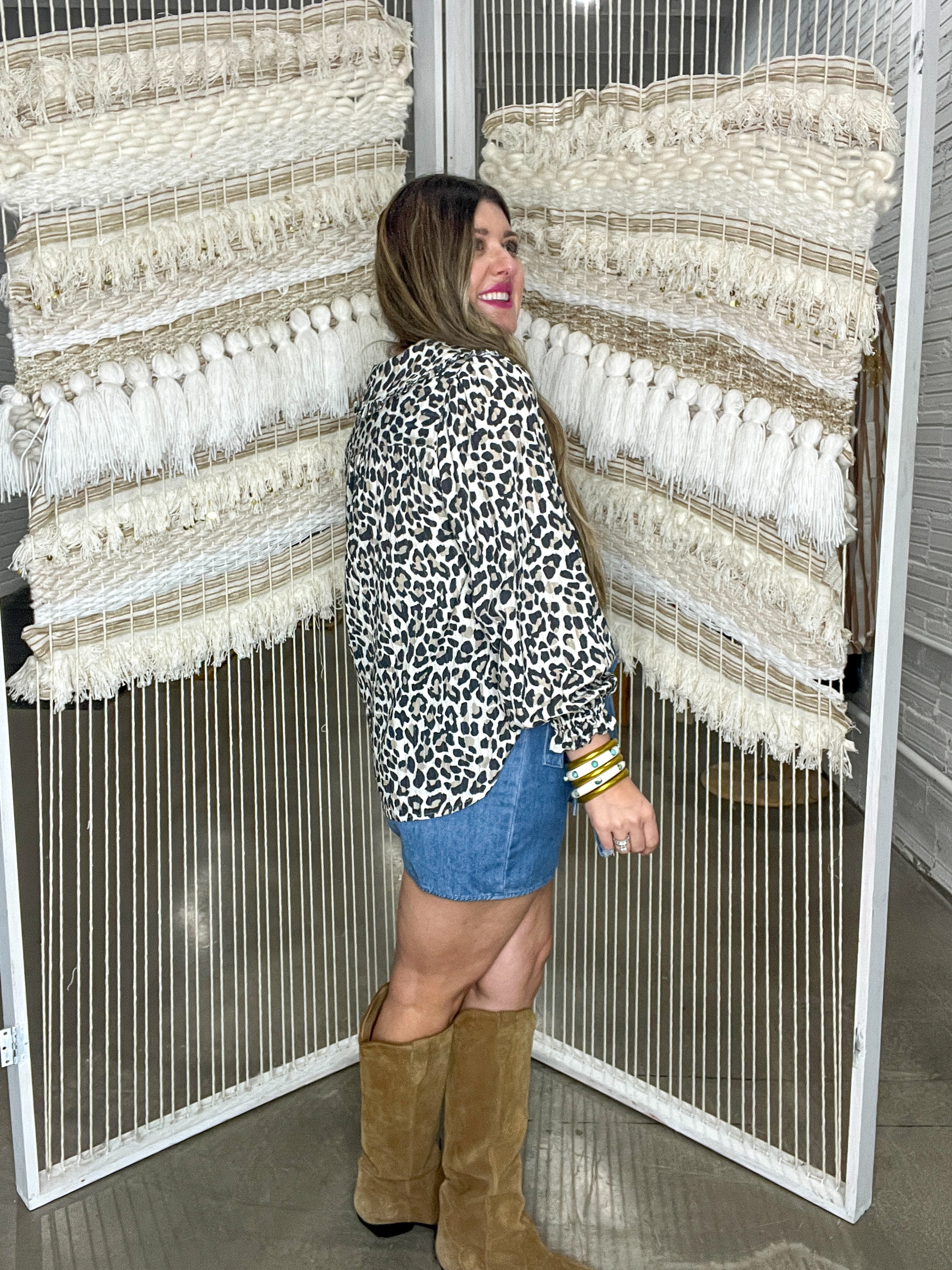 If this isn’t the cutest Peter Pan collared top I don’t know what it is. Enjoy this fun summer leopard print in the best ways yet… This button up is so soft, flexible, comfortable you don’t have to worry about embracing this summer heat because this thing will keep you cool! This button up is running true to size but roomie and the size large was giving plenty of room. Pair it with a cute pair of work pants or some Denim for the weekend and have yourself a ball!