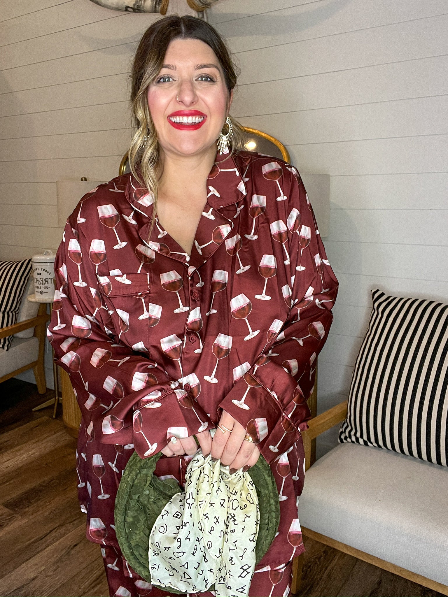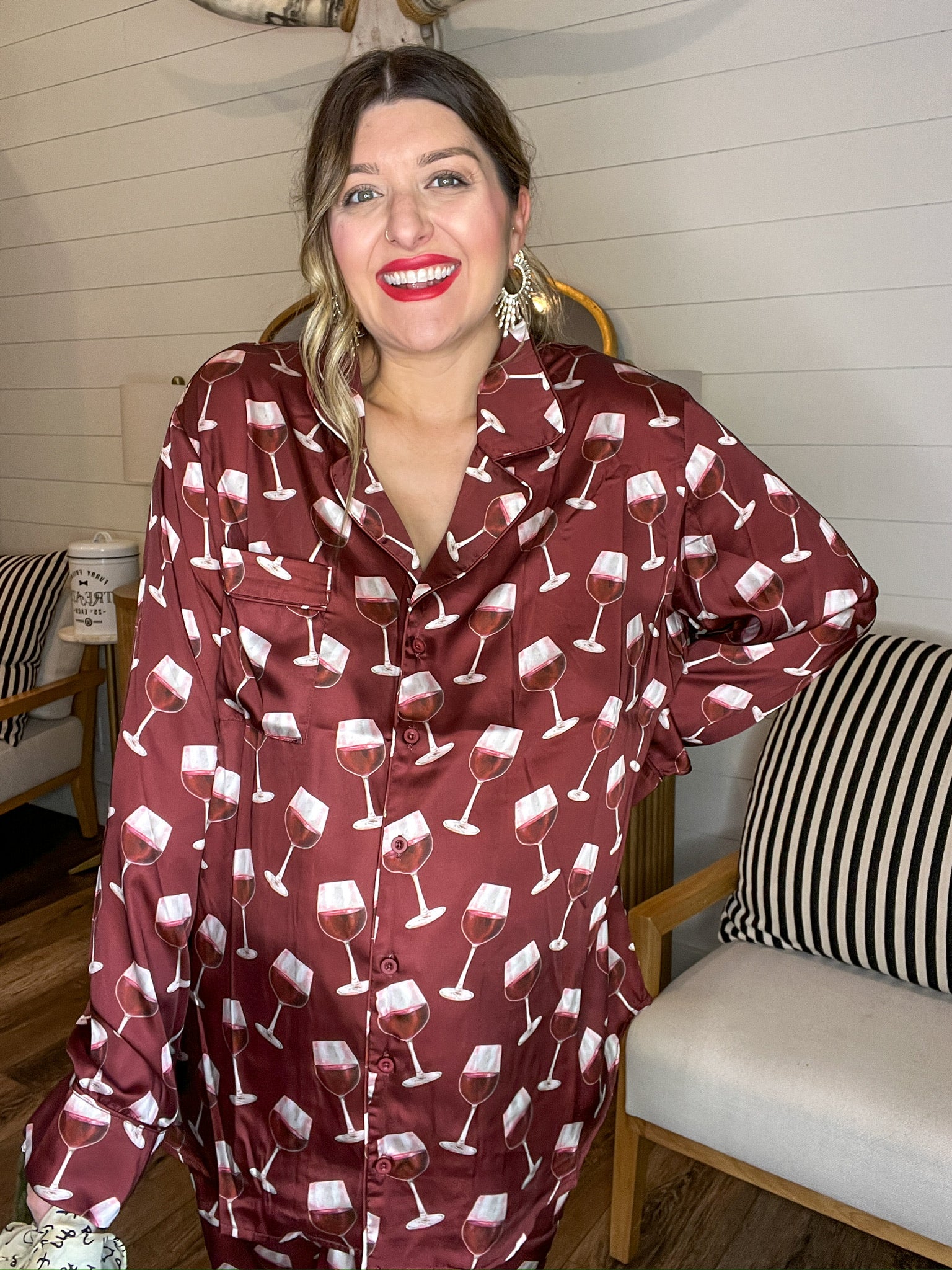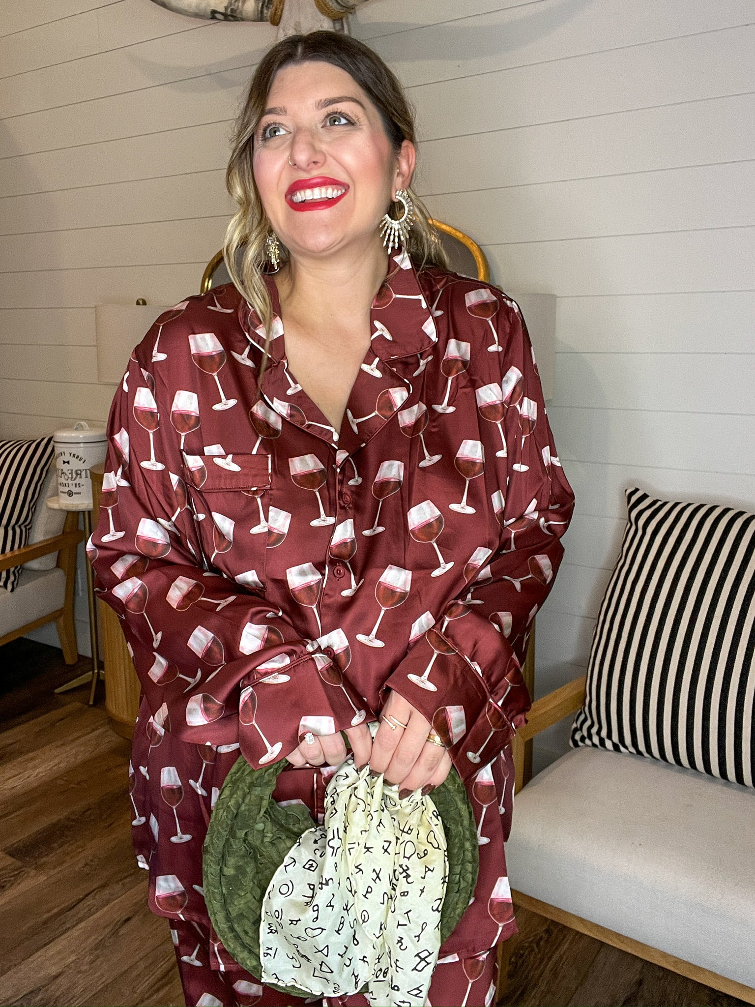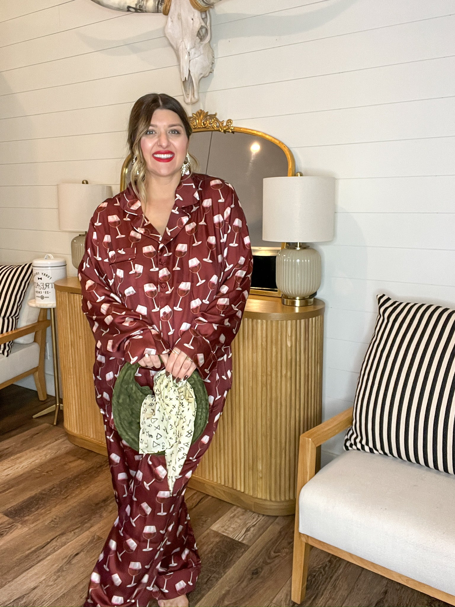 Out of stock{MUMU} Classic PJ Set - Red Wine Silky