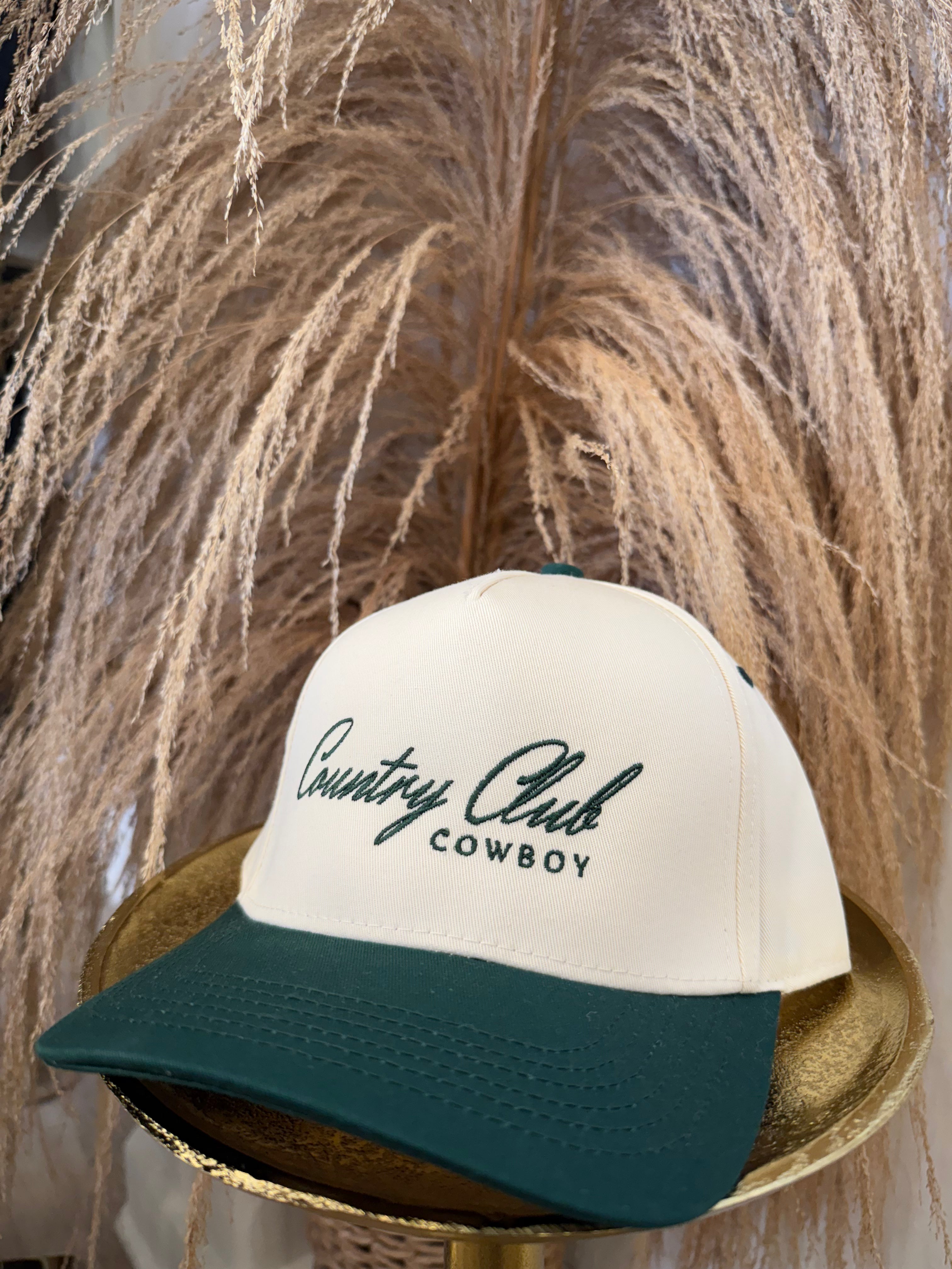 • “Country Club Cowboy” embroidered in bold, elevated script