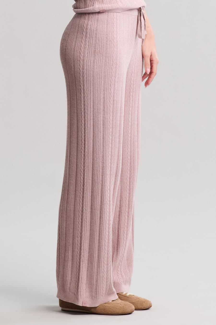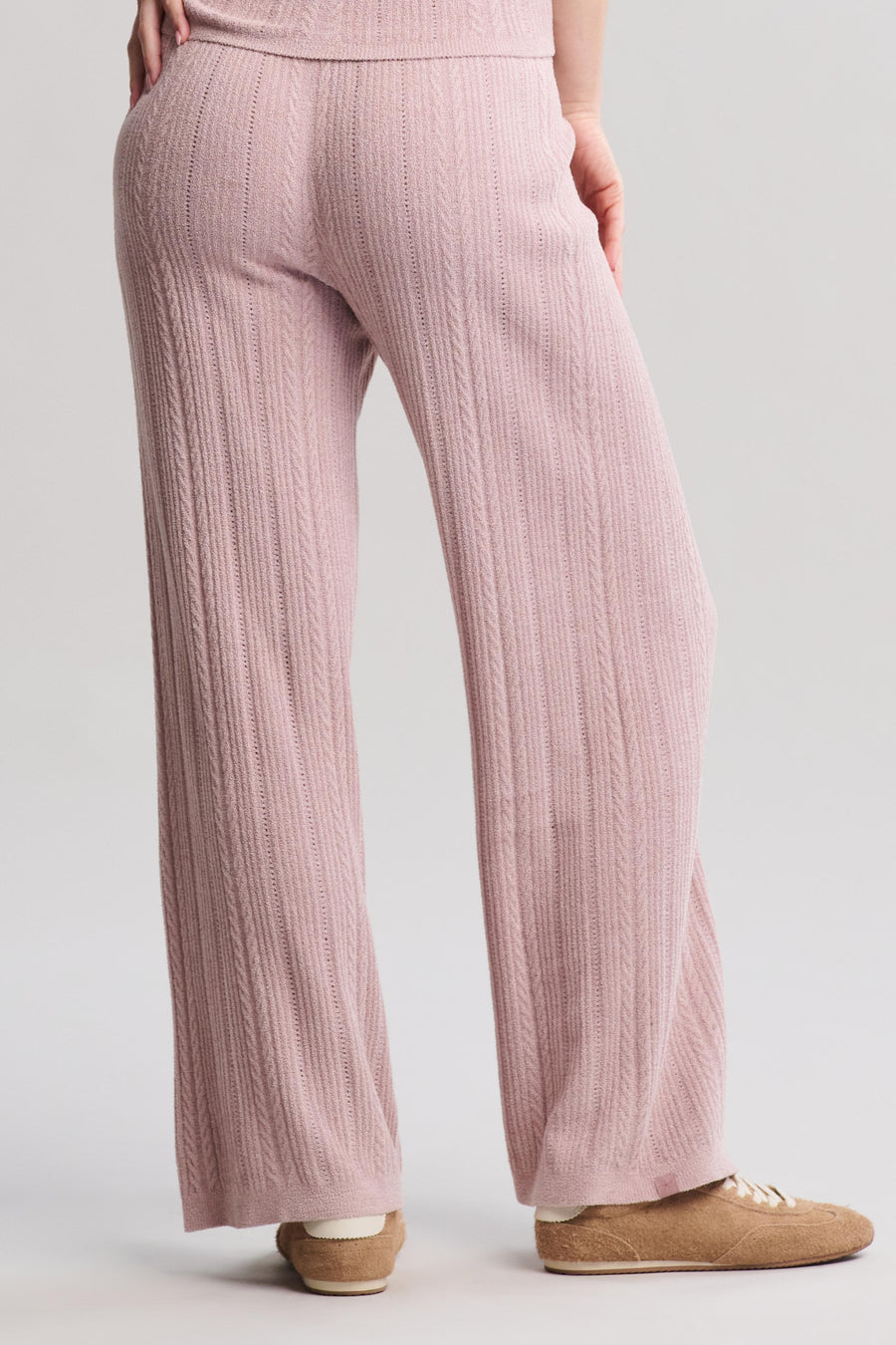 Soft, breathable, and effortlessly chic — our CozyChic Ultra Lite® Cable Knit Ankle Pant is your new go-to for elevated lounging and everyday wear. Crafted from our featherlight CozyChic Ultra Lite® yarn, these wide leg pants feature an all-over cable rib knit with delicate pointelle stitch detailing for texture that feels as beautiful as it looks. A drawstring waistband with encased elastic ensures a personalized, comfy fit, while ribbed leg openings and a modern ankle-grazing length keep the silhouette sleek and versatile. Make it a set with our CozyChic Ultra Lite® Cable Knit Cardigan with Ruffle and our CozyChic Ultra Lite® Cable Knit Tank. Imported.