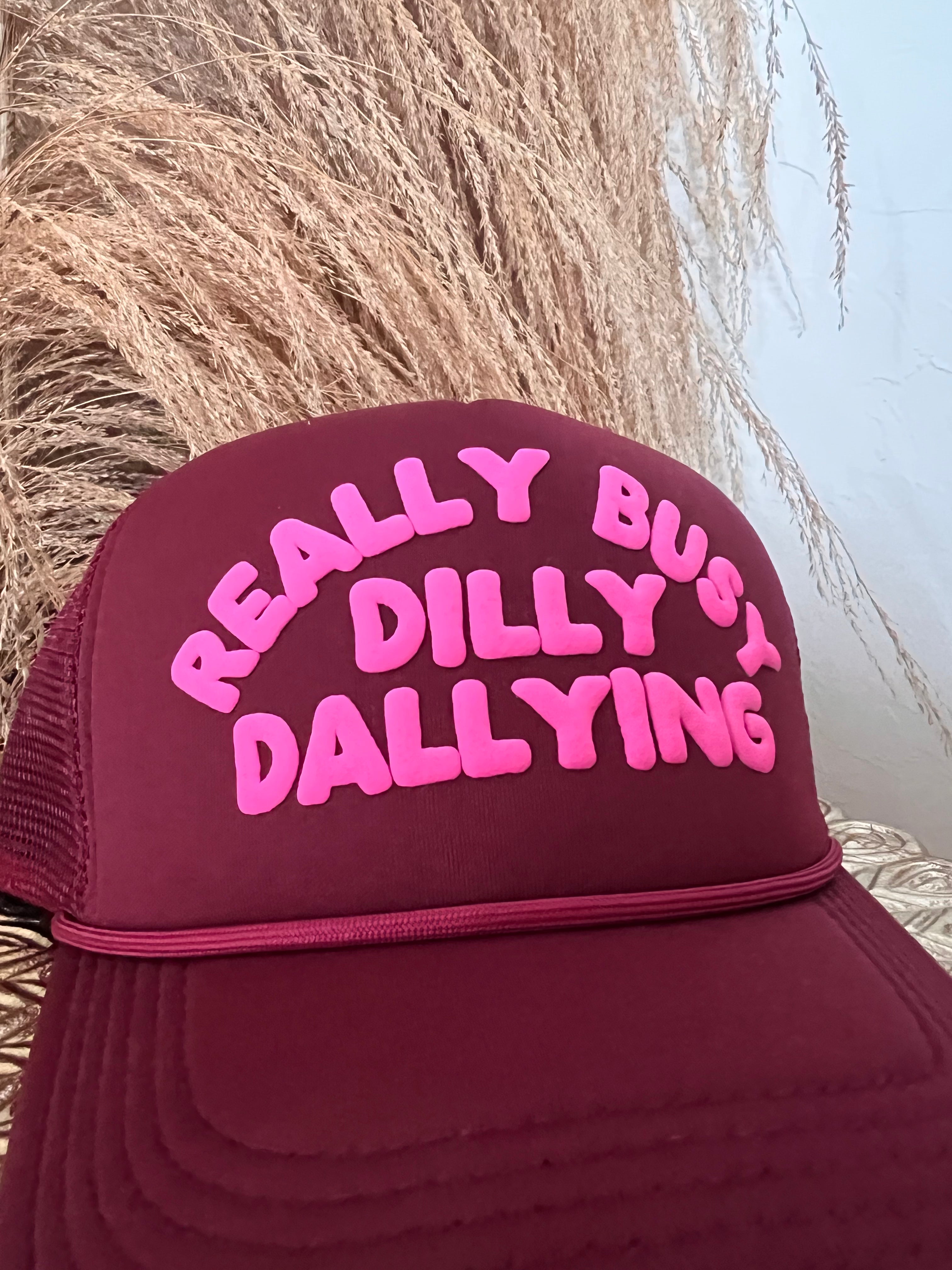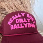 Dilly Dally Trucker Hat - Burgundy + Pink