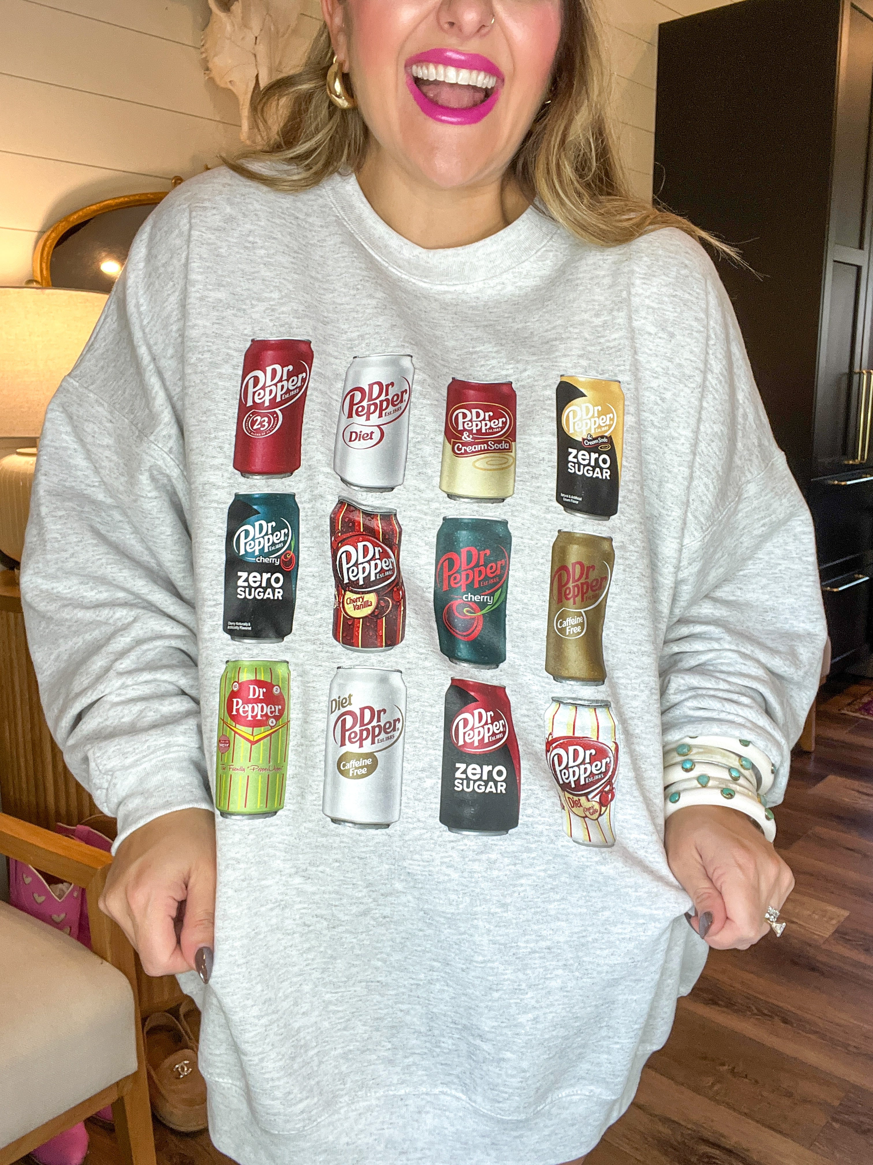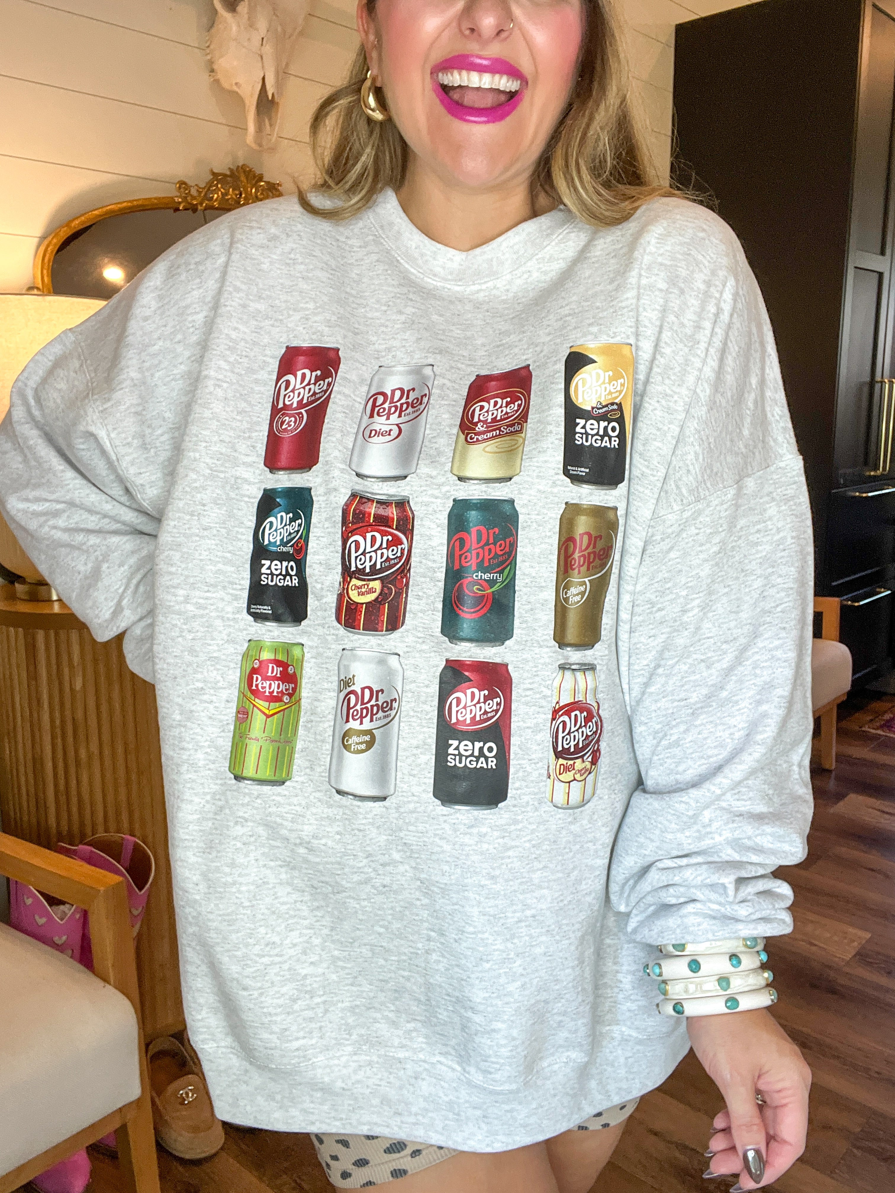 Ten, two, and four? More like all day, every day. This one’s for the girlies who don’t just like Dr Pepper—they are Dr Pepper. Featuring all your favorite cans in a lineup worthy of a red carpet, this cozy crew brings the sass, the nostalgia, and the caffeine.