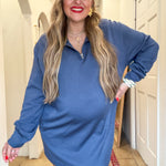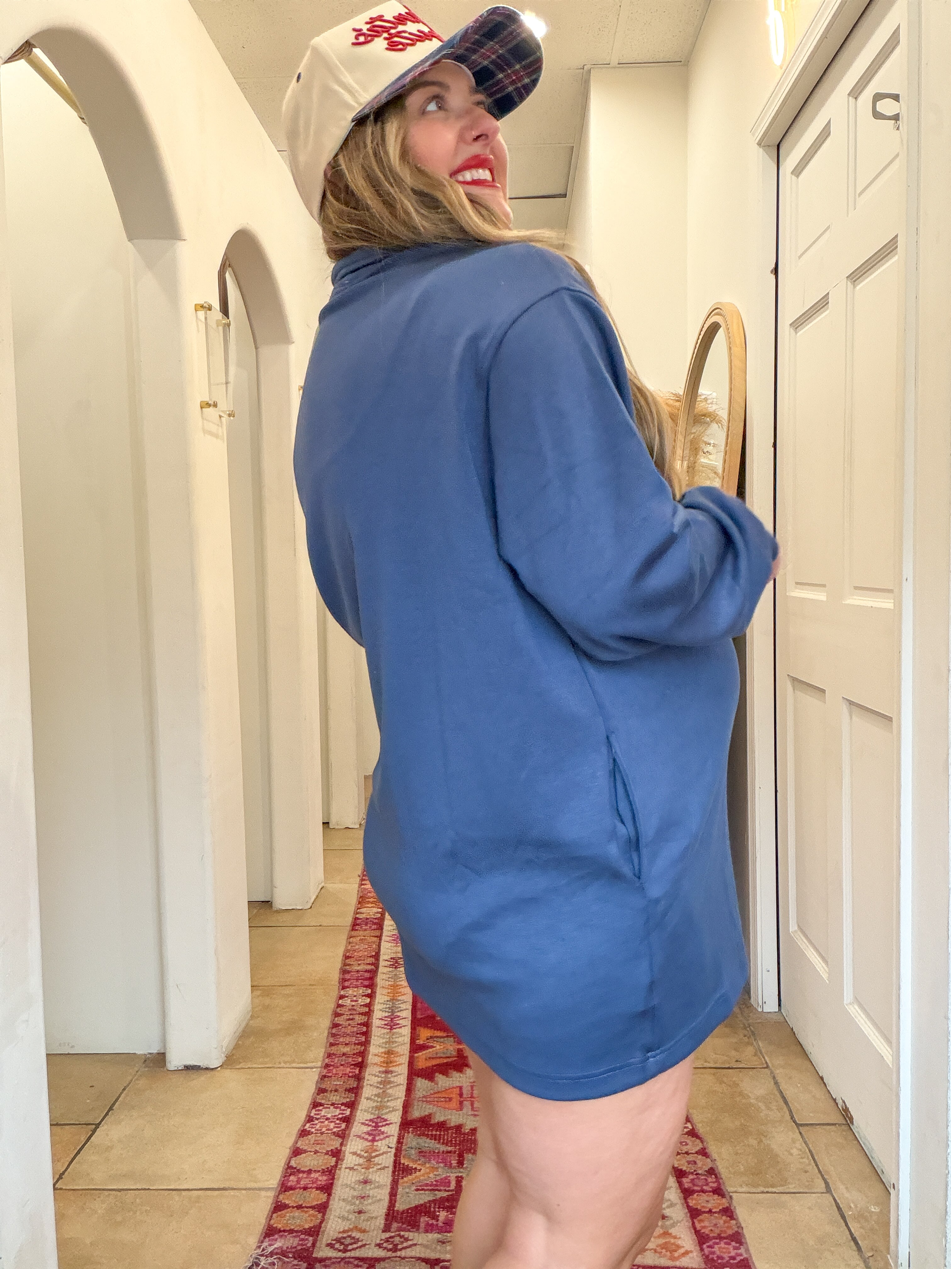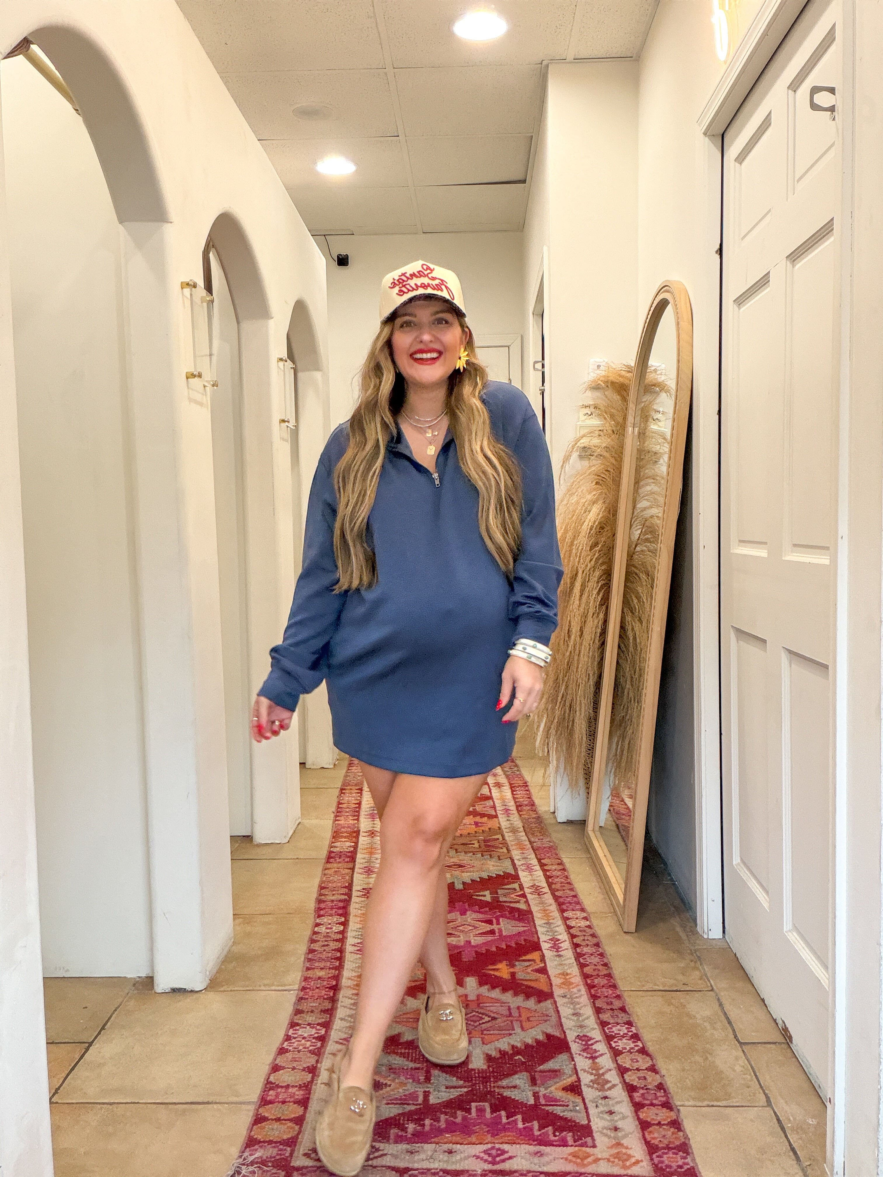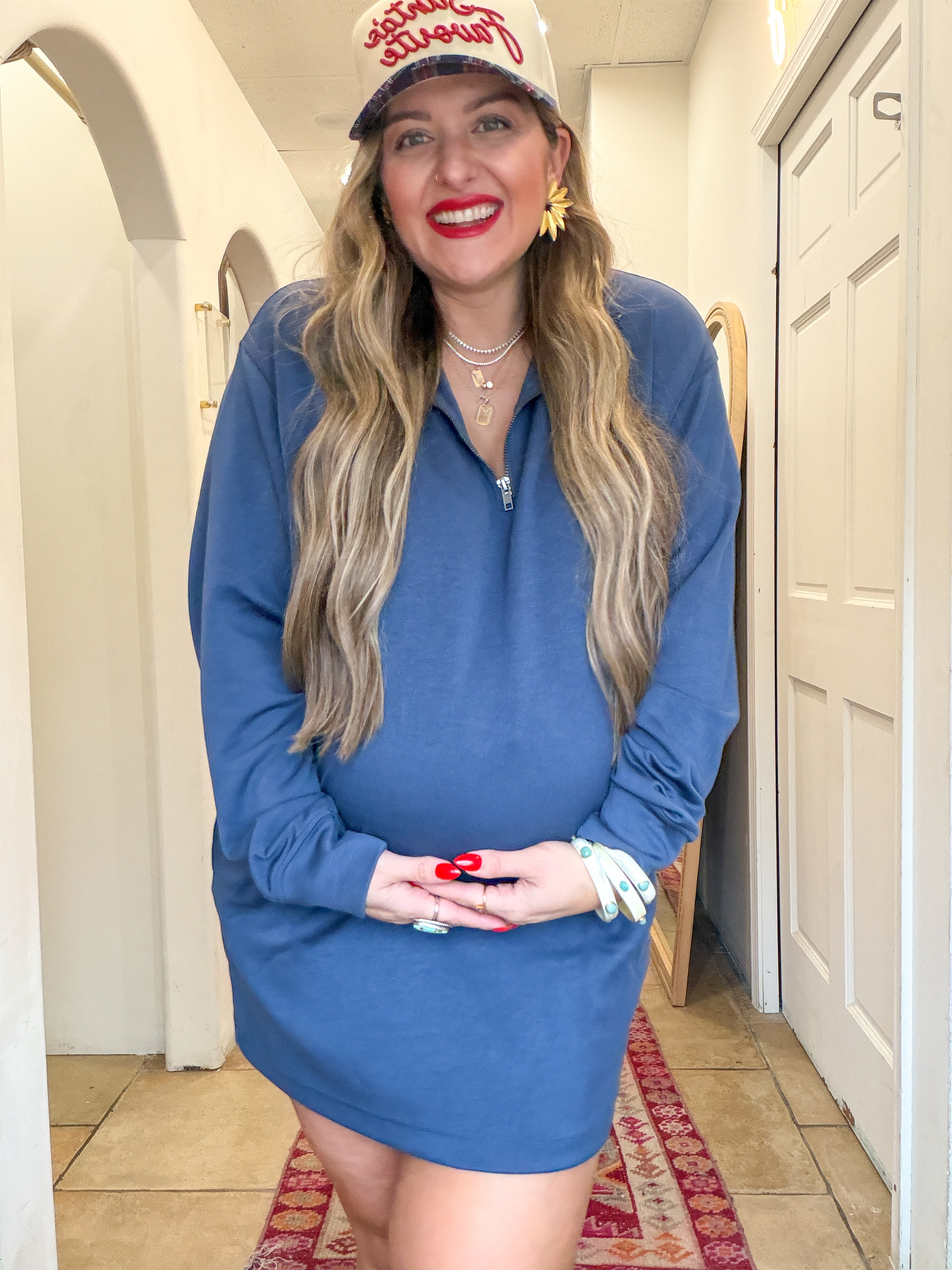 Meet your new winter MVP — this dusty navy half-zip mini is the perfect hybrid of sporty, sleek, and secretly so soft. Whether you’re headed to class, brunching with the girls, or pretending your errands are actually a Main Character montage, this dress shows up and shows off.