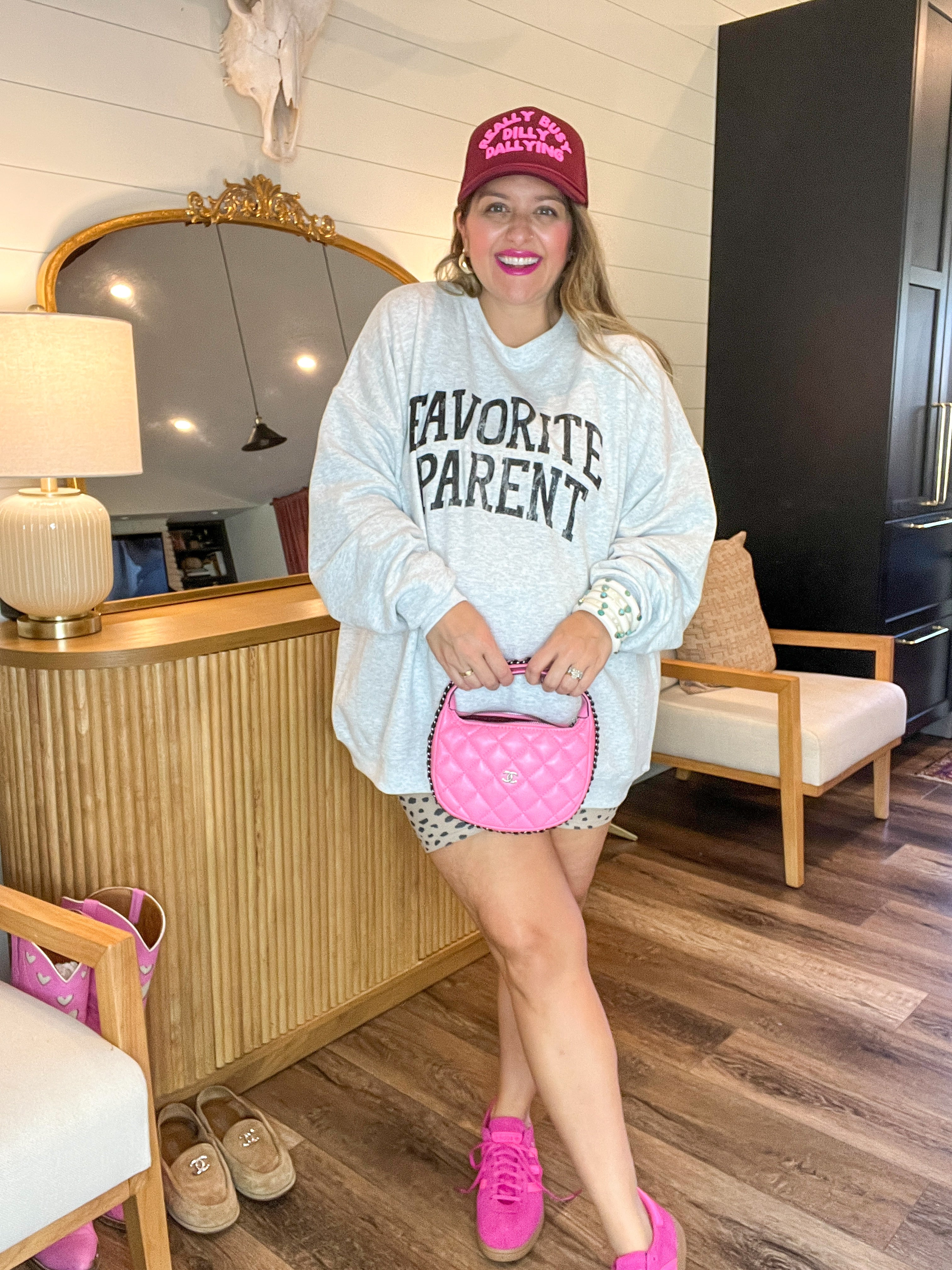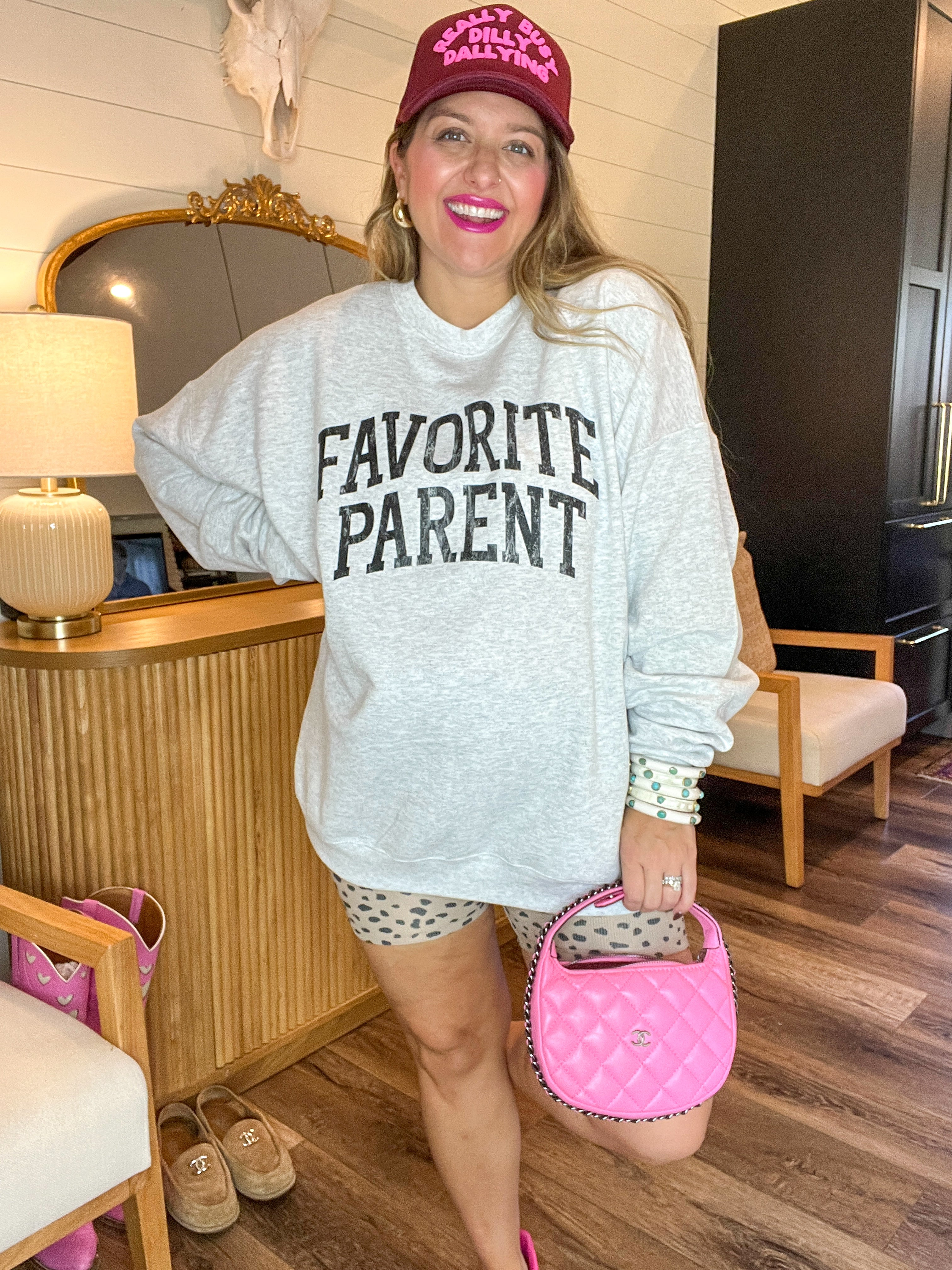 For the parent who’s not just in the game but winning it. This ash grey pullover with bold black varsity lettering lets the world know exactly where you stand—top of the leaderboard, hands down. Equal parts cozy and cheeky, it’s a wardrobe win.