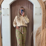 Floral Braided Patch Print Pants