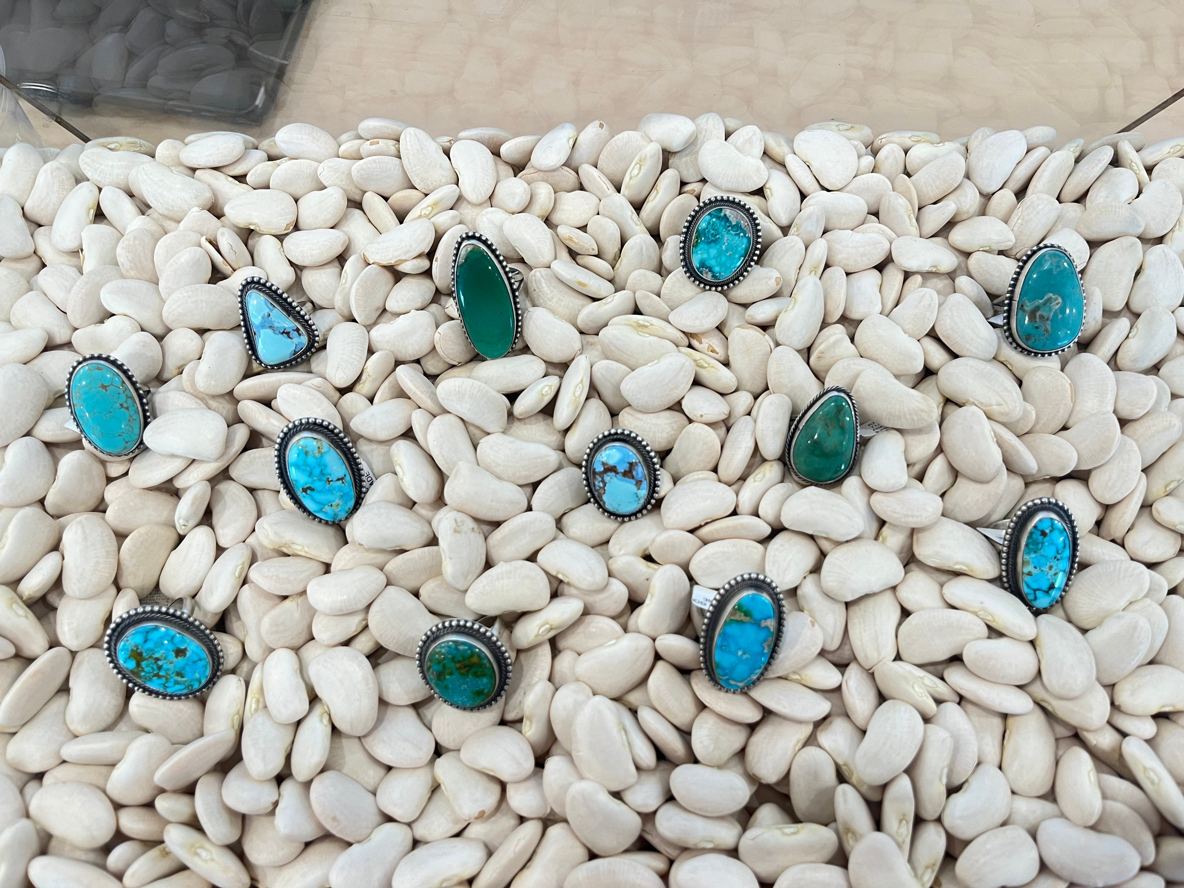 All of these turquoise rings are unique and individual to the type of turquoise. Handmade and genuine turquoise and silver.