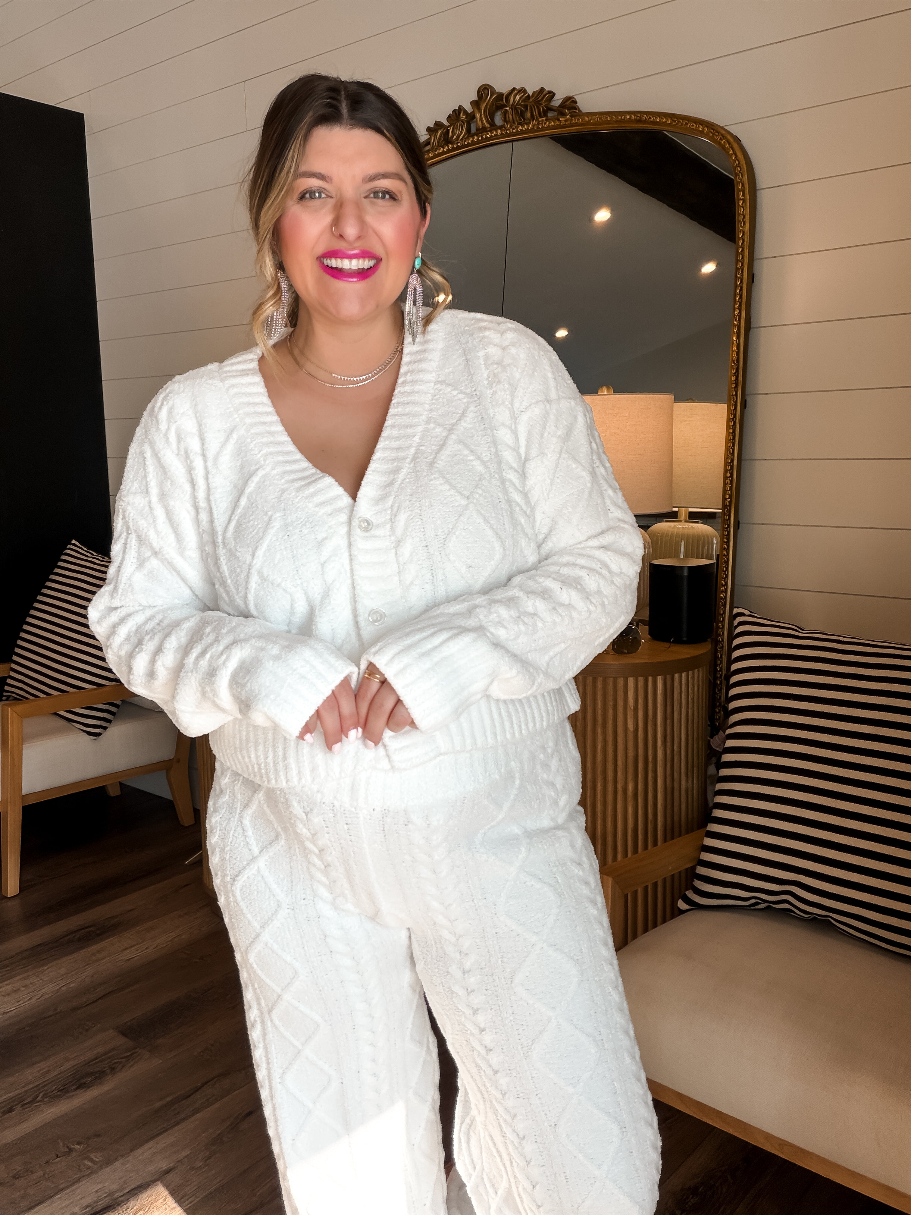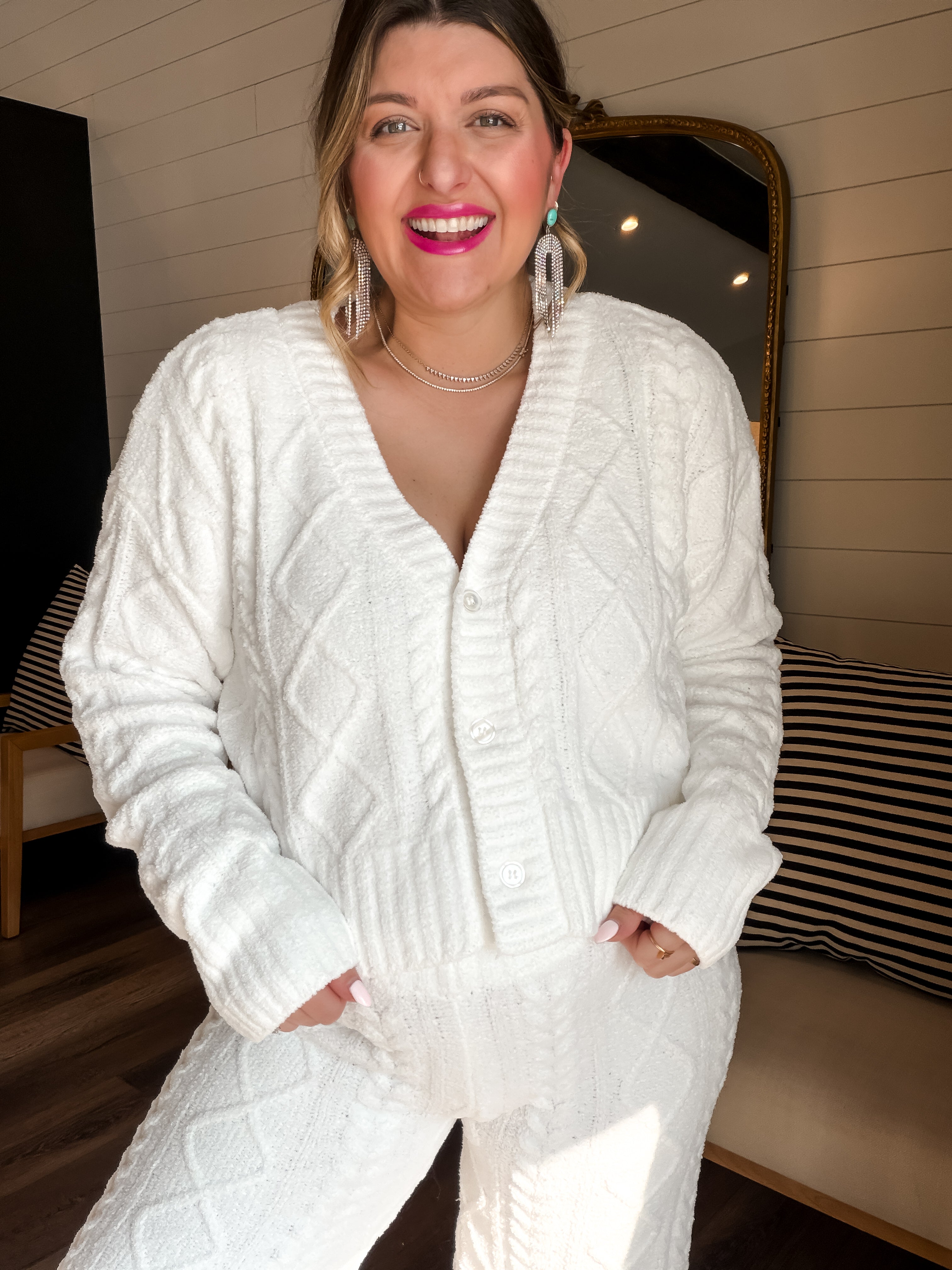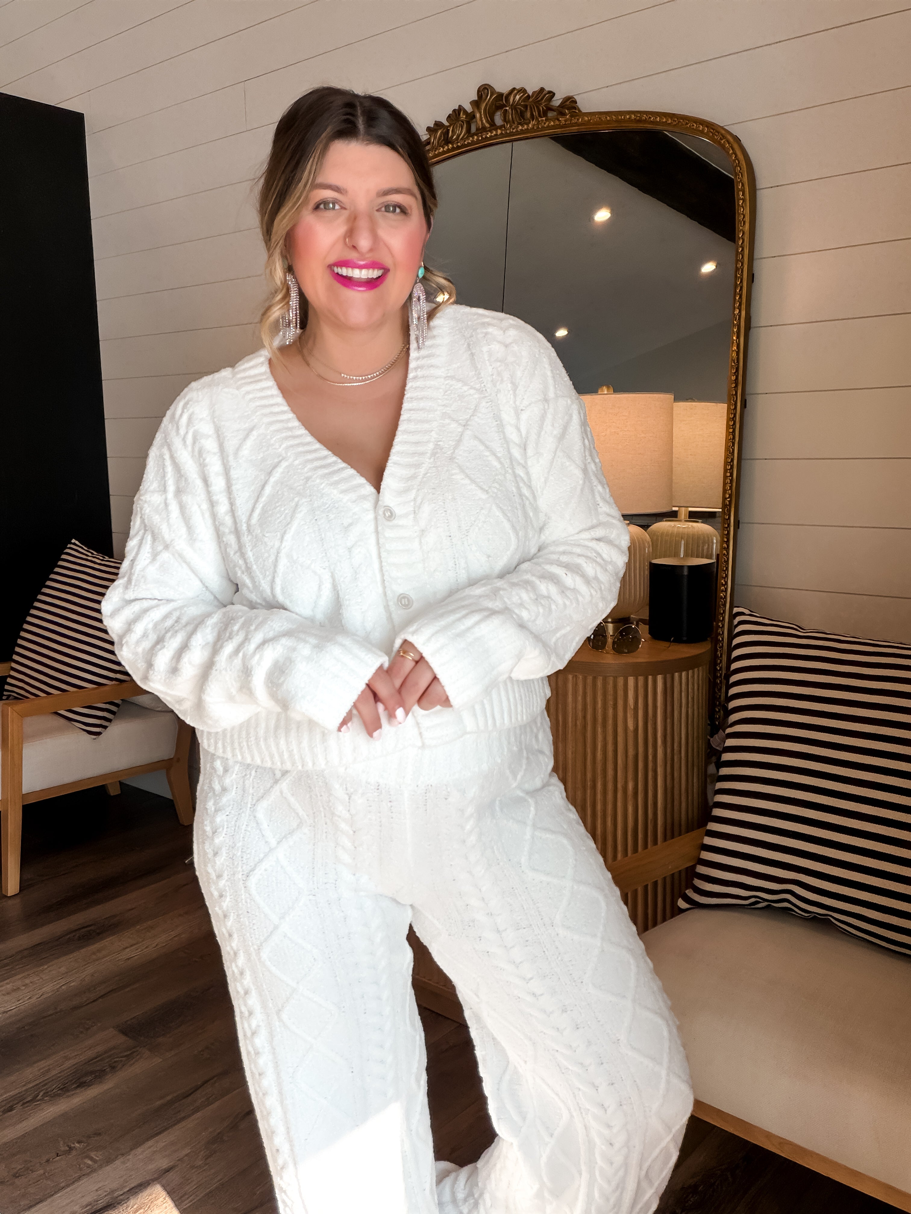 • With a matching cable knit sweater for a full cozy set moment