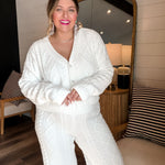 Meet the pants that make staying in feel chic and stepping out feel intentional. The Gemma Cable Knit Pant is giving luxe lounge, apres-ski energy, and effortless winter layering all in one dreamy silhouette. Crafted from chunky cable knit with the softest marshmallow-like yarn, these pants are what you reach for when jeans feel illegal but sweatpants feel… uninspired.