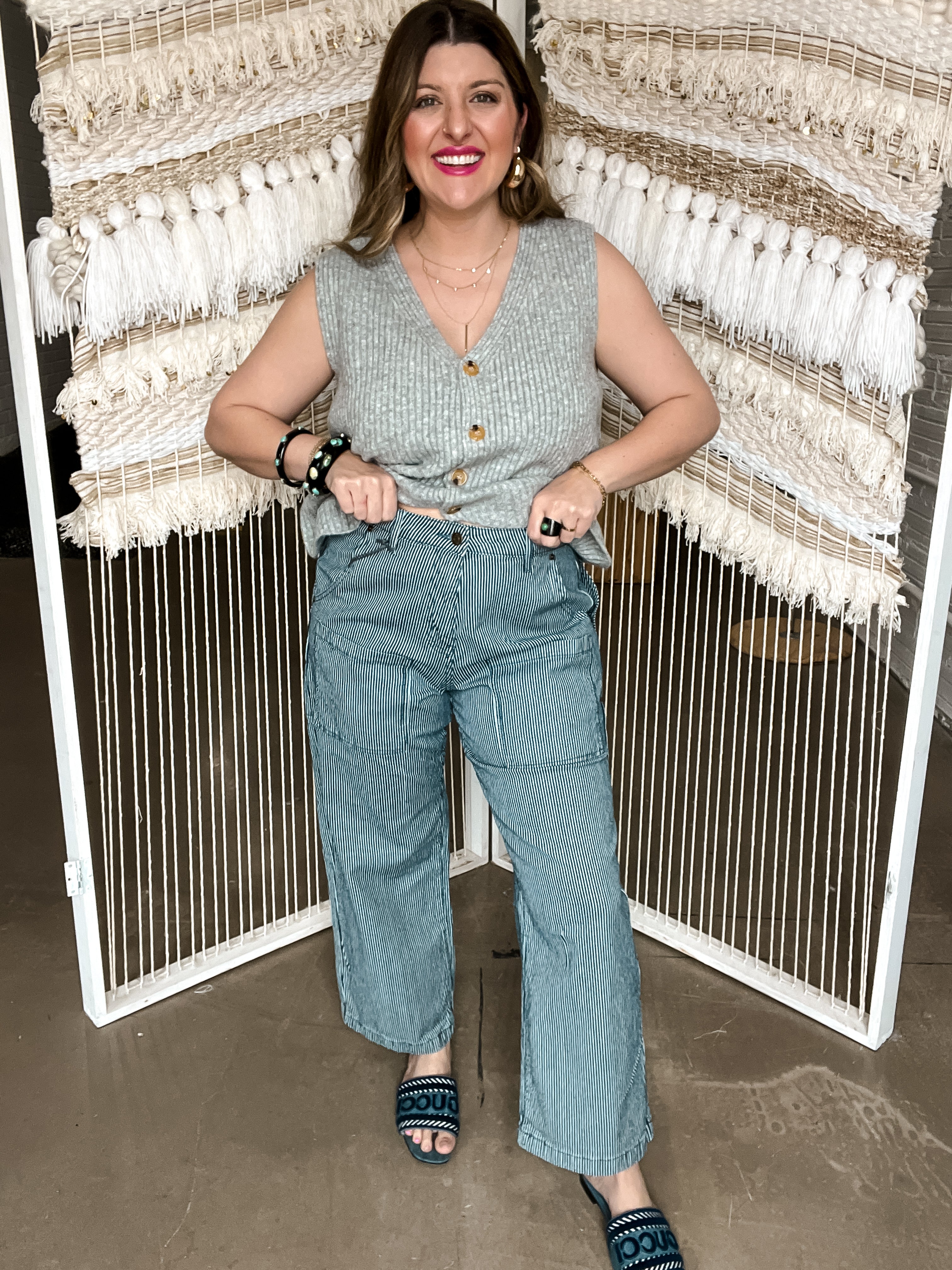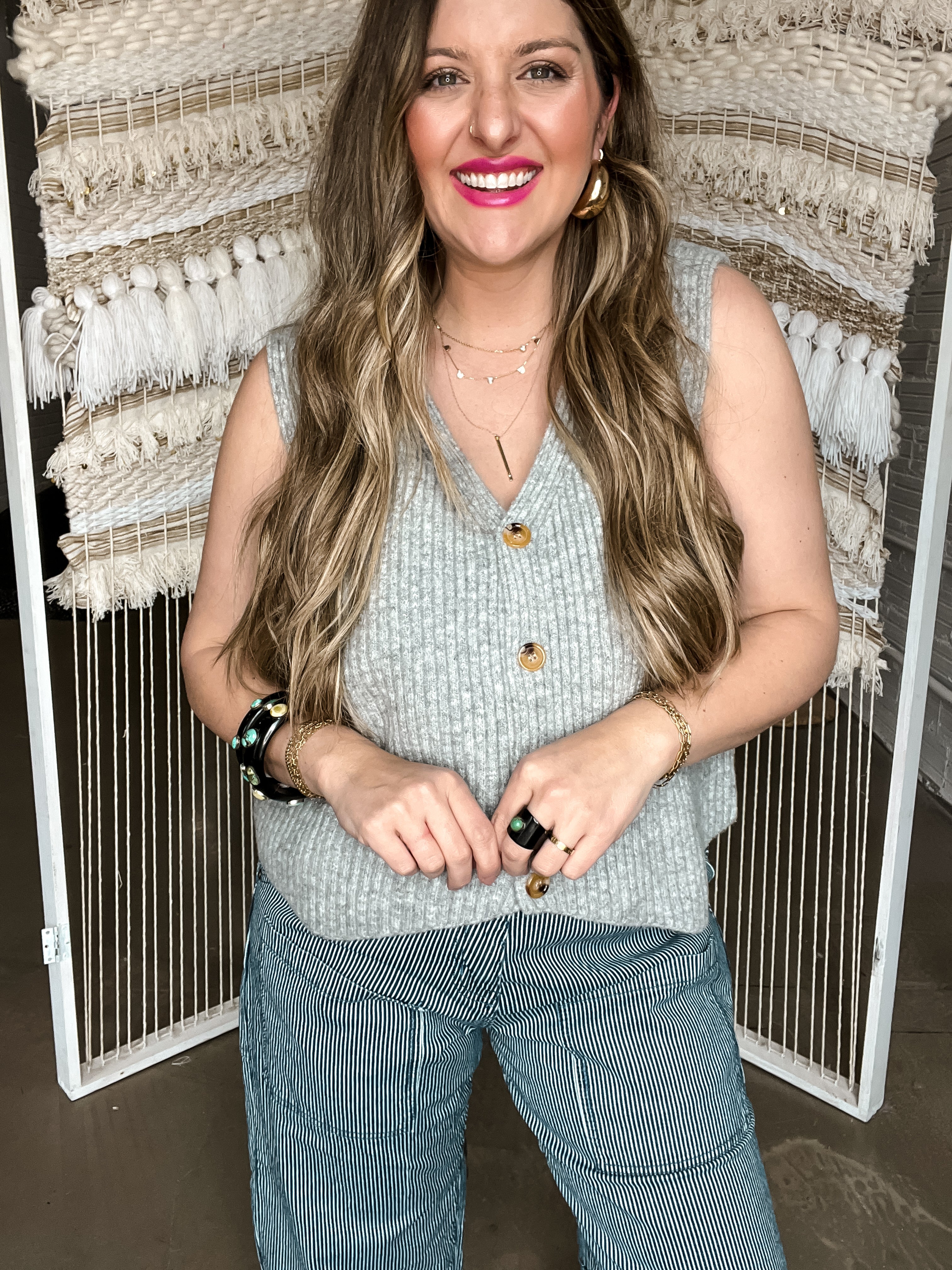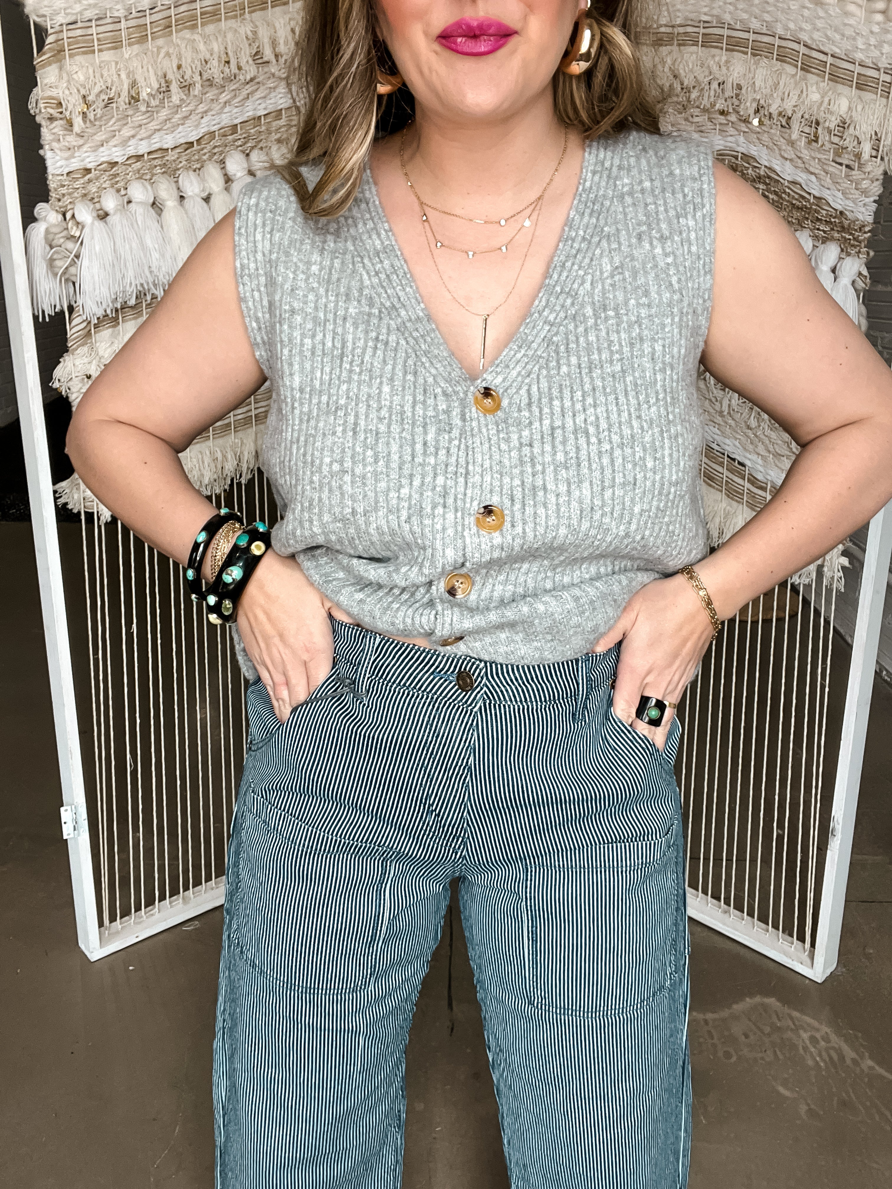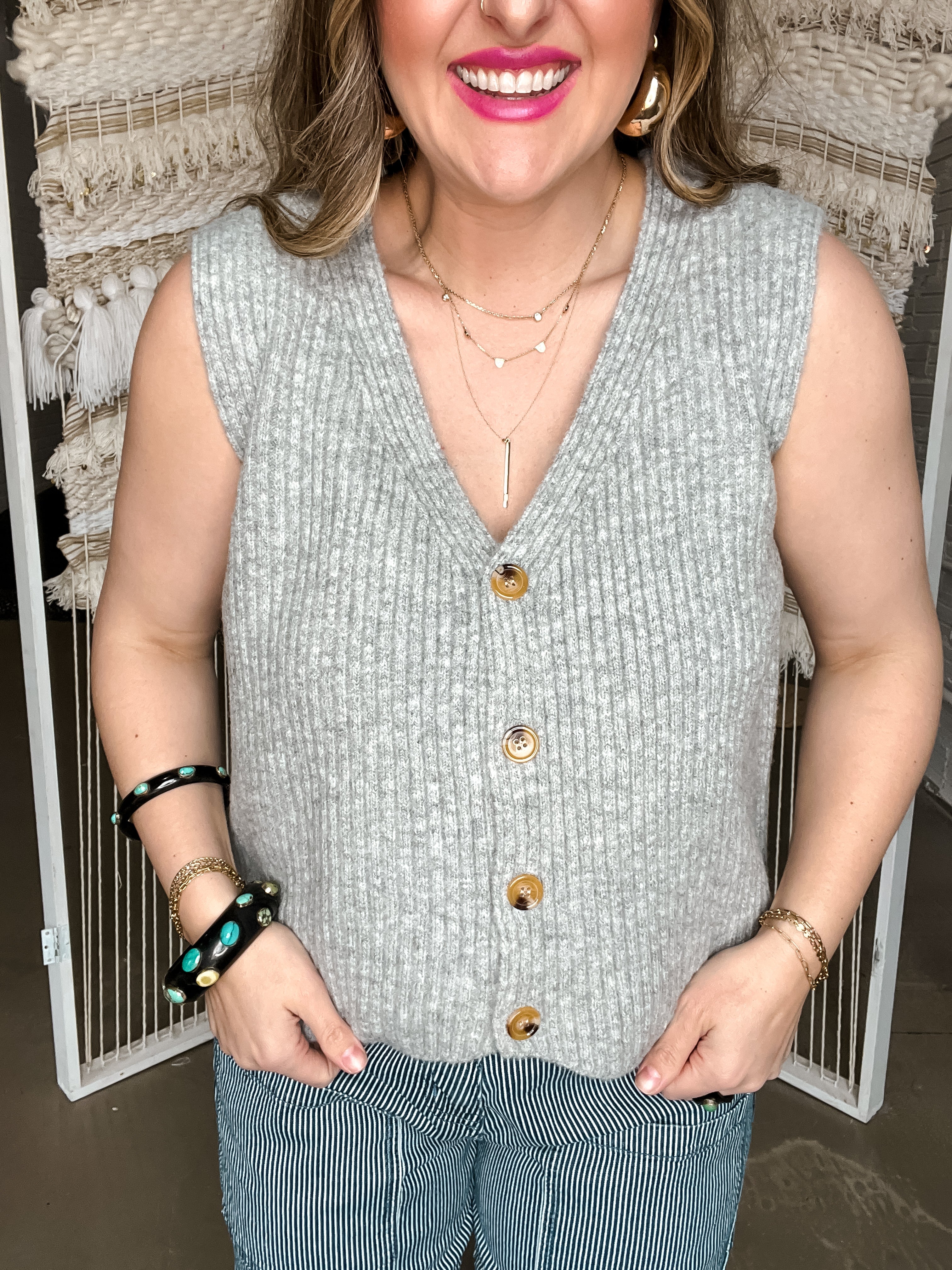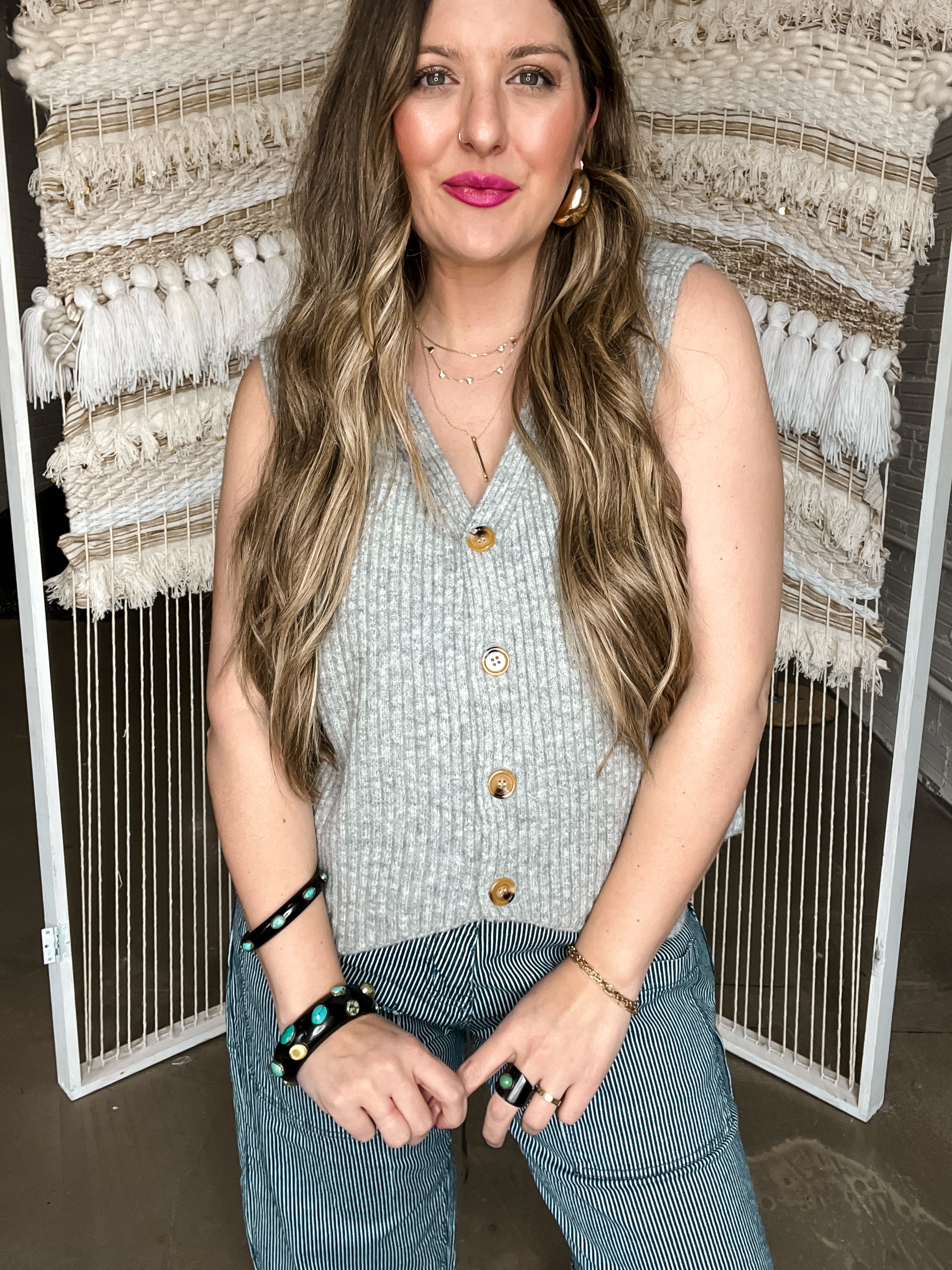 Stay effortlessly chic with the Galvez Grey Sweater Vest Top! Made with a chunky knit and featuring a v-neckline and functional buttons, this sweater vest is the perfect addition to any outfit. Stay warm and stylish all season long with this must-have piece.