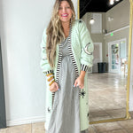 • Relaxed, oversized fit with an open front and full-length sleeves
