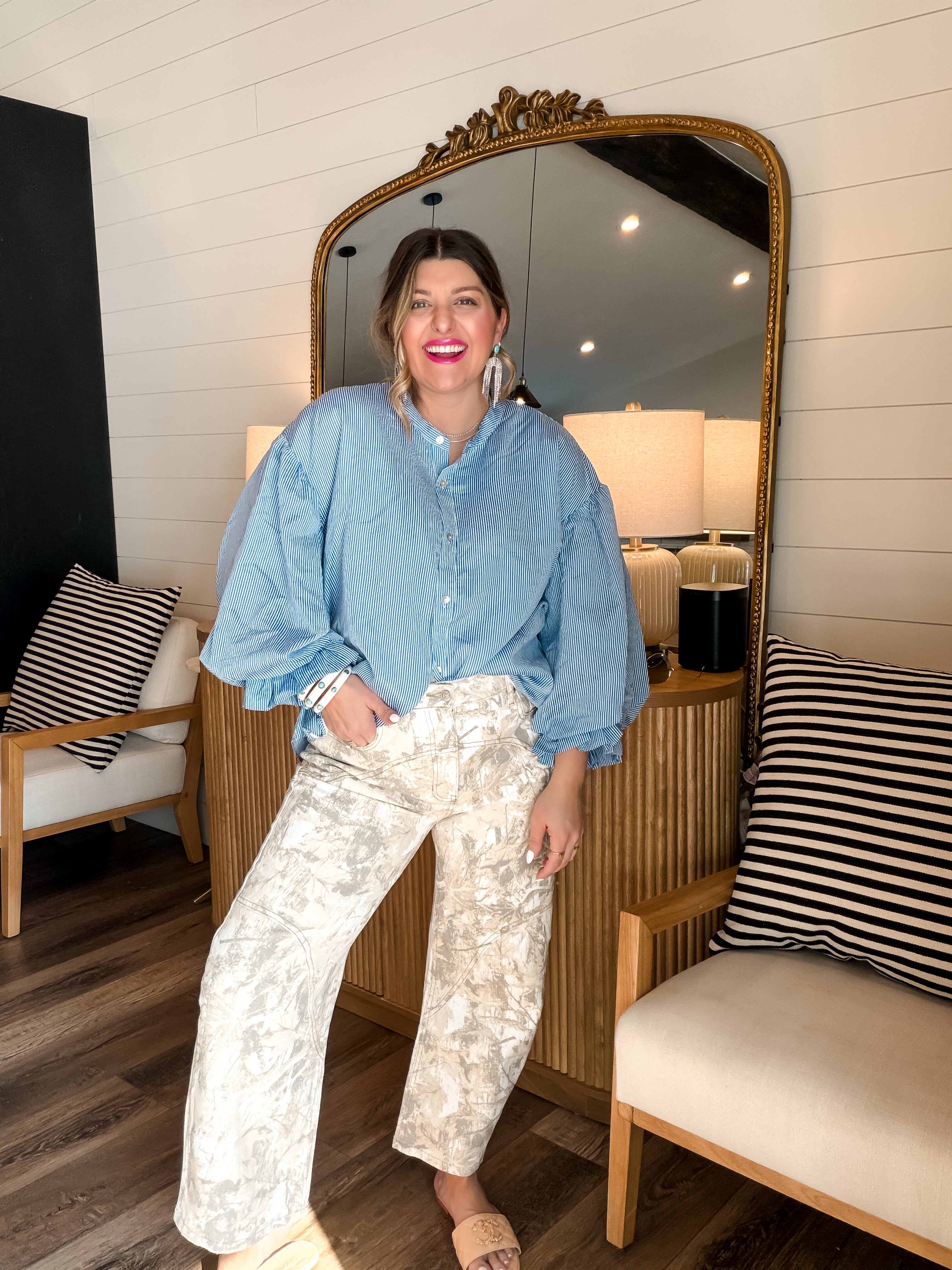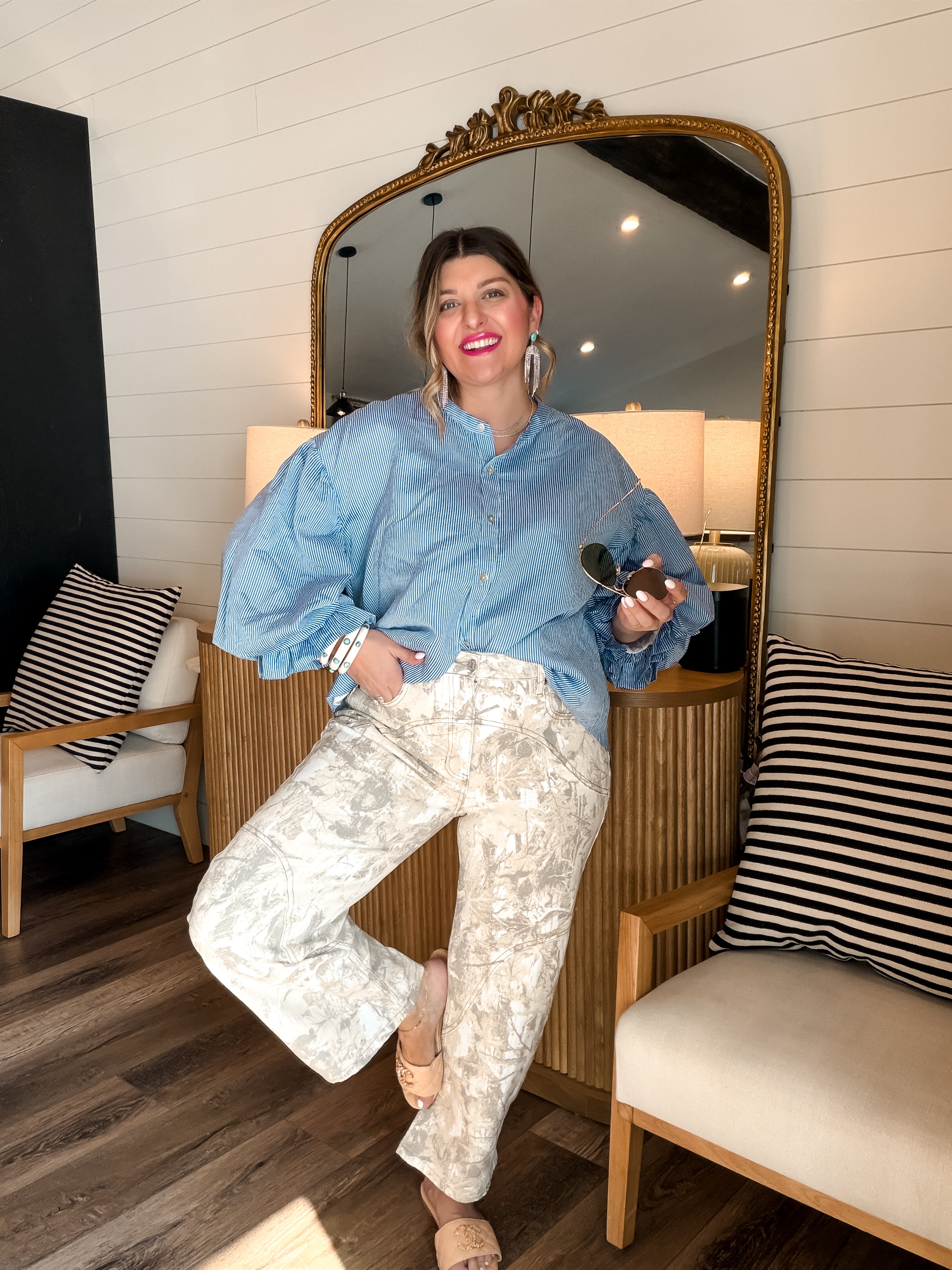These sand-washed camo barrel jeans are basically your yeehaw-but-make-it-fashion moment. The structured, sculpted leg gives off that cool girl western silhouette, while the subtle camo wash keeps things rugged, undone, and very “I thrifted these in a tiny desert town.” They’re bold, they’re weird (in a good way), and they make every outfit 10x more interesting with exactly zero effort.