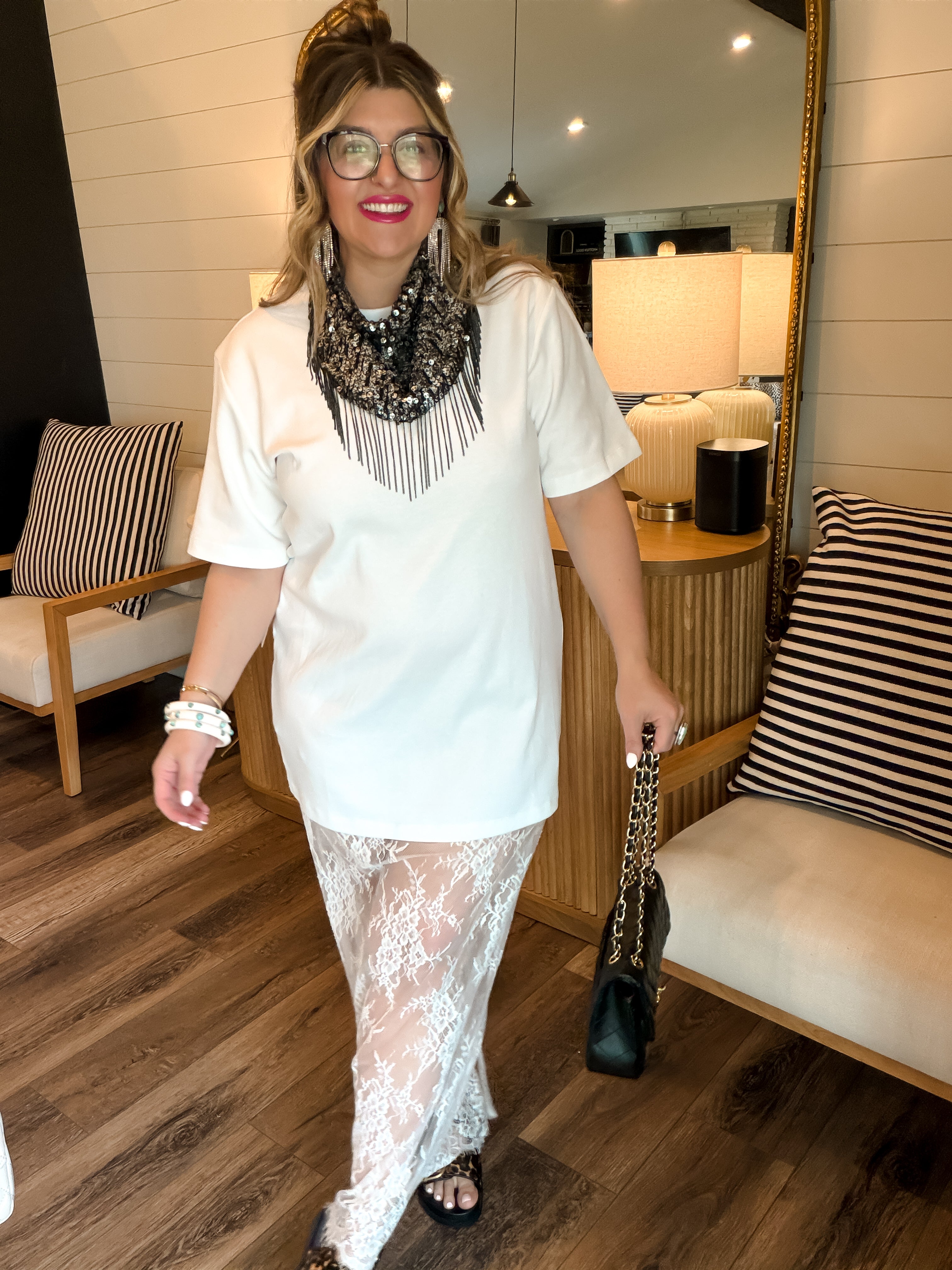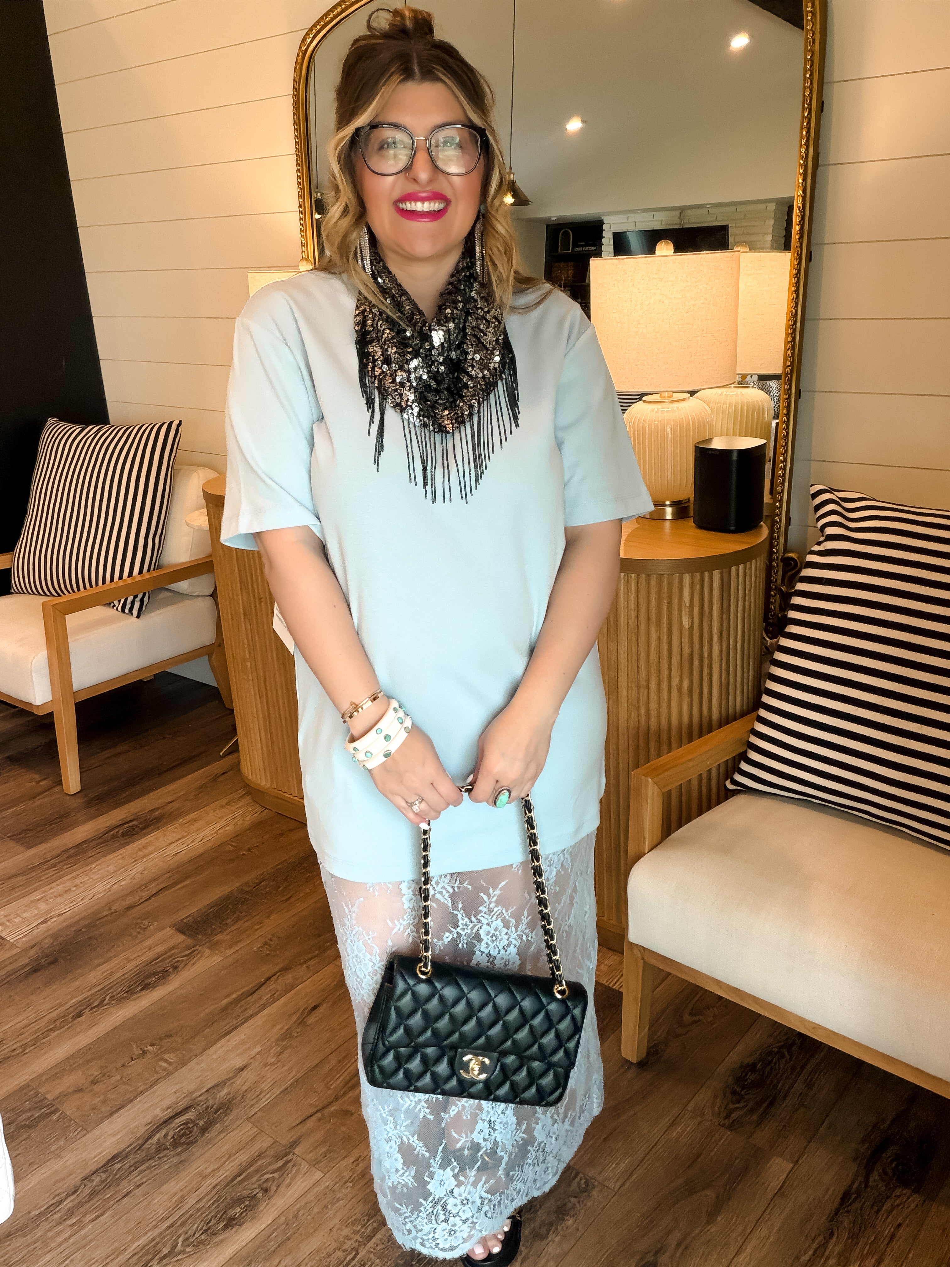 Pair her with denim and boots for a Nashville-ready look or over a sleek midi dress for full-on contrast vibes. Don’t forget the shades—this jacket deserves an entrance.