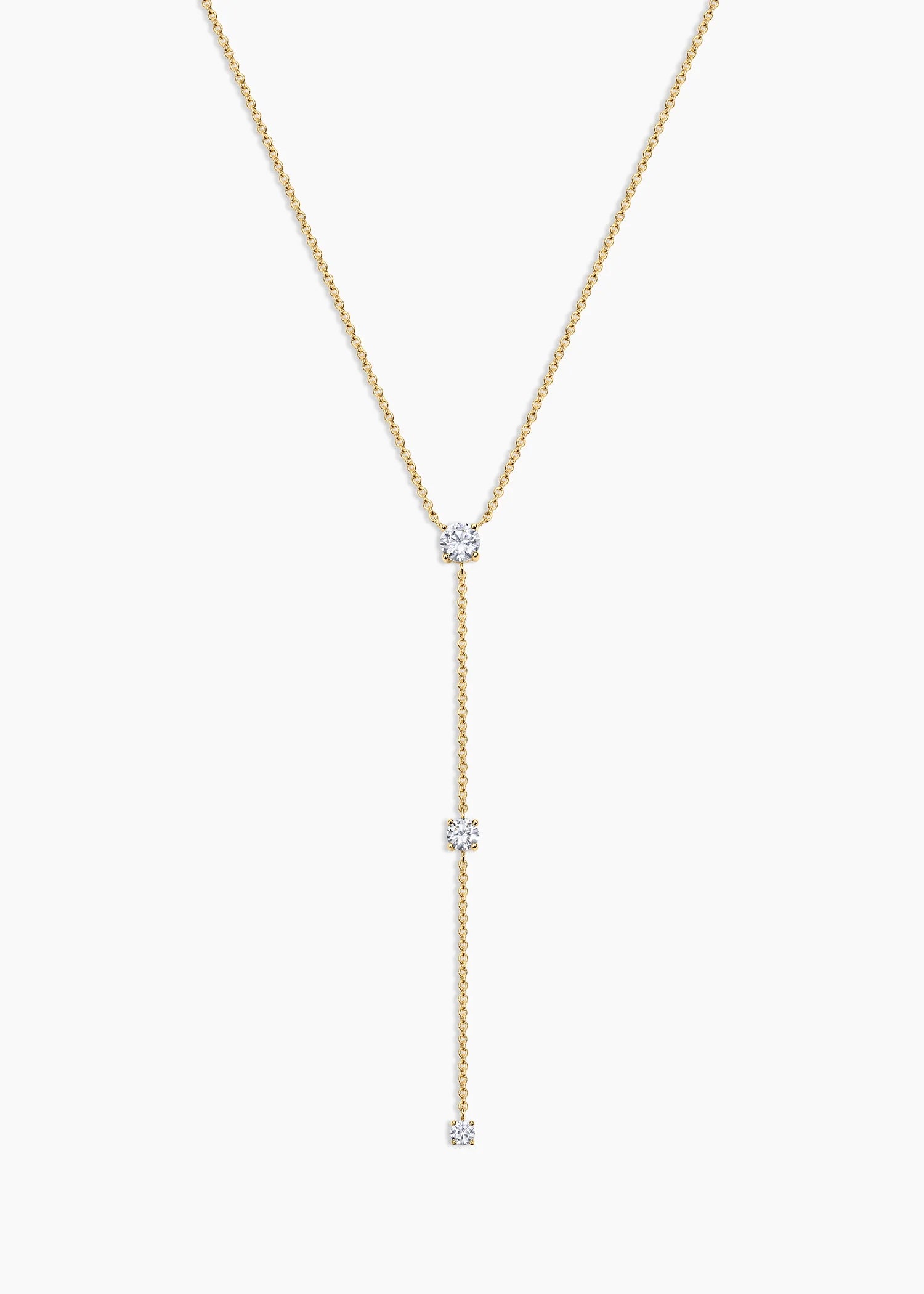 The Jade Lariat Necklace is sleek and flirty. Three stones drop down from a gold chain in a Y-shape that highlights your collarbones and elongates your look. It's the perfect add-on for tees, button-downs, or anything that needs a little extra sparkle.