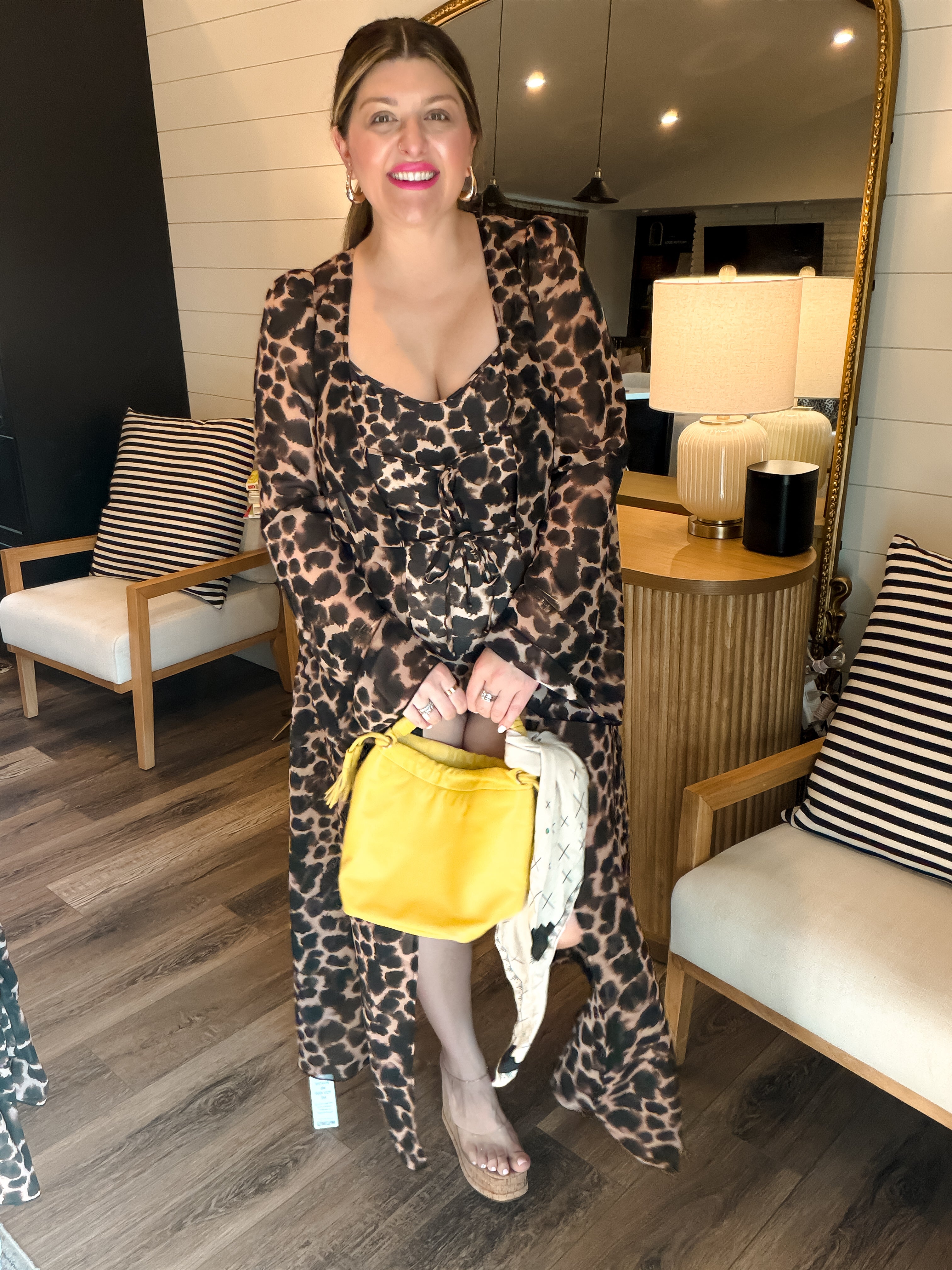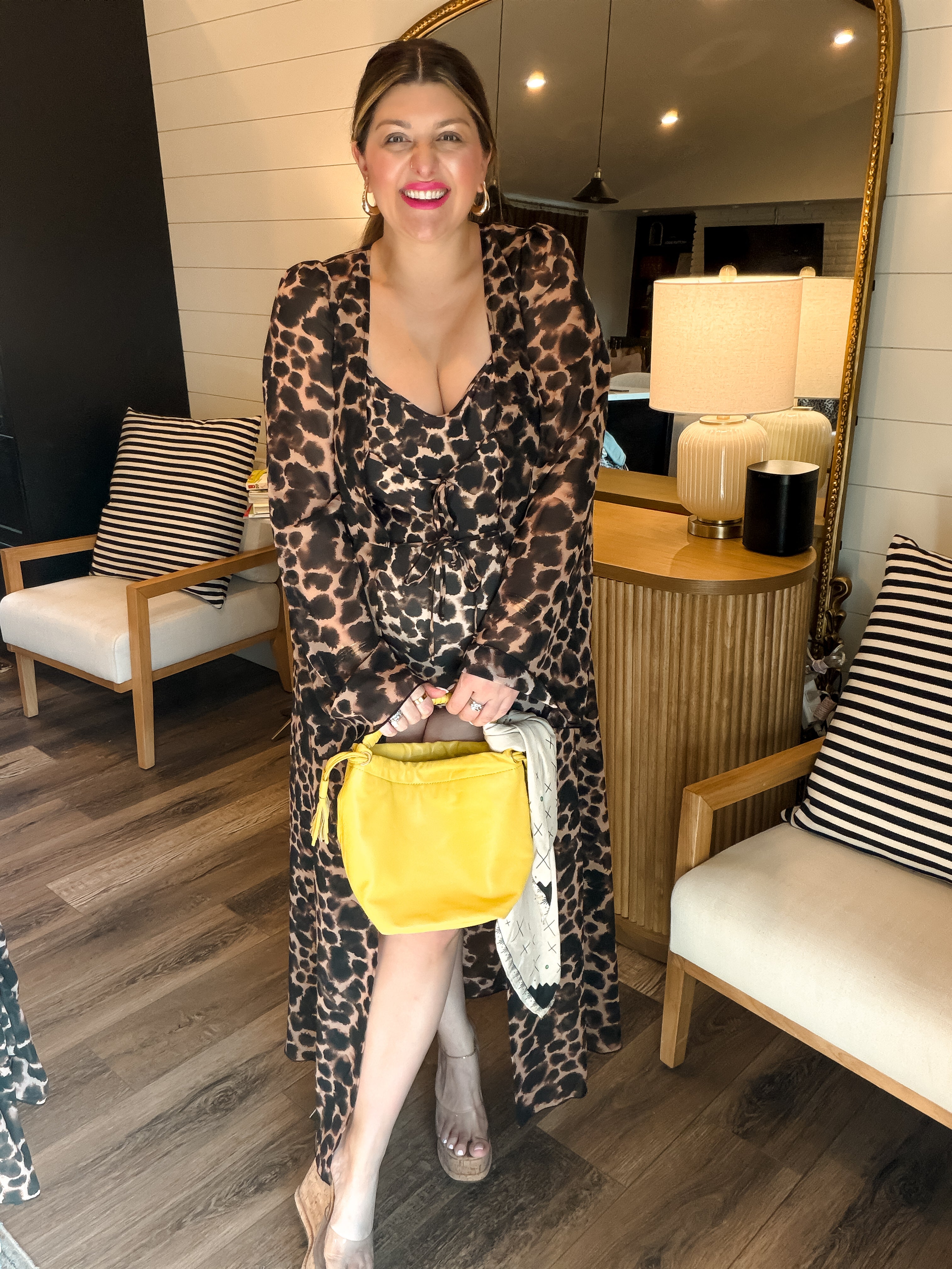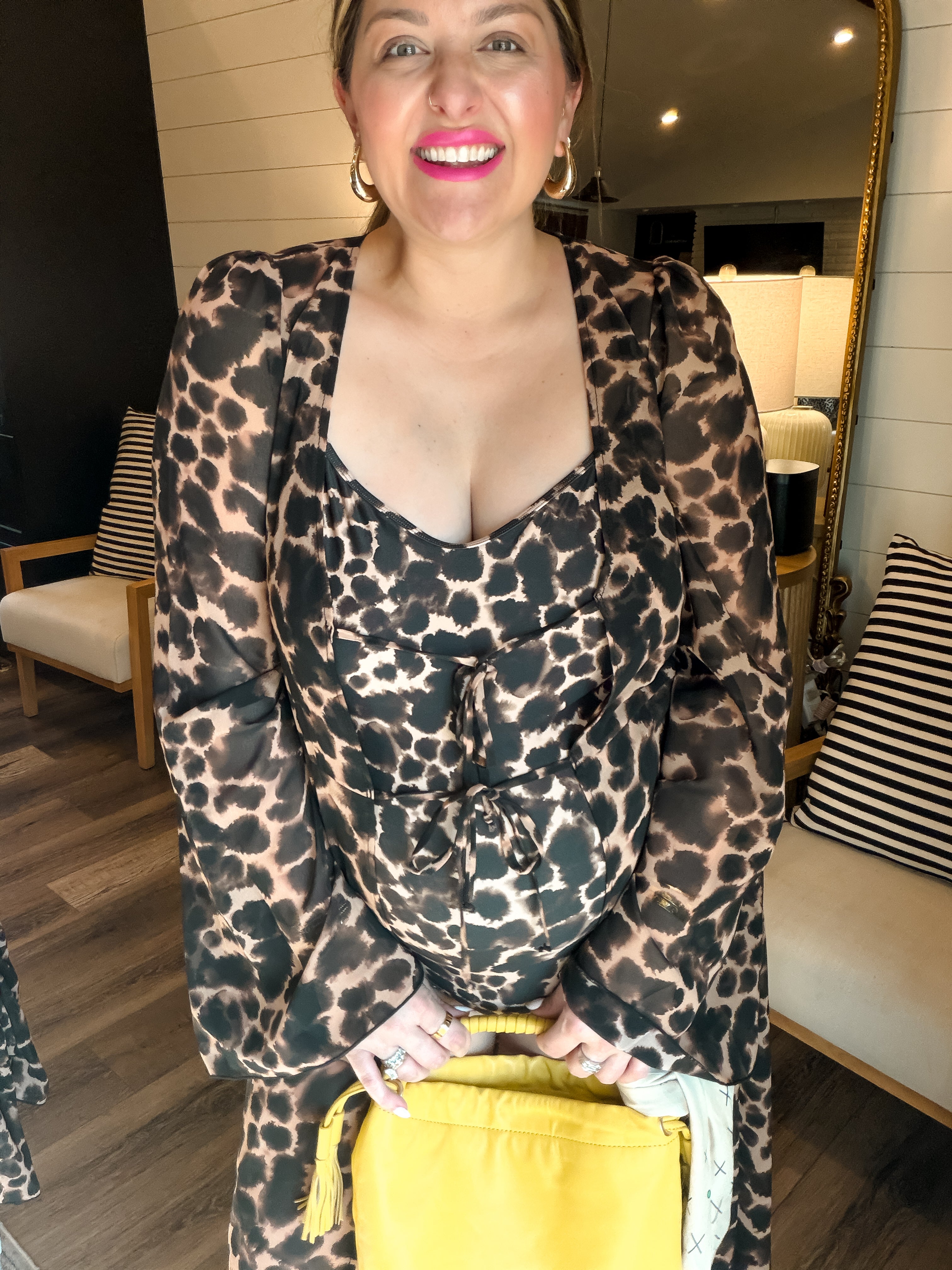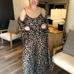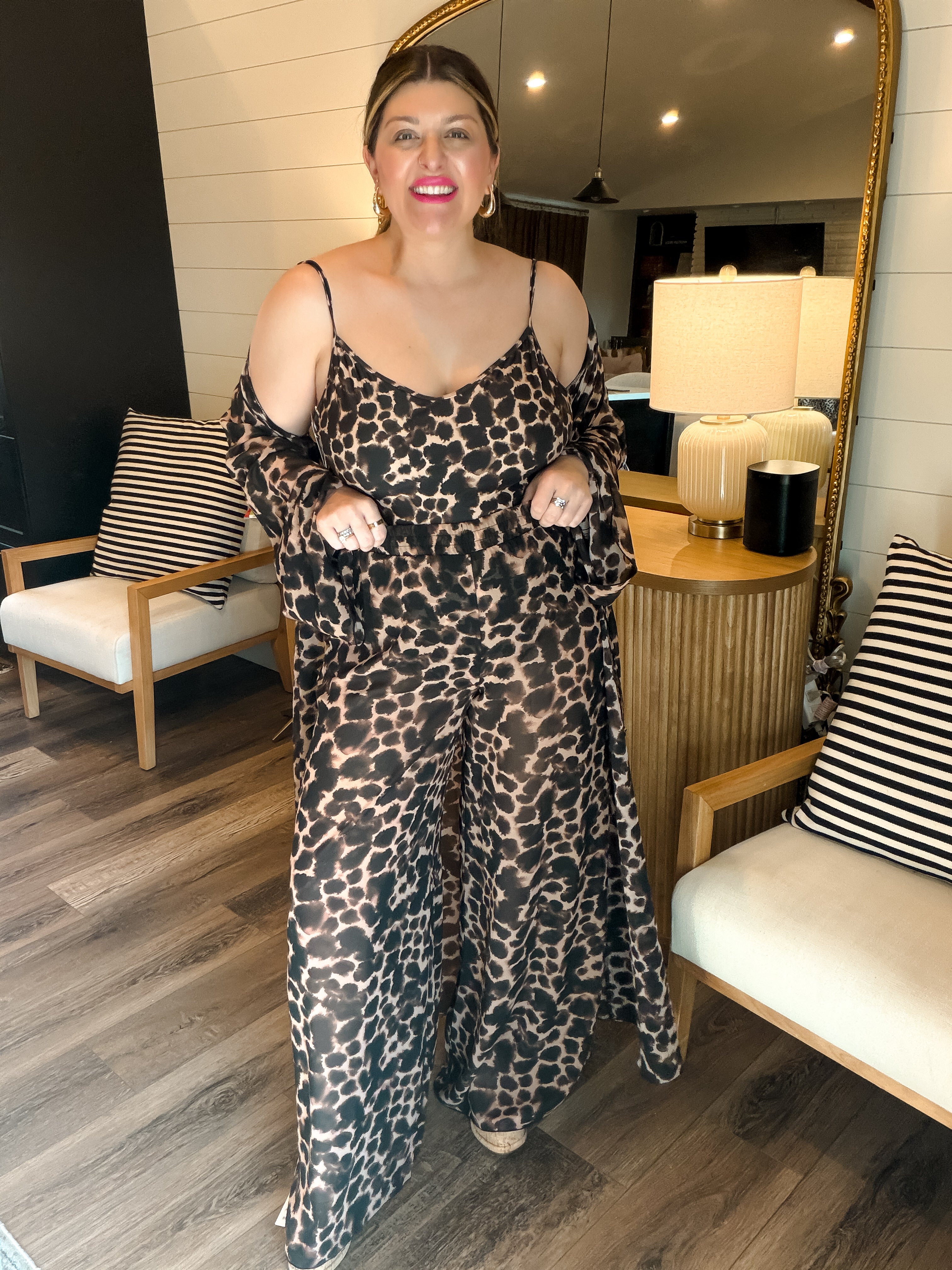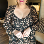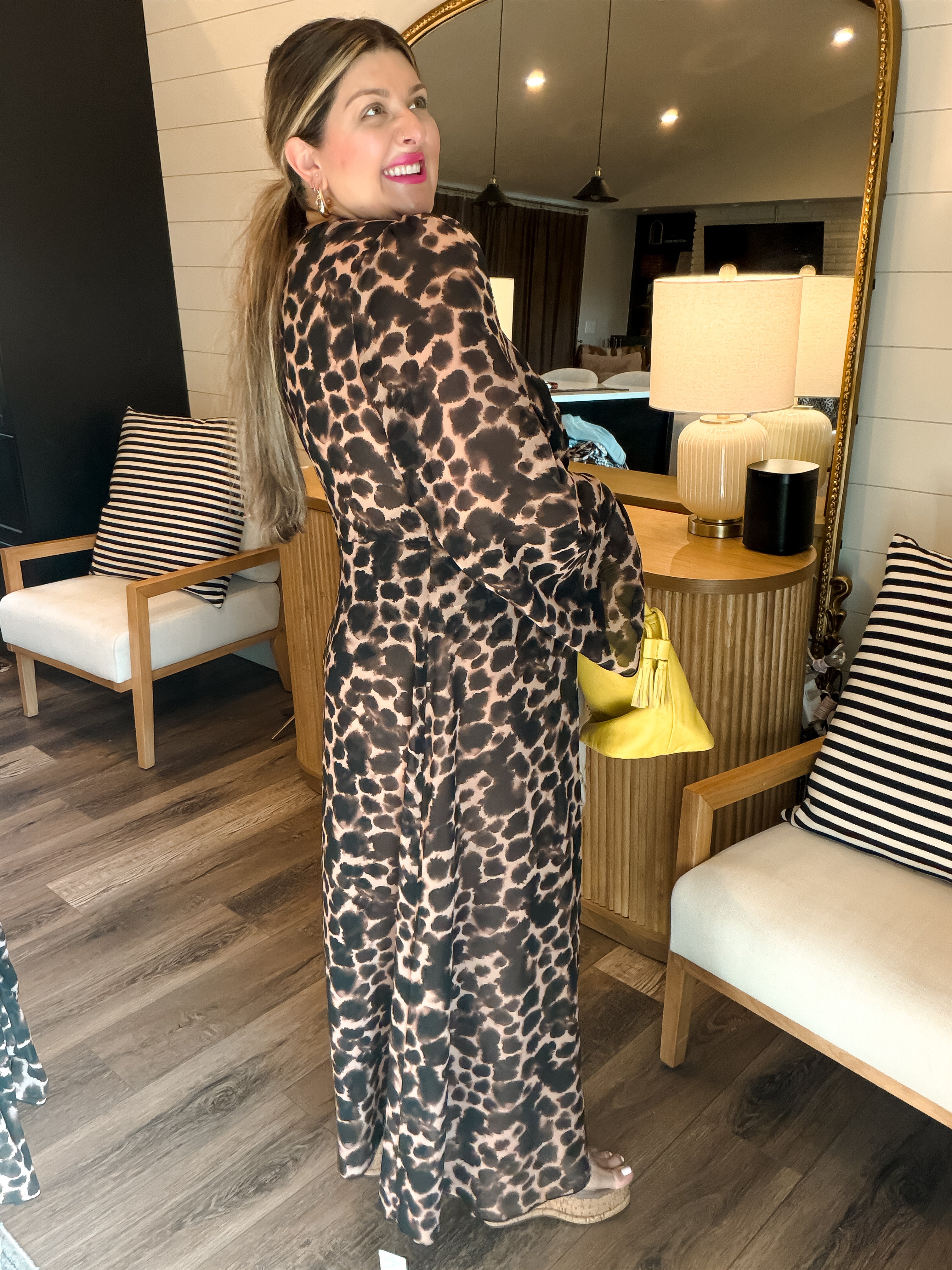 The Jet Setter Robe is here to get the vacation vibes started! This lightweight robe is decorated in a tortoise shell print with a flirty open front, and adjustable ties that cinch at the bust. Long, kimono sleeves adds a breezy and stylish touch to this maxi silhouette.