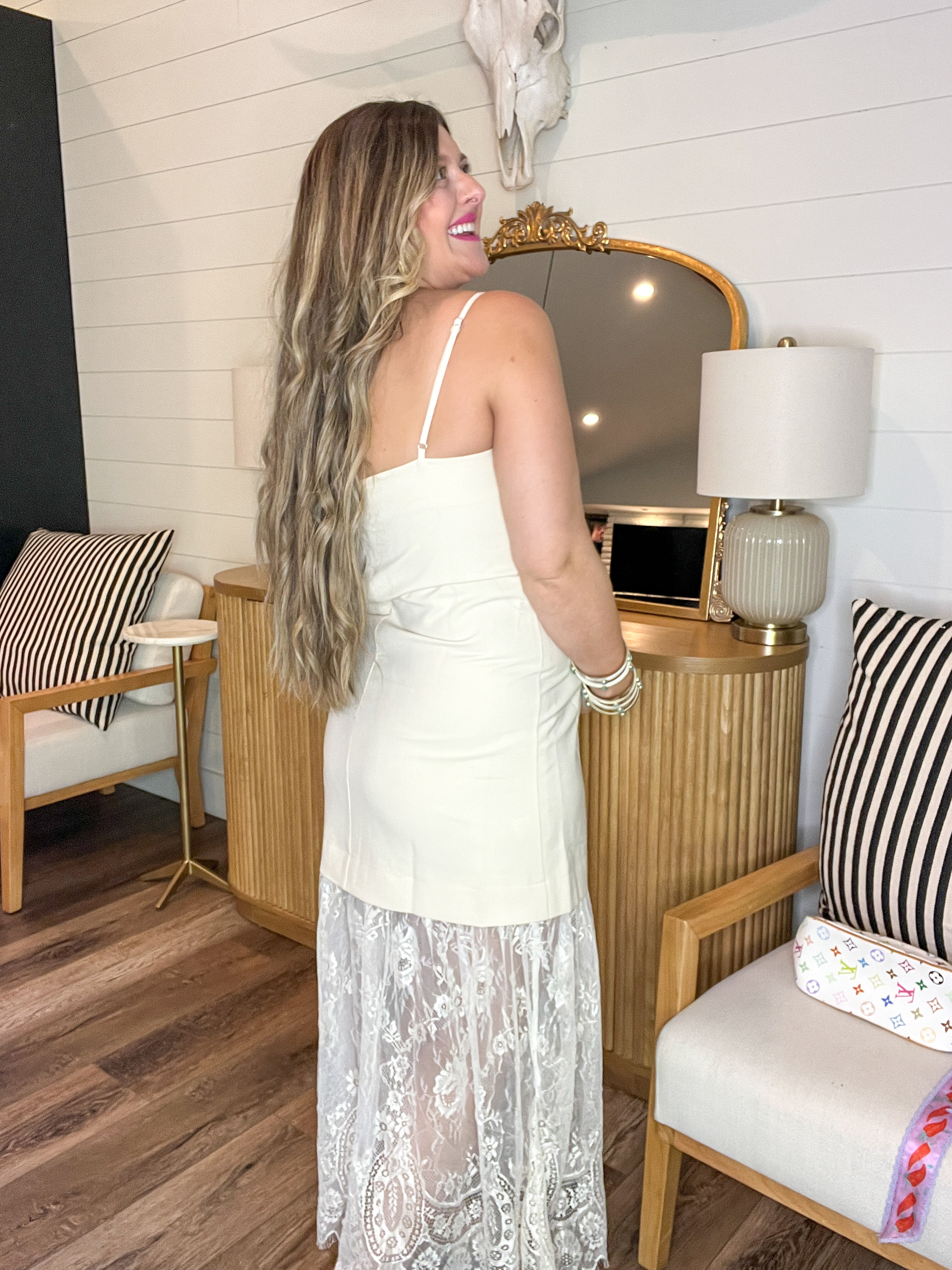 She's sweet, she's sultry, and she knows how to turn heads without raising her voice. The Laced in Love Midi in Ivory is your new go-to for garden parties, bridal showers, engagement photos, or any moment that calls for something soft but stunning. With its romantic sheer lace skirt + timeless silhouette, it's elegance with a whisper.