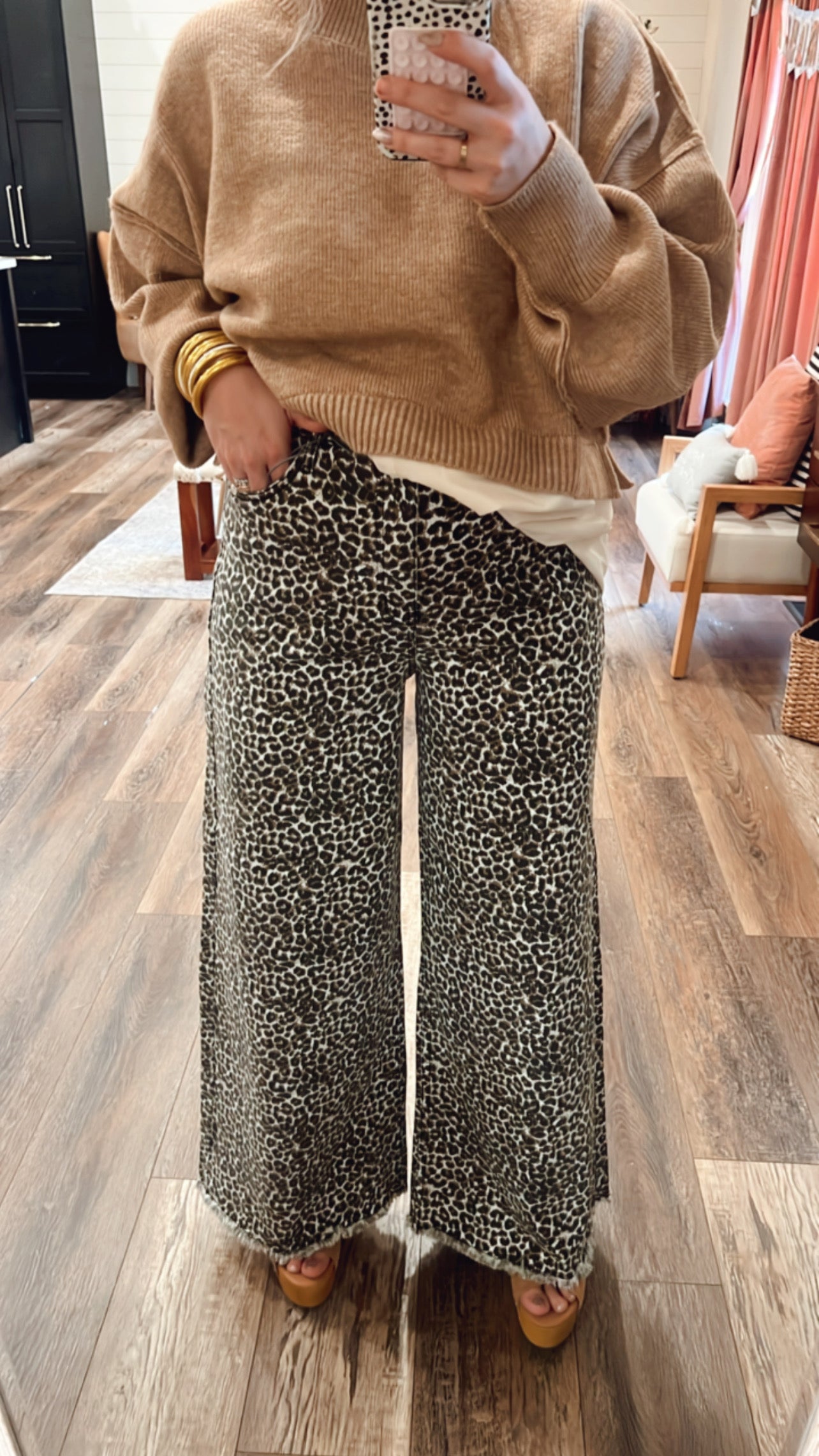 Extremely stretchy wide leg denim leopard jeans SOOOOO GOOD!