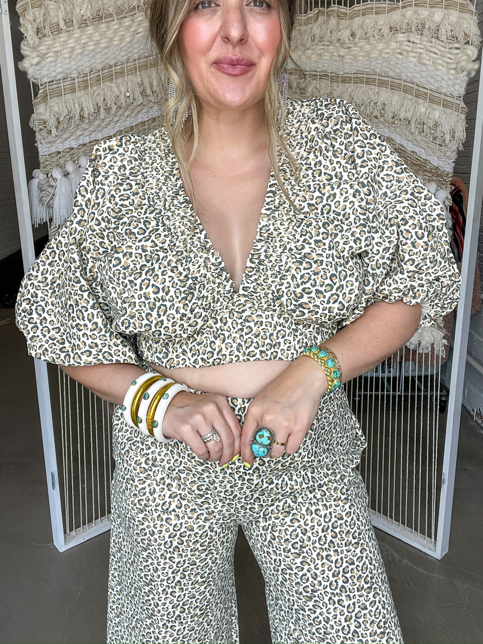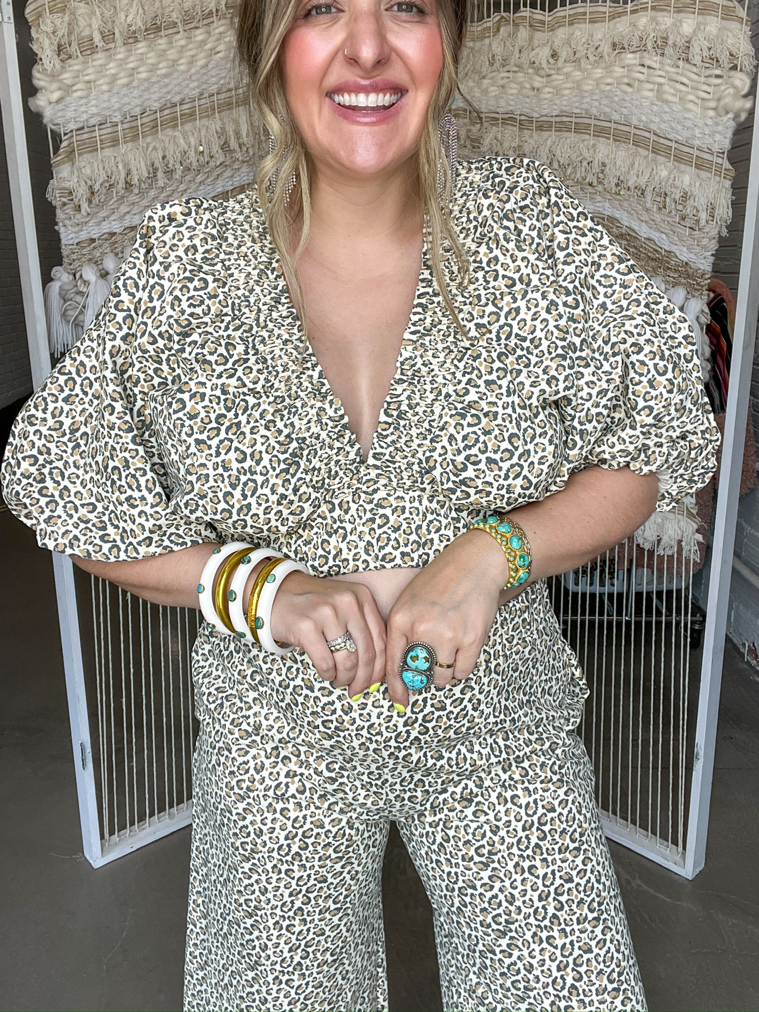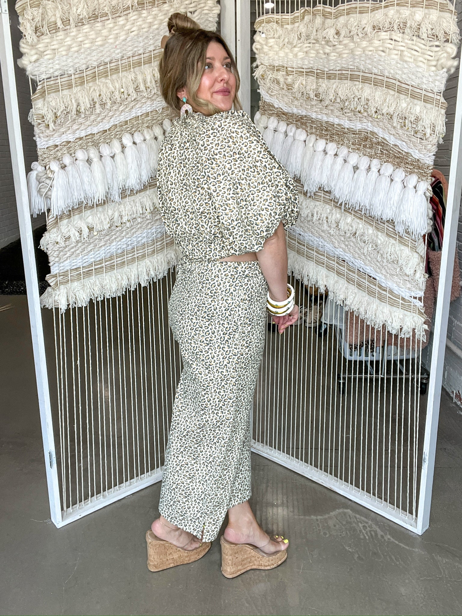 Walk on the wild side- comfortably. These statement-making wide leg pants blend elevated ease with just the right amount of roar. Lightweight + breezy with a neutral-toned leopard print, they're made to be dressed up or down all season long.