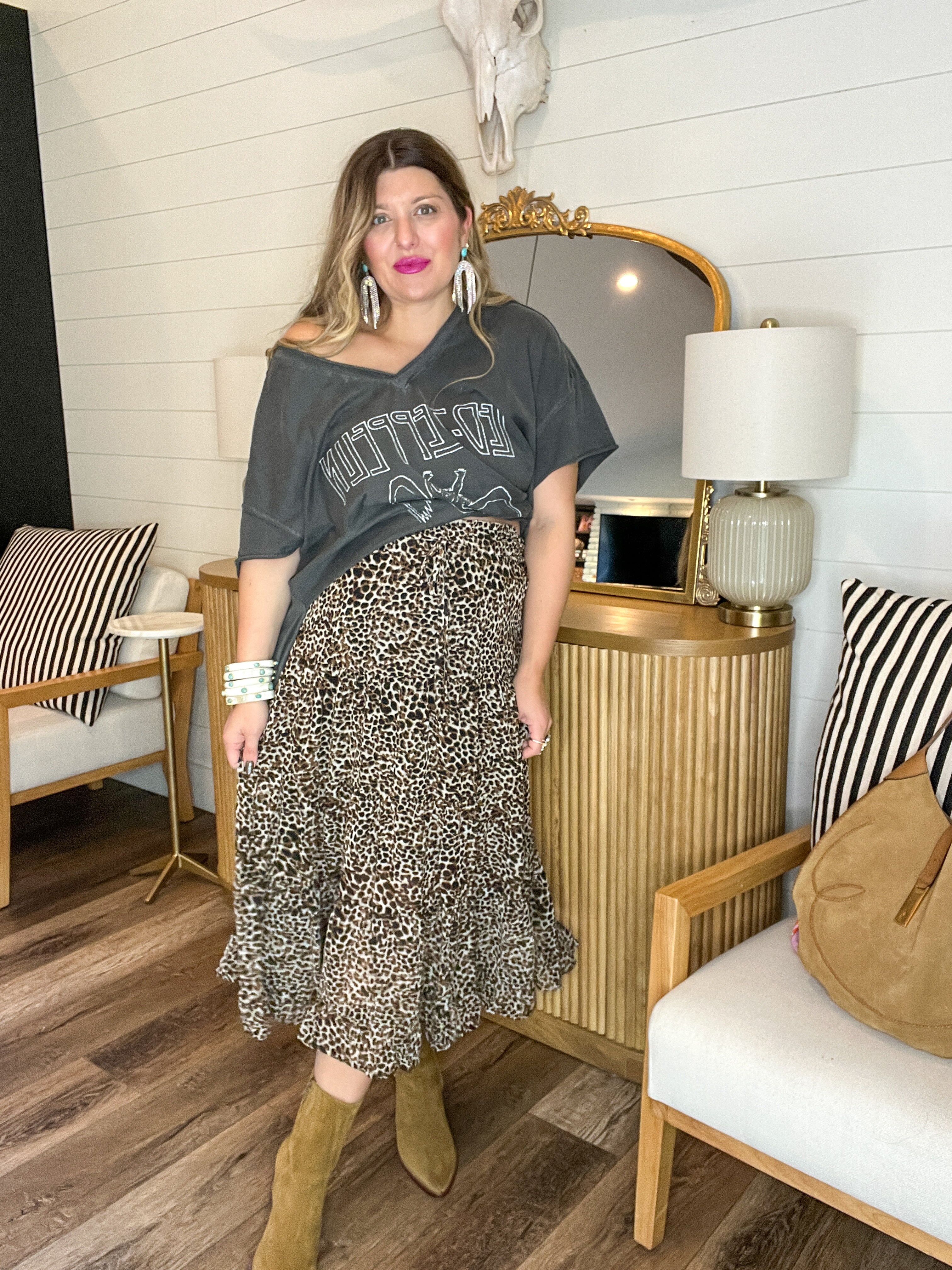 Out of stockSpotted In Style Leopard Tiered Maxi Skirt