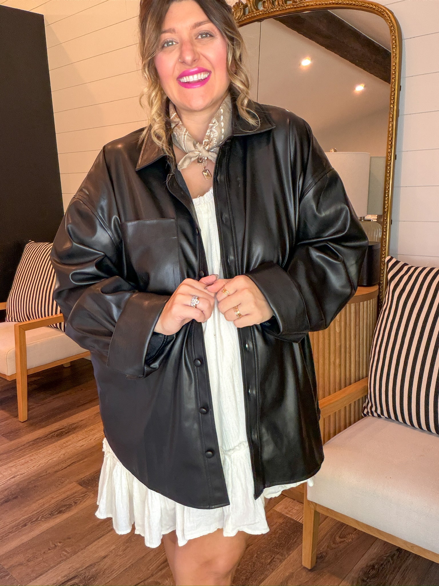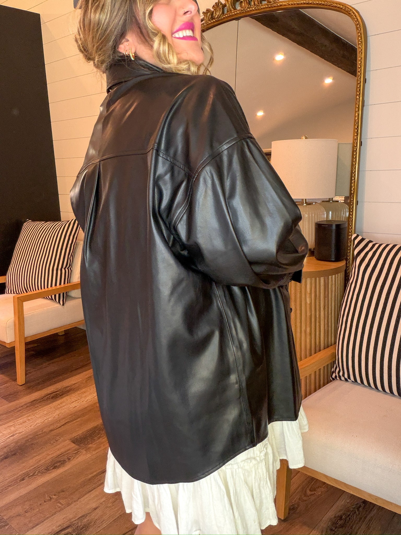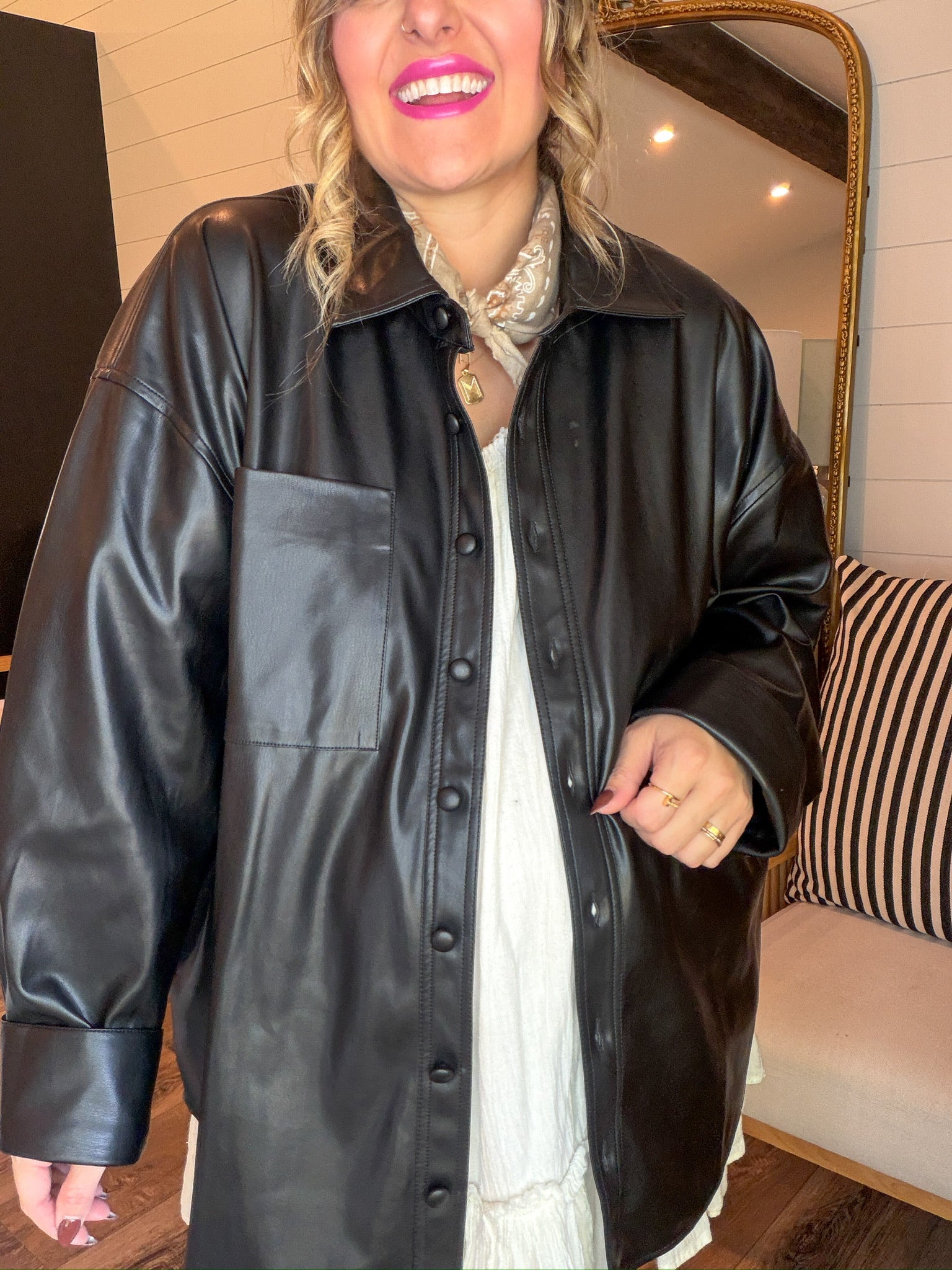 Out of stockLincoln Shirt Jacket - Black Faux Leather