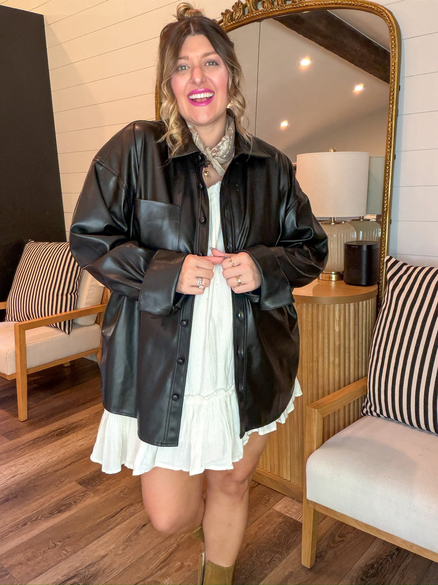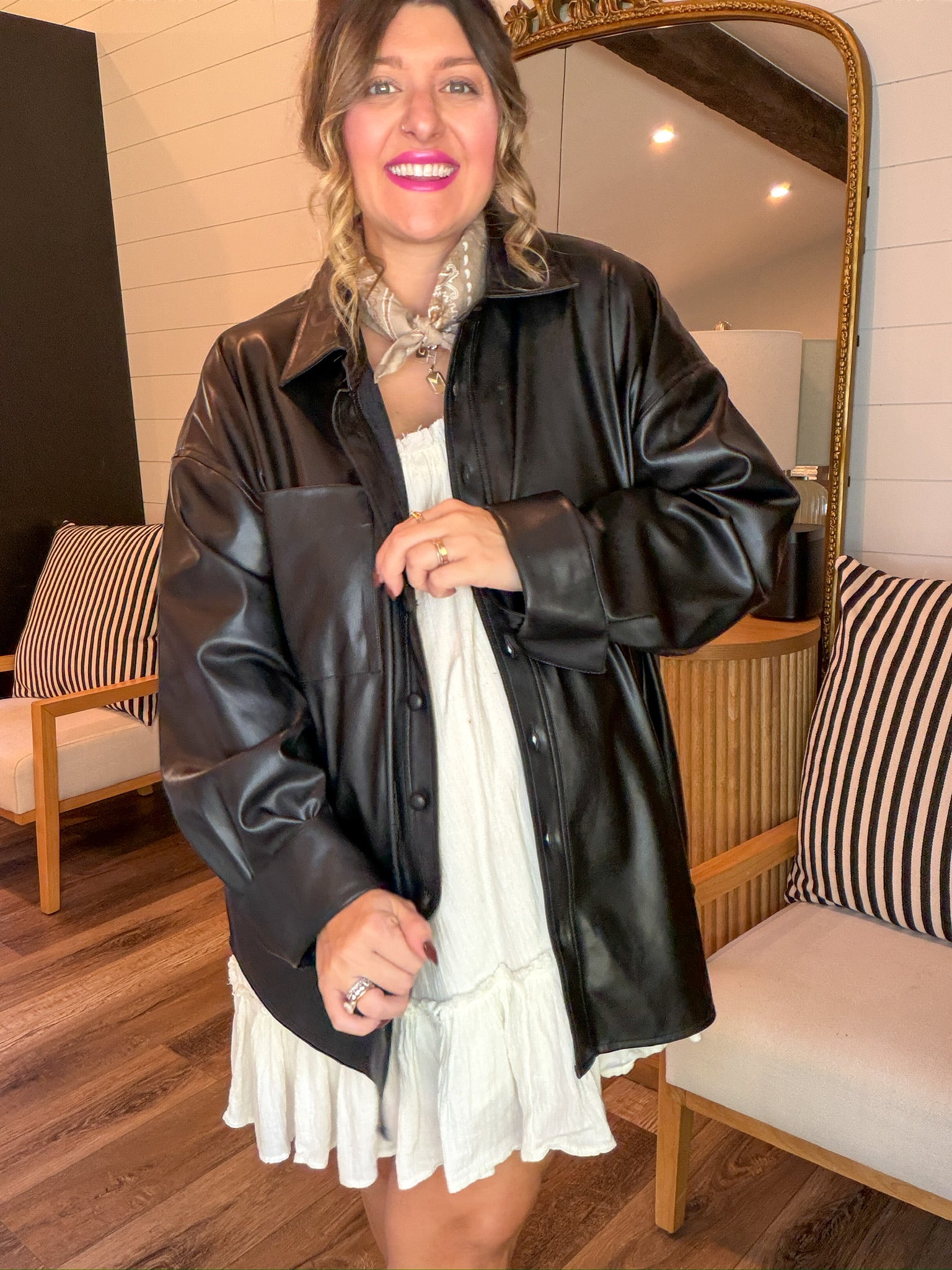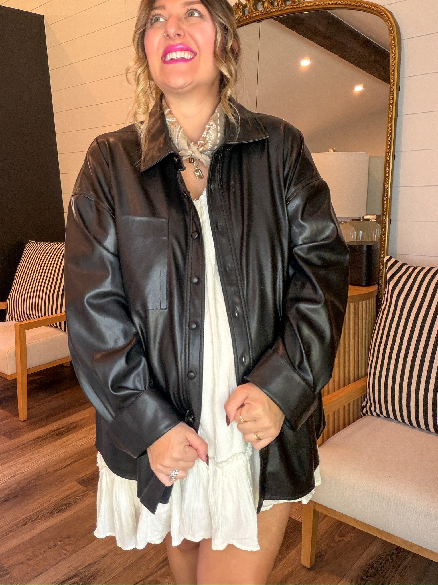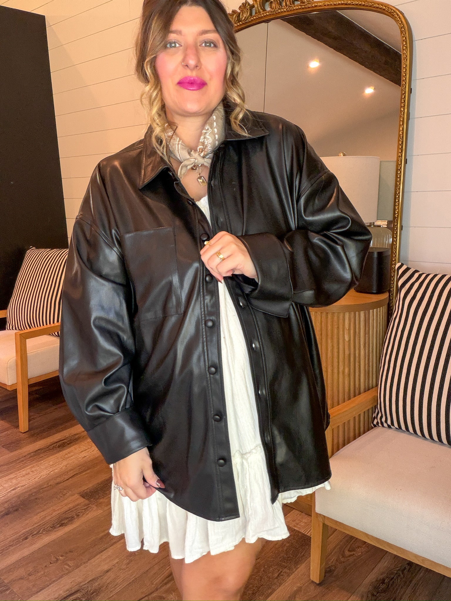 Out of stockLincoln Shirt Jacket - Black Faux Leather