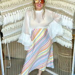 The sweetest swirl of sherbet stripes and summer whimsy, the Lollipop Lane Midi Skirt brings pure joy with every step. Designed in a soft, breathable crinkle fabric that sways with you, this rainbow-hued dream is your ticket to dopamine dressing done right.