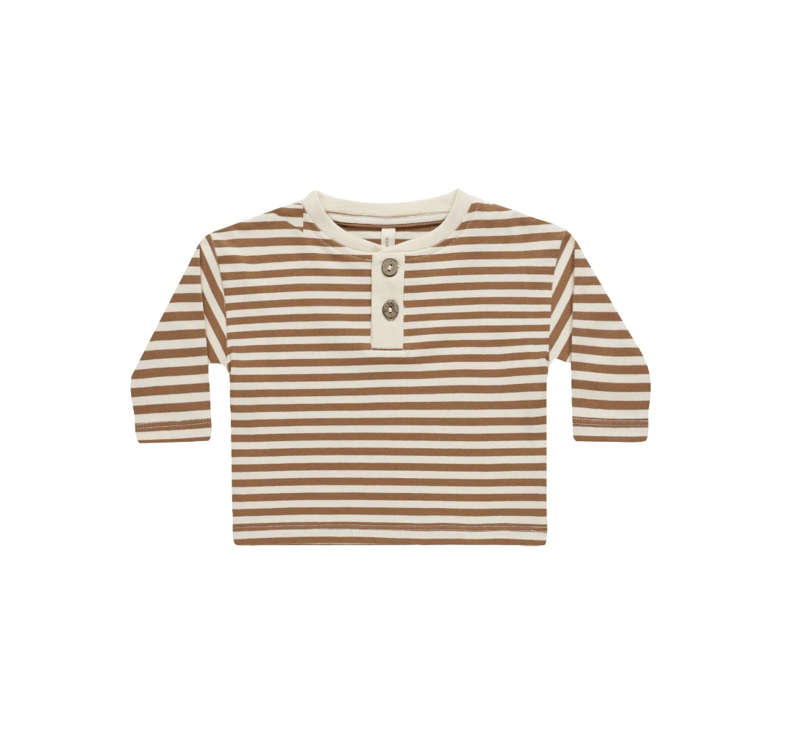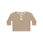 Long Sleeve Henley Tee - Cinnamon Stripe
