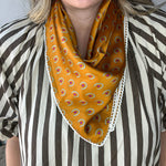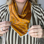 A wink of Western, a pop of sunshine, and a whole lot of charm. The Lucky You Bandana brings playful energy to your outfit with a hand-drawn horseshoe and heart print on golden silk satin—finished with the sweetest cream crochet trim. It’s the kind of scarf that makes you feel like your day’s about to turn lucky.