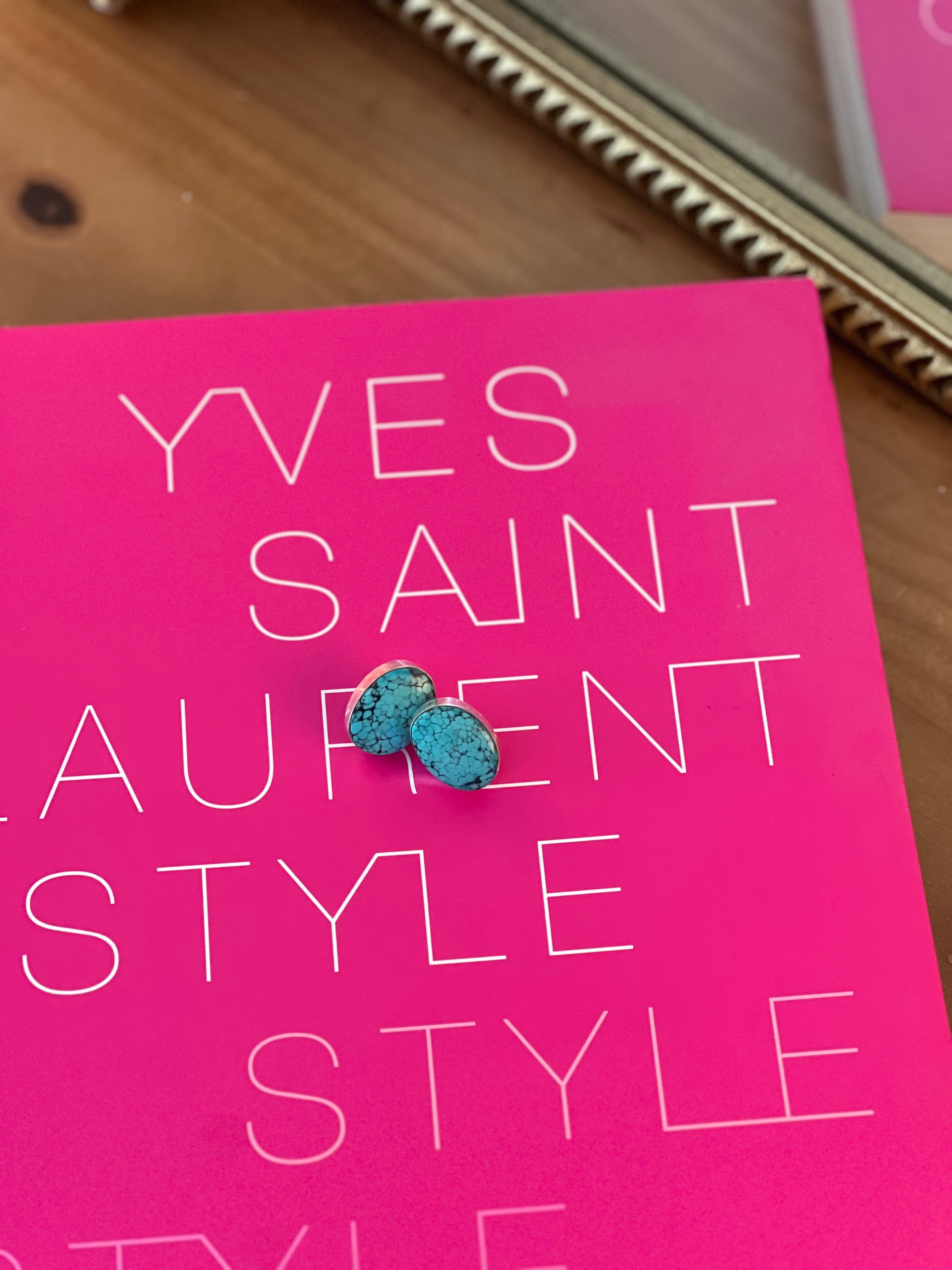 We have two variations of these beautiful turquoise studs. They are super lightweight, but still make a statement! With a stud post back they fit comfortably and snug up to the ear without drooping. We need every single pair of these!
